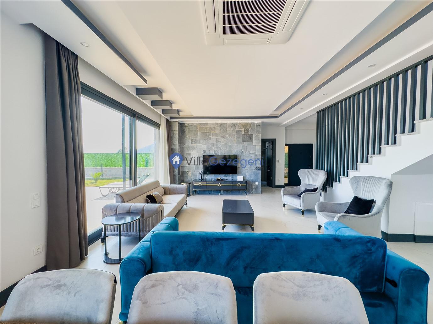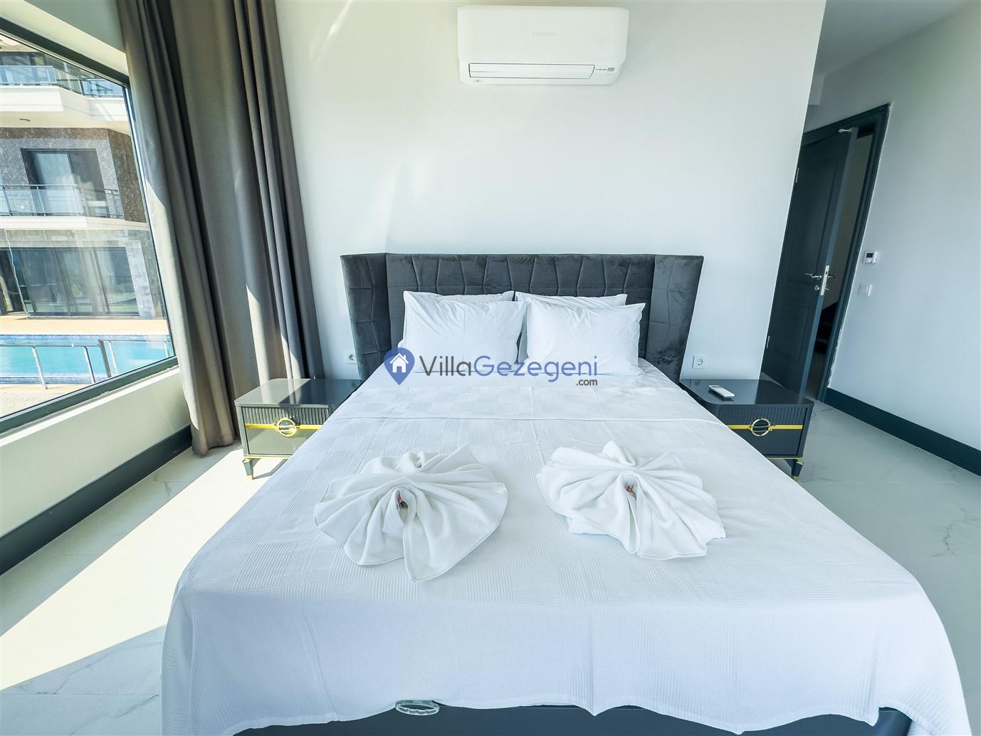Villamızın genel konsept ve özelliklerinden tekrar bahsedecek olursak; villamızın 1 adet müstakil özel havuzu bulunmaktadır. Ortama bir bahçeye sahip olan villamız rahatlığı ön planda tutan 4 adet yatak odası, 5 yatak, 4 banyo, hareket alanı geniş bir mutfak ve 8 kişinin geniş aralıklarla rahatlıkla oturabileceği koltuklara sahip salonu bulunmaktadır.