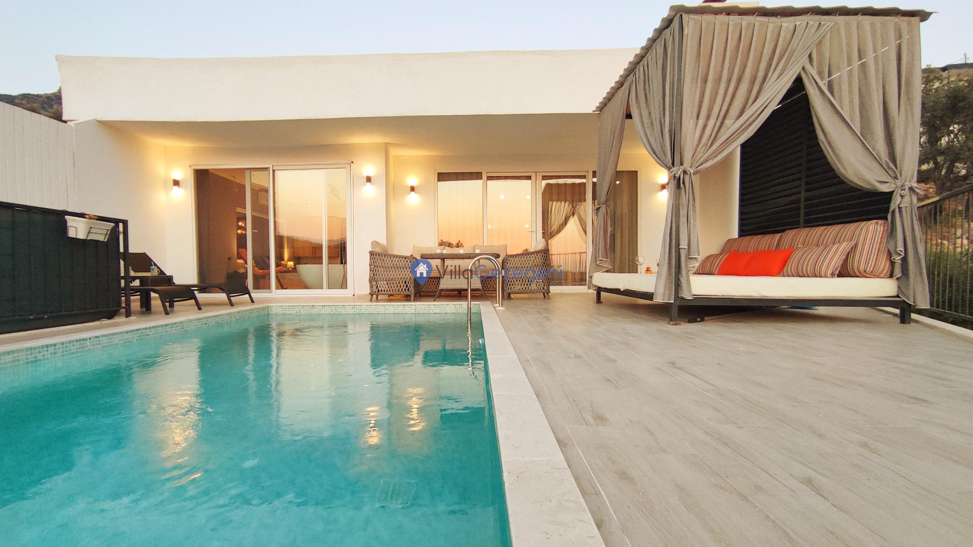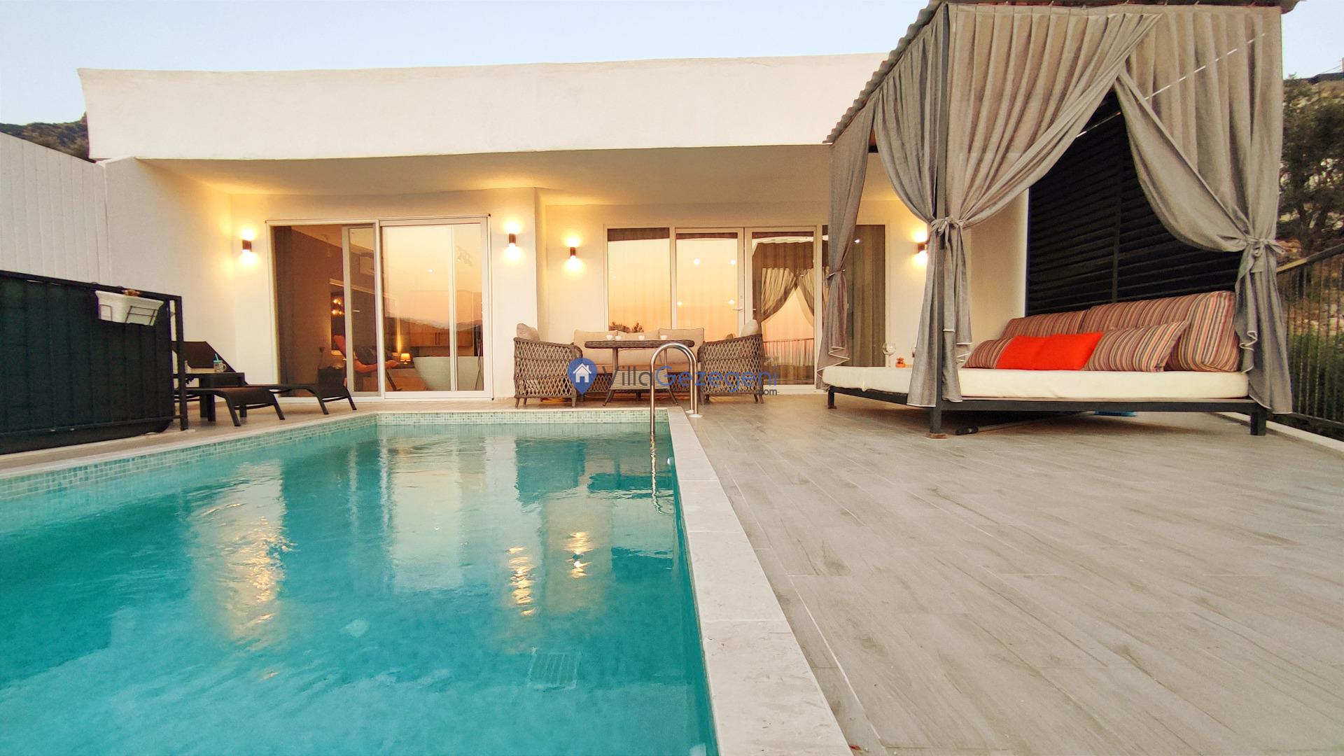 Kalkan Akbel Bölgesinde 2 Yatak Odalı 4 Kişilik Balayı Villası