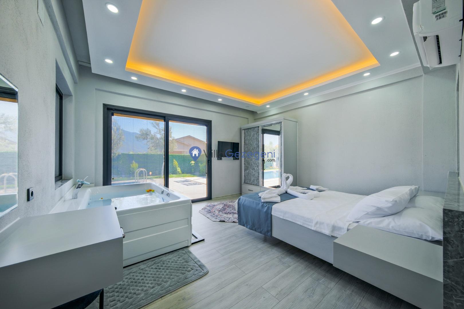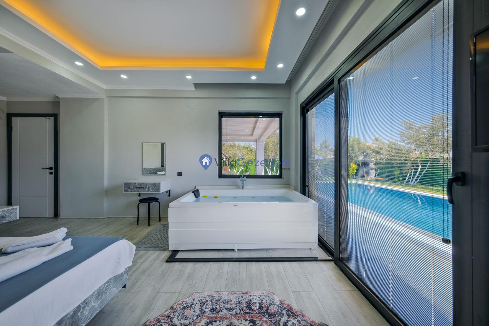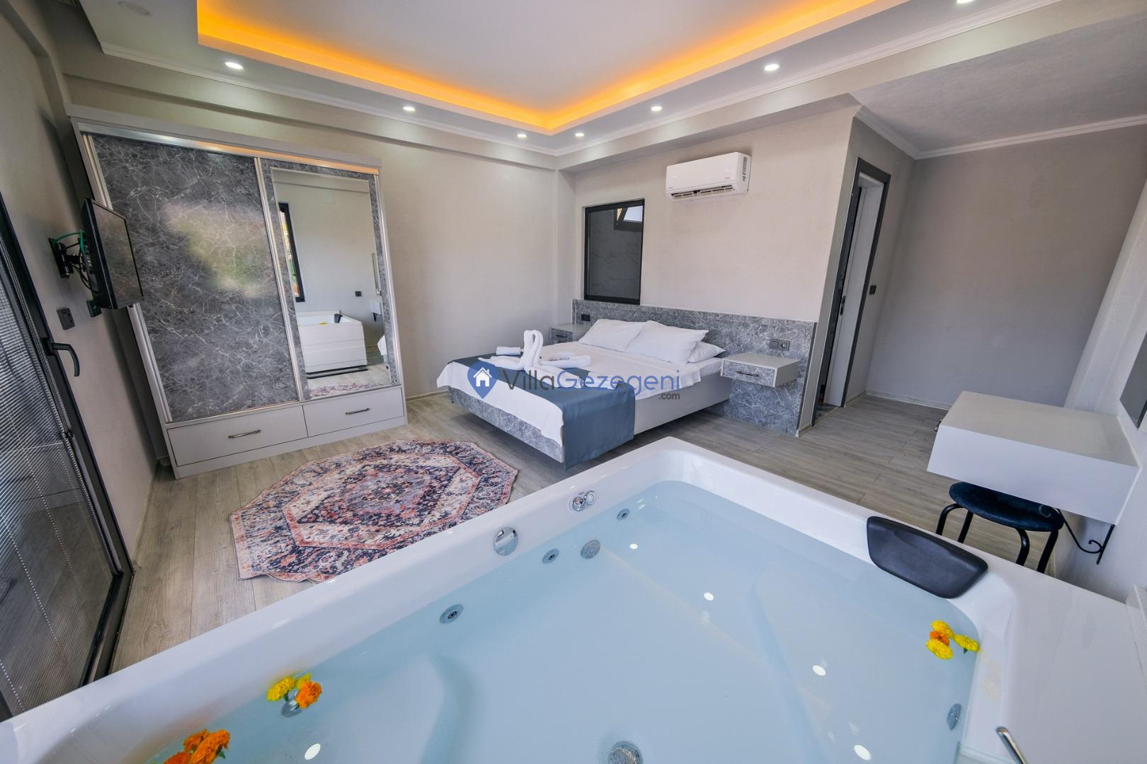 Fethiye/Karaçulha bölgesinde yer alan 2 yatak odalı 4 kişi kapasiteli doğa içerisinde havuz korunaklı jakuzili kiralık tatil villası.