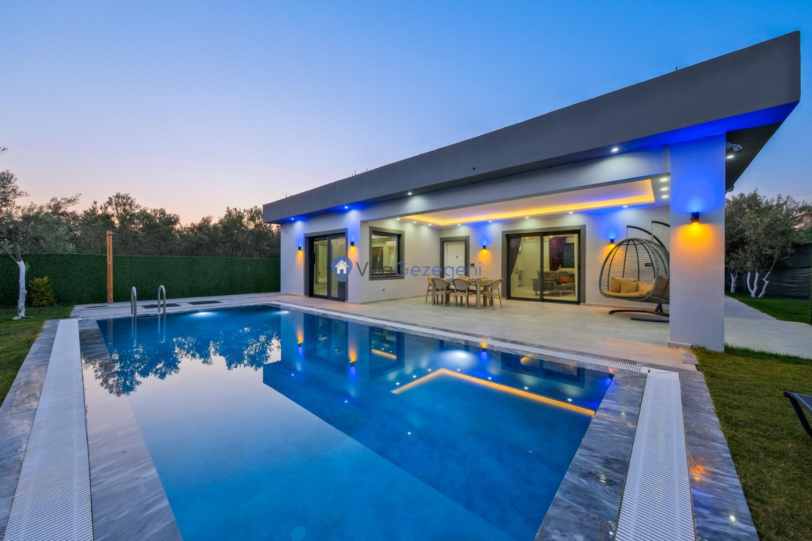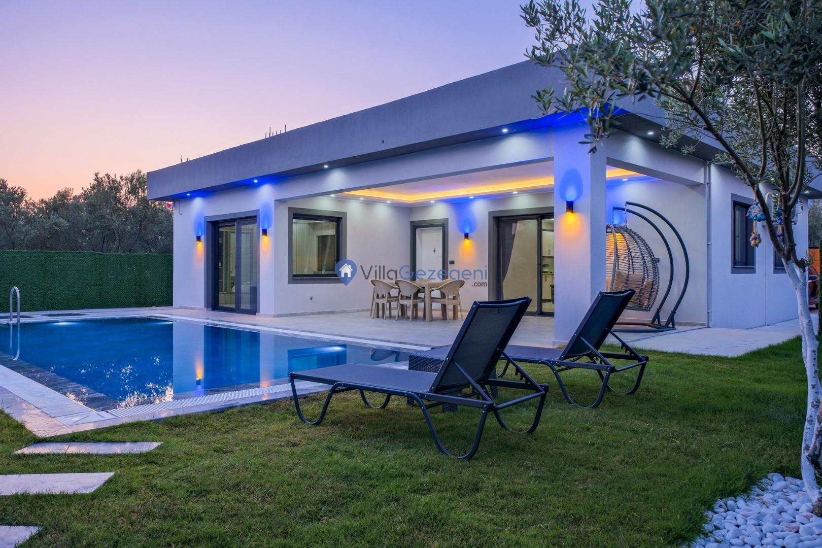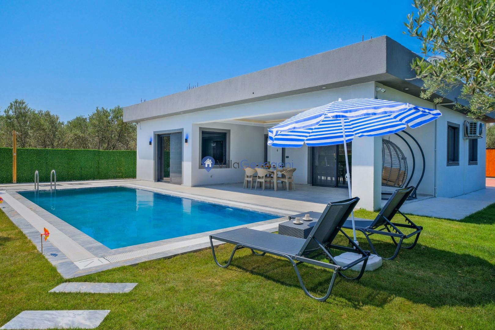 Villa Eymen Karaçulha; 3 yatak odalı, havuzlu, doğa manzaralı, kiralık geniş aile ve arkadaş grubu villası.