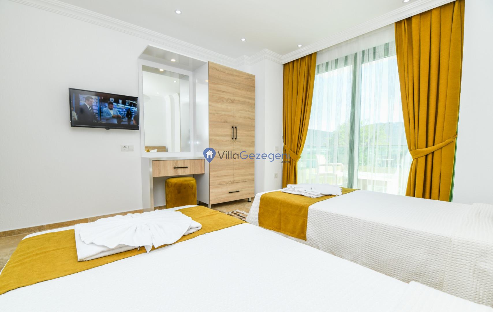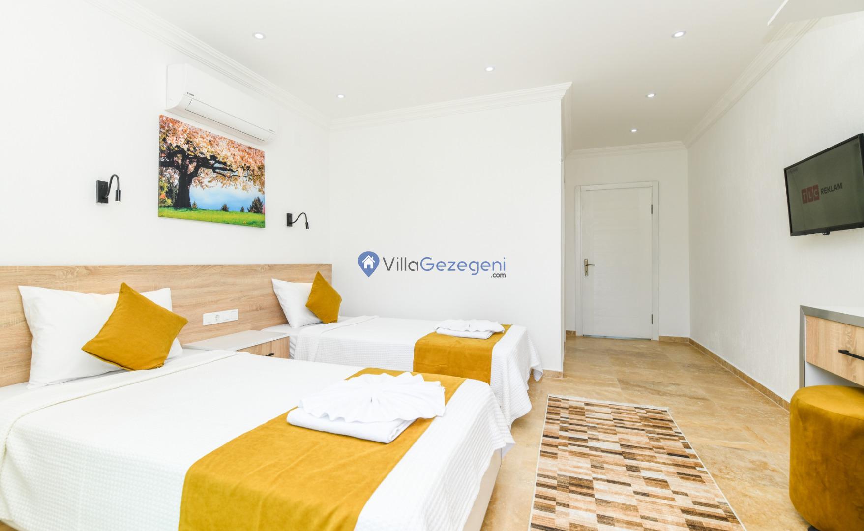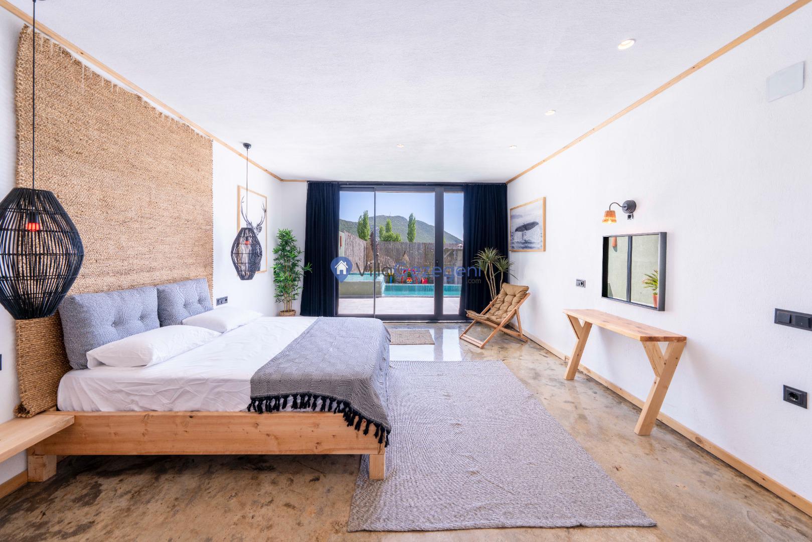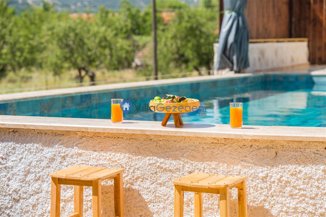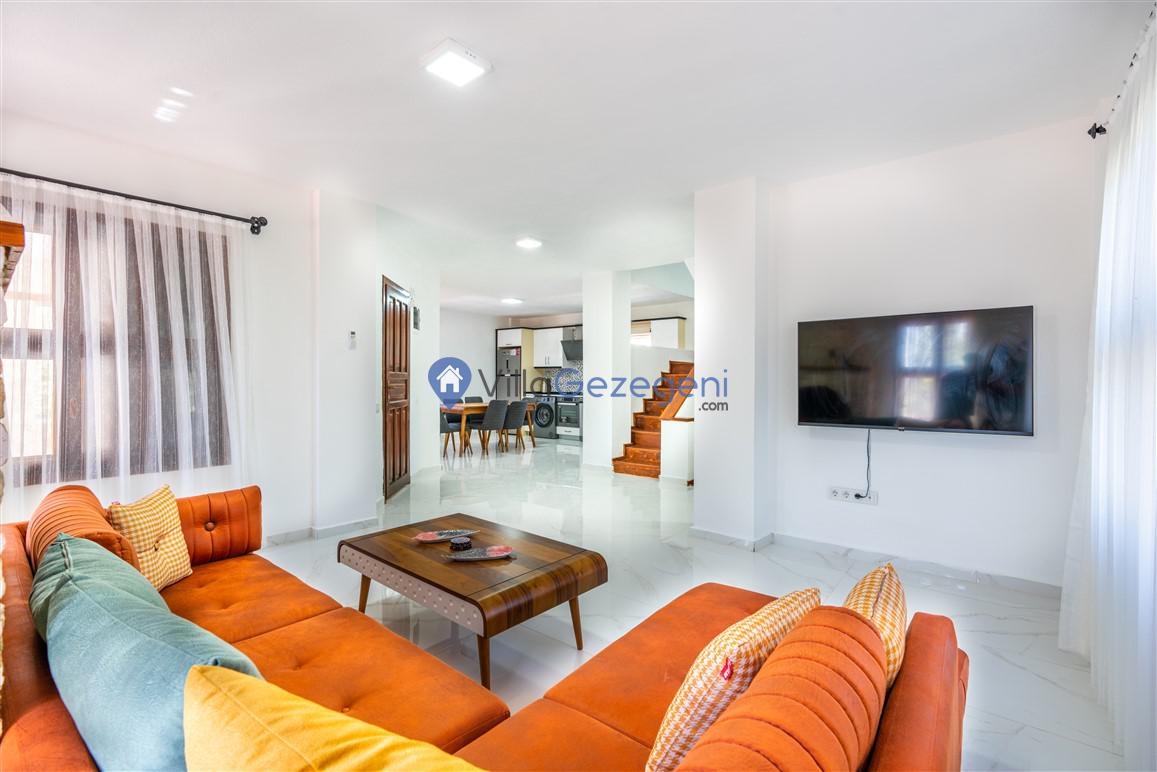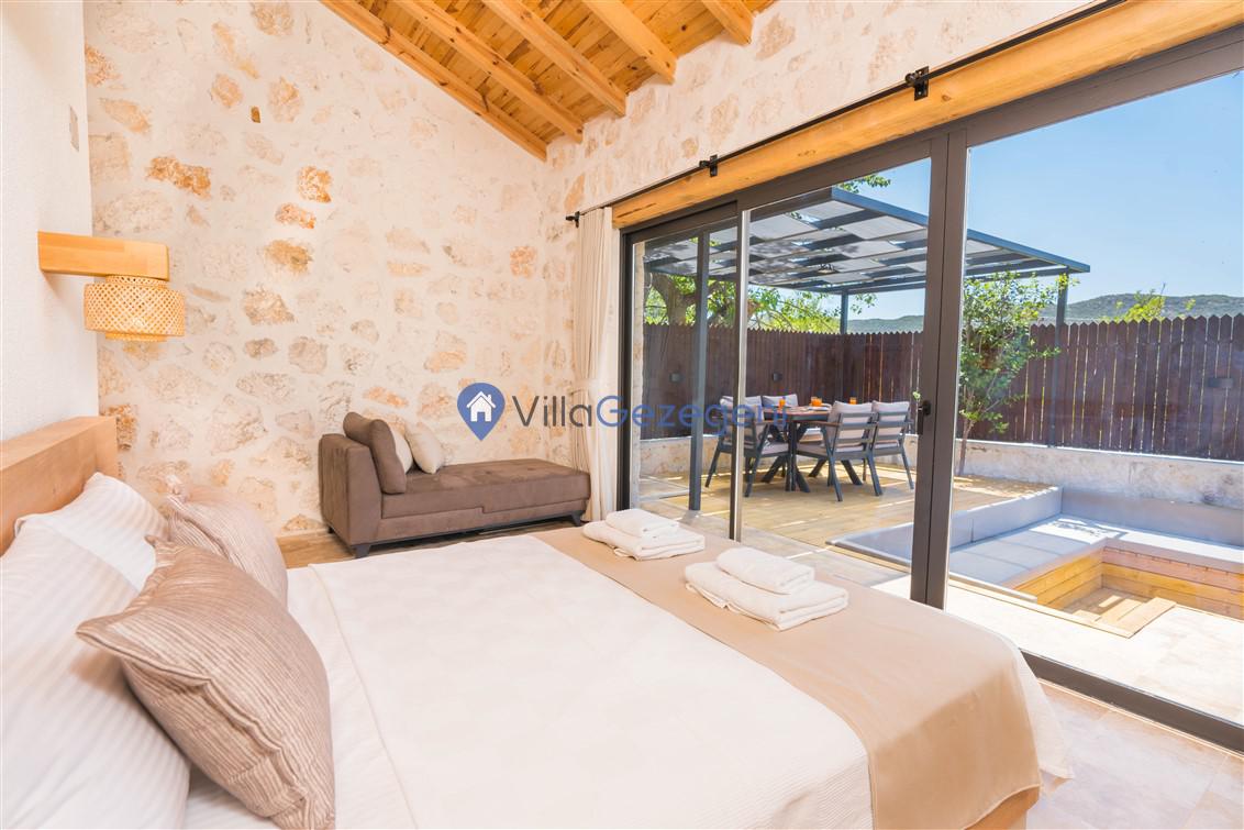 Kalkan Bezirgan bölgesinde yer alan 2 yatak odalı 4 kişi kapasiteli muahafazakar tatil villası.