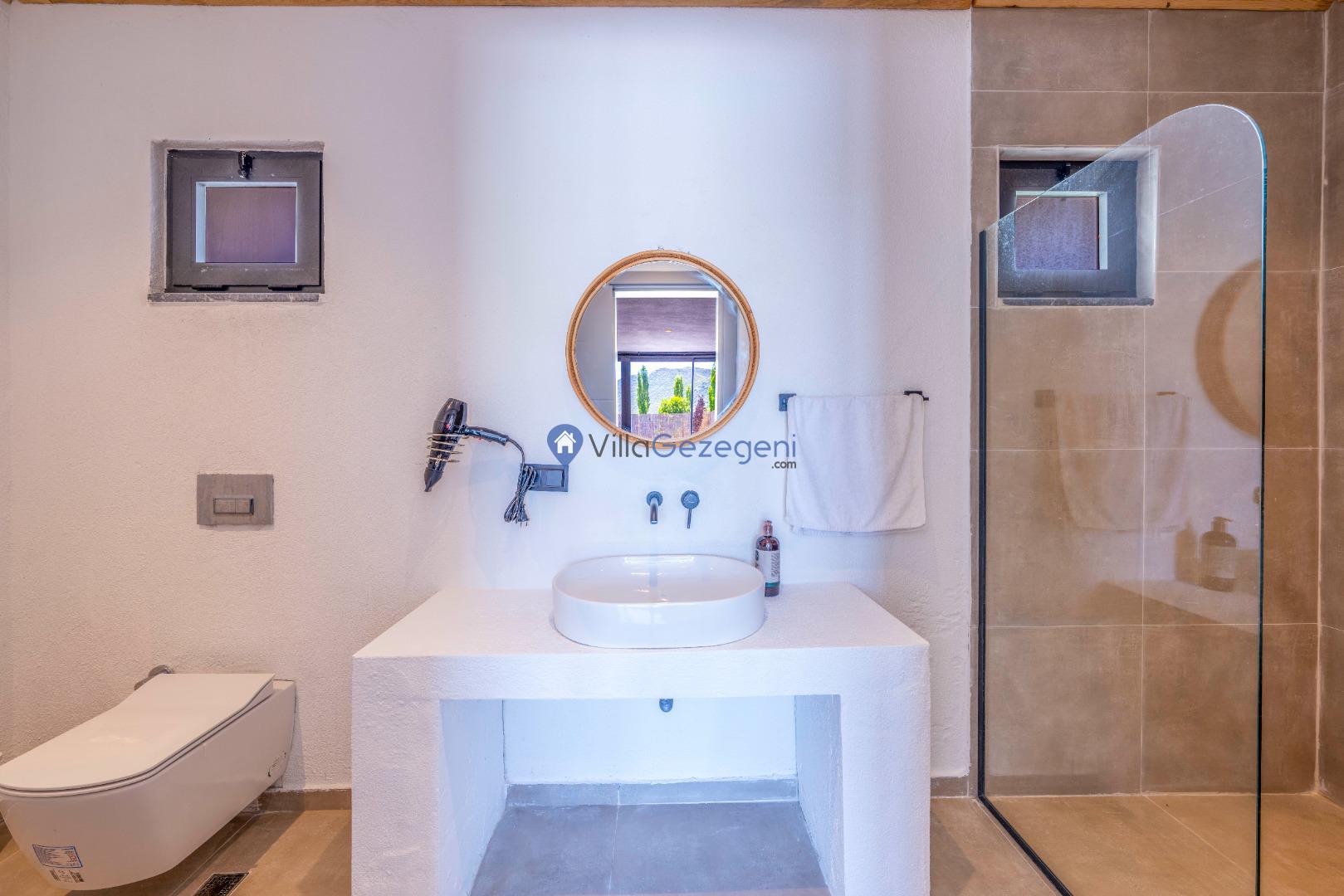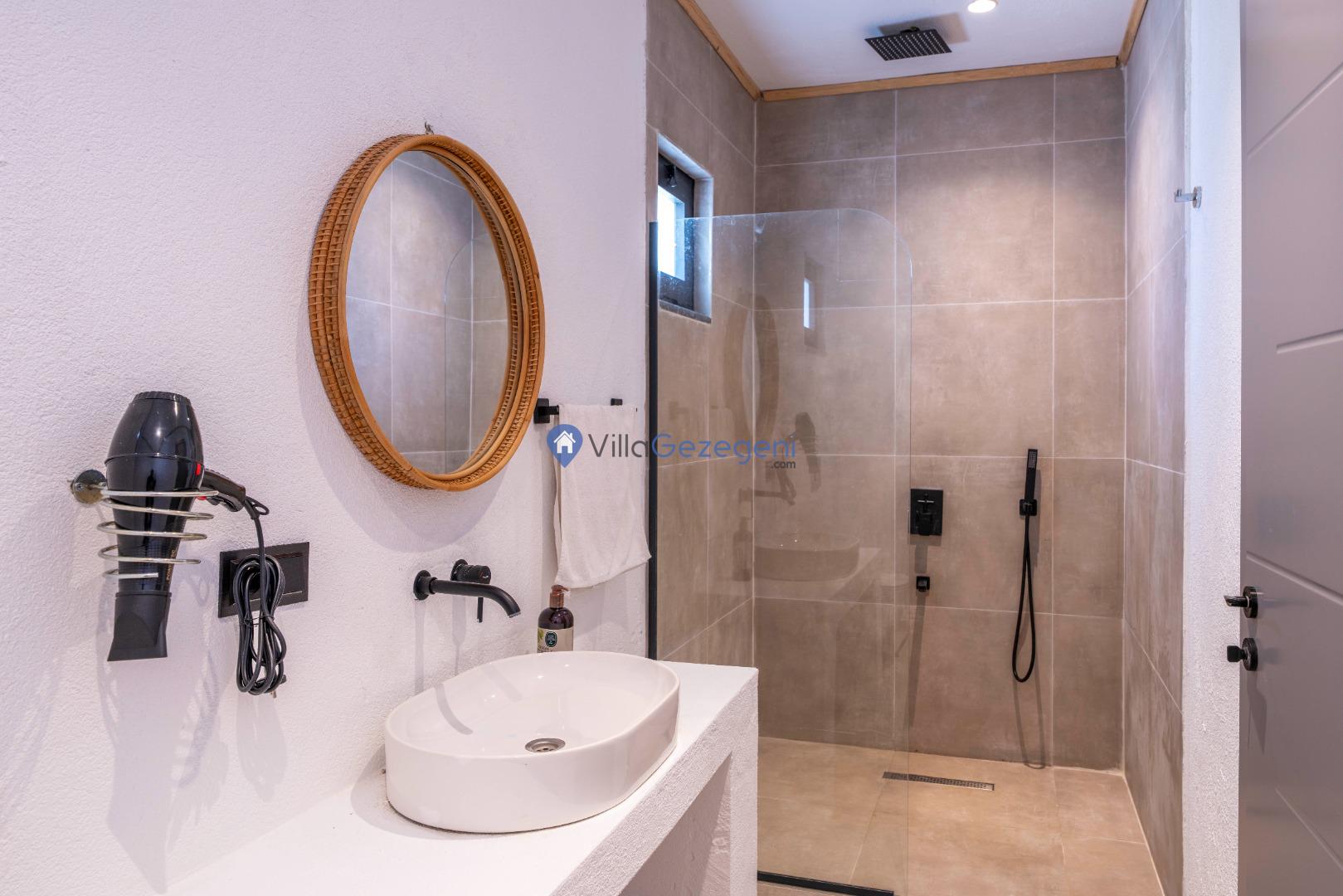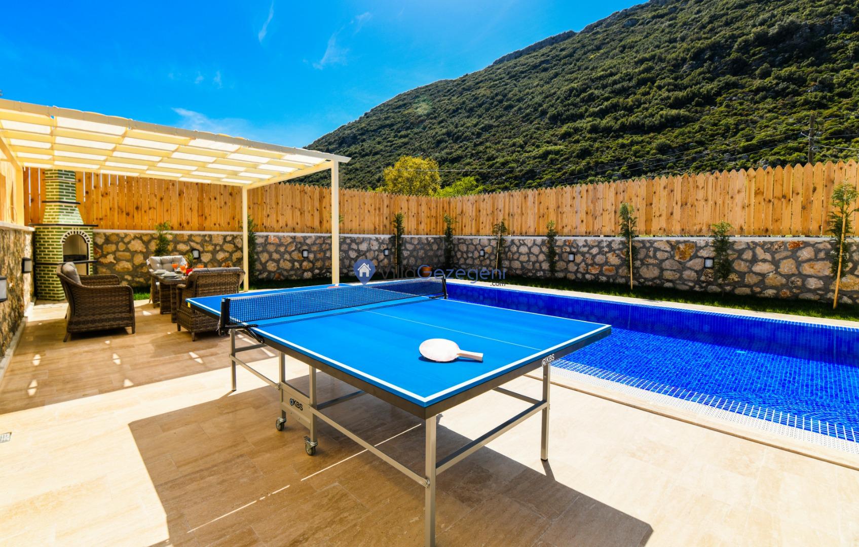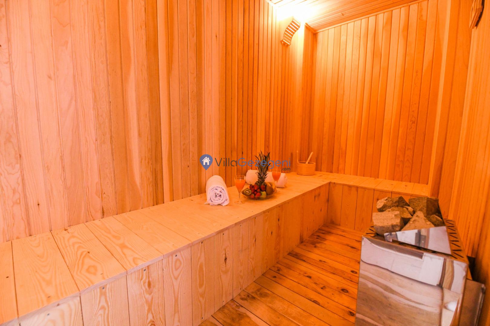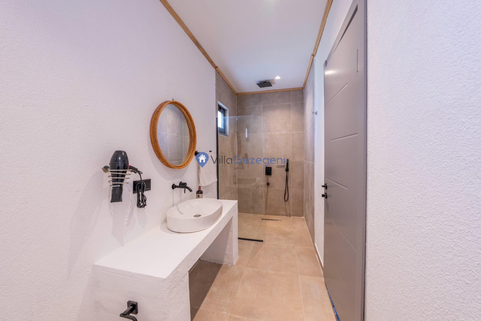 Villanın tam korunaklı havuzu, dışarıdan görünmeyecek şekilde tasarlanmıştır. Bu özellik, hem muhafazakar misafirler hem de mahremiyetine önem verenler için idealdir. Havuzun yanında bulunan geniş teras, gün boyu güneşlenmek ve dinlenmek için mükemmel bir alan sunar.