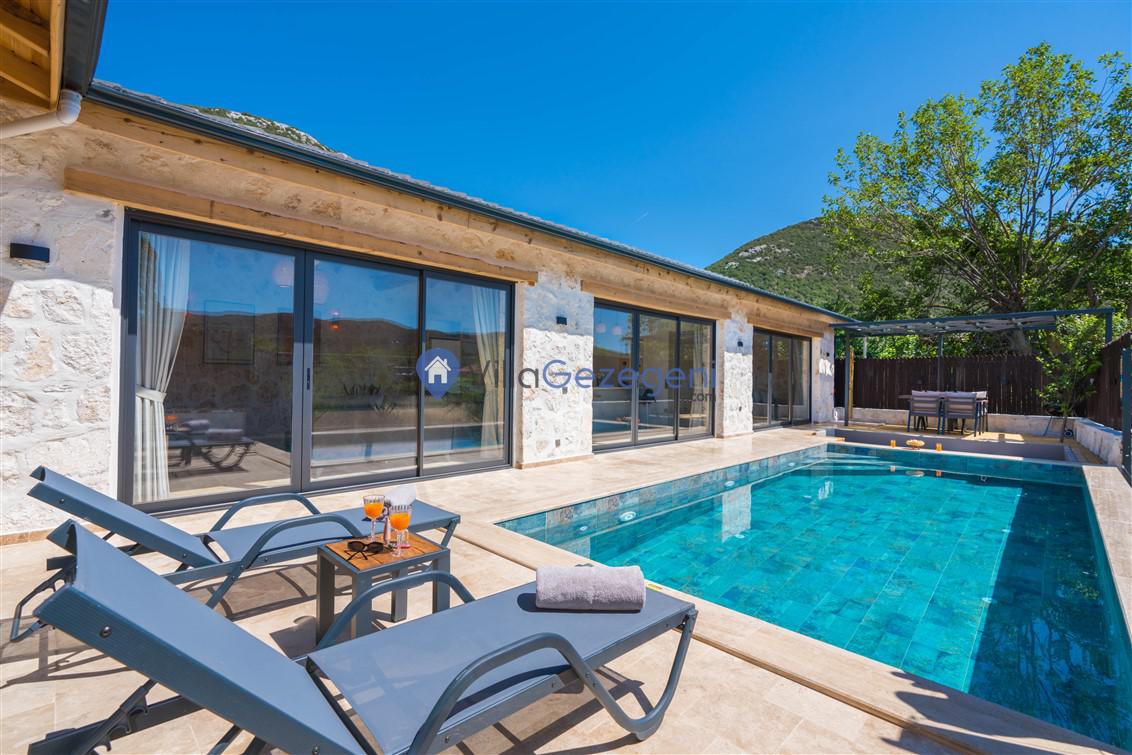 Kalkan Bezirgan Bölgesinde 2 Yatak Odalı 5 Kişi Kapasiteli Kiralık Tatil Villası