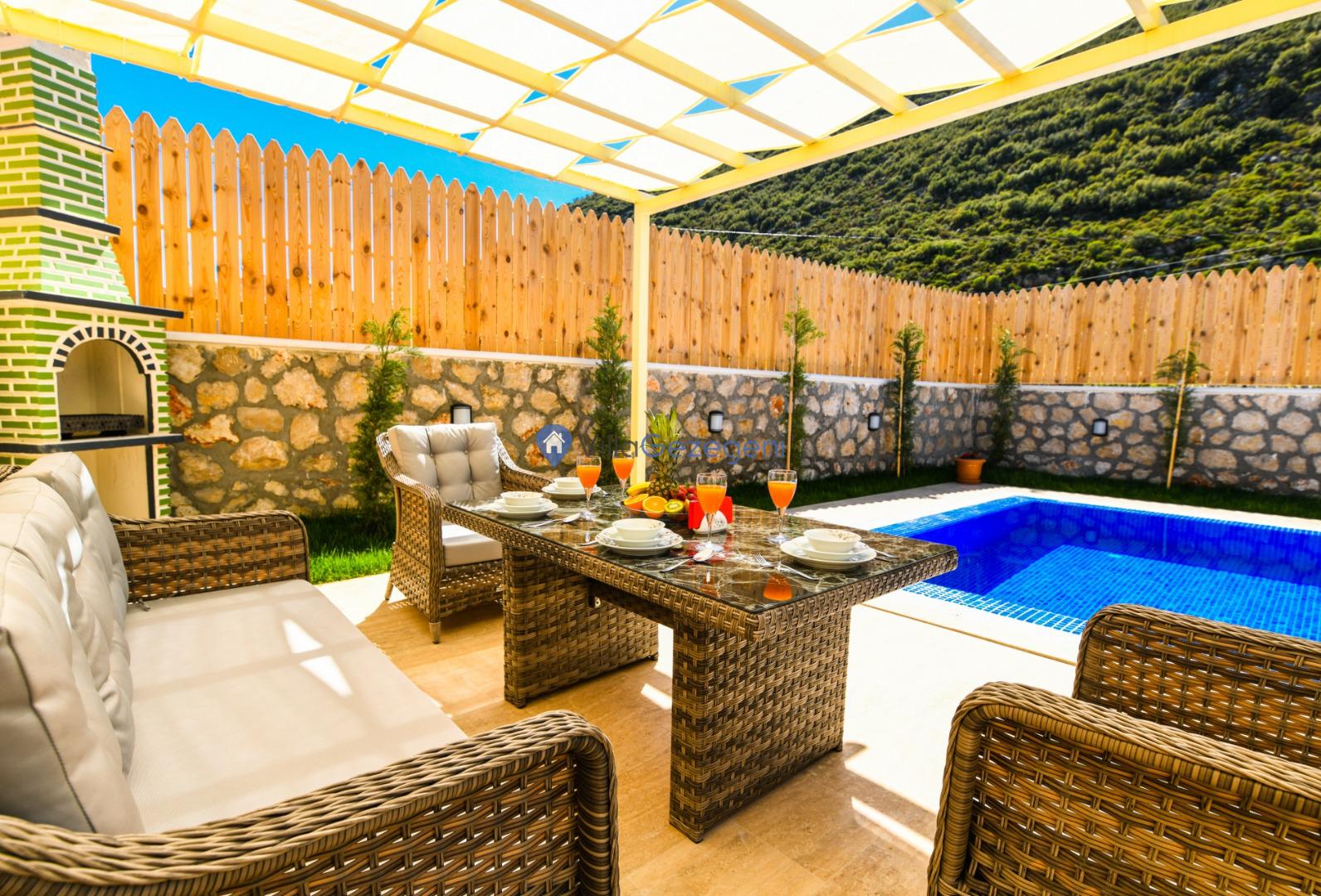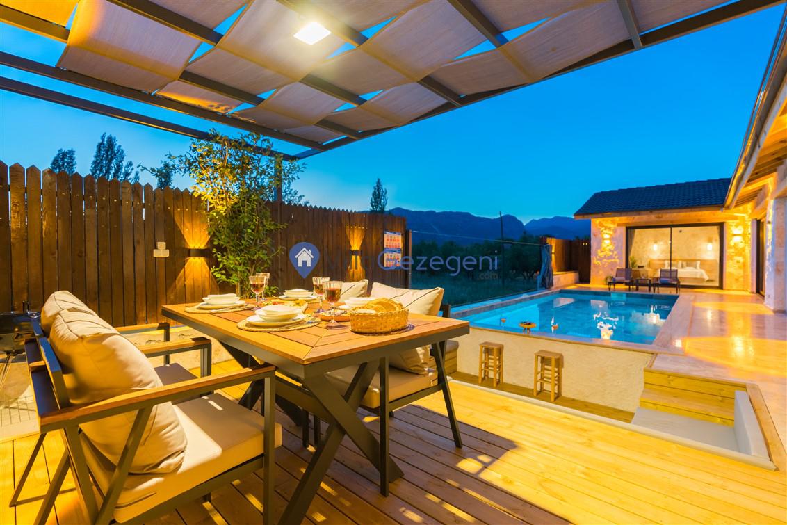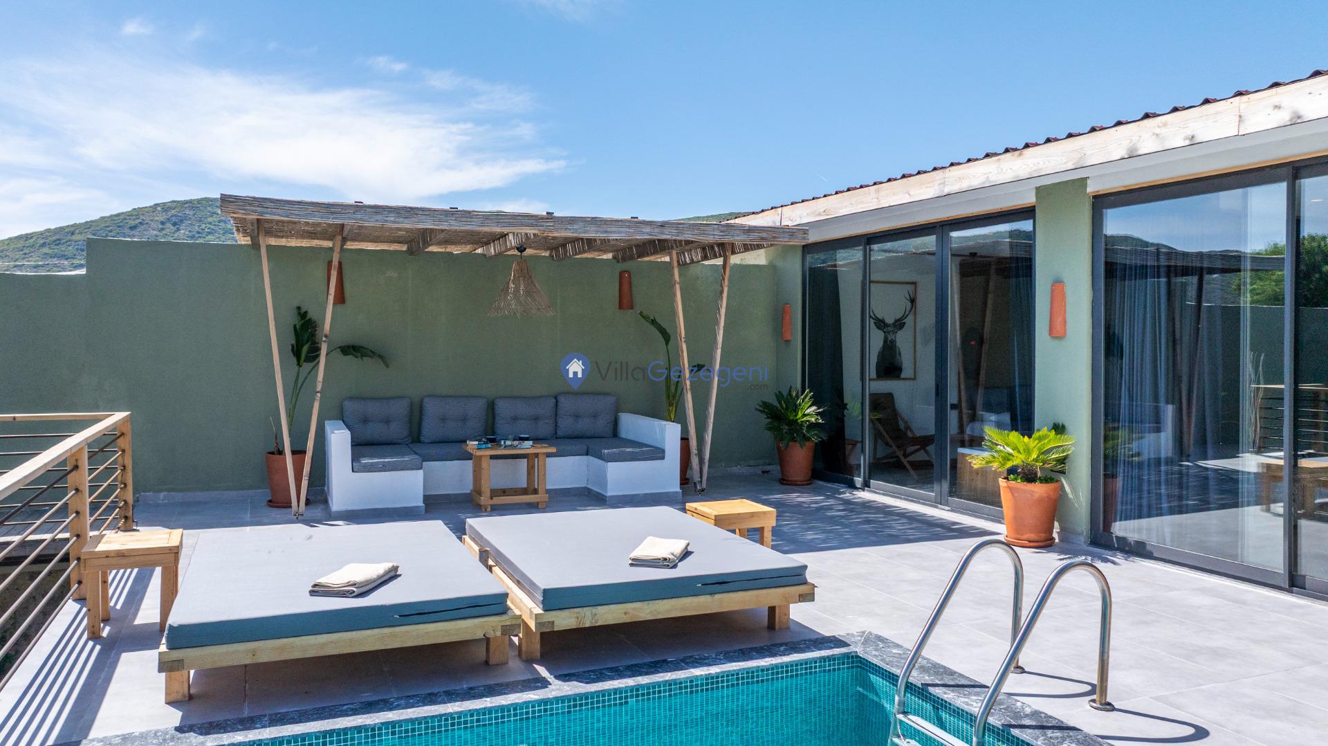 Kalkan Bezirgan Bölgesinde 2 Yatak Odalı 5 Kişilik Kiralık Balayı Villası