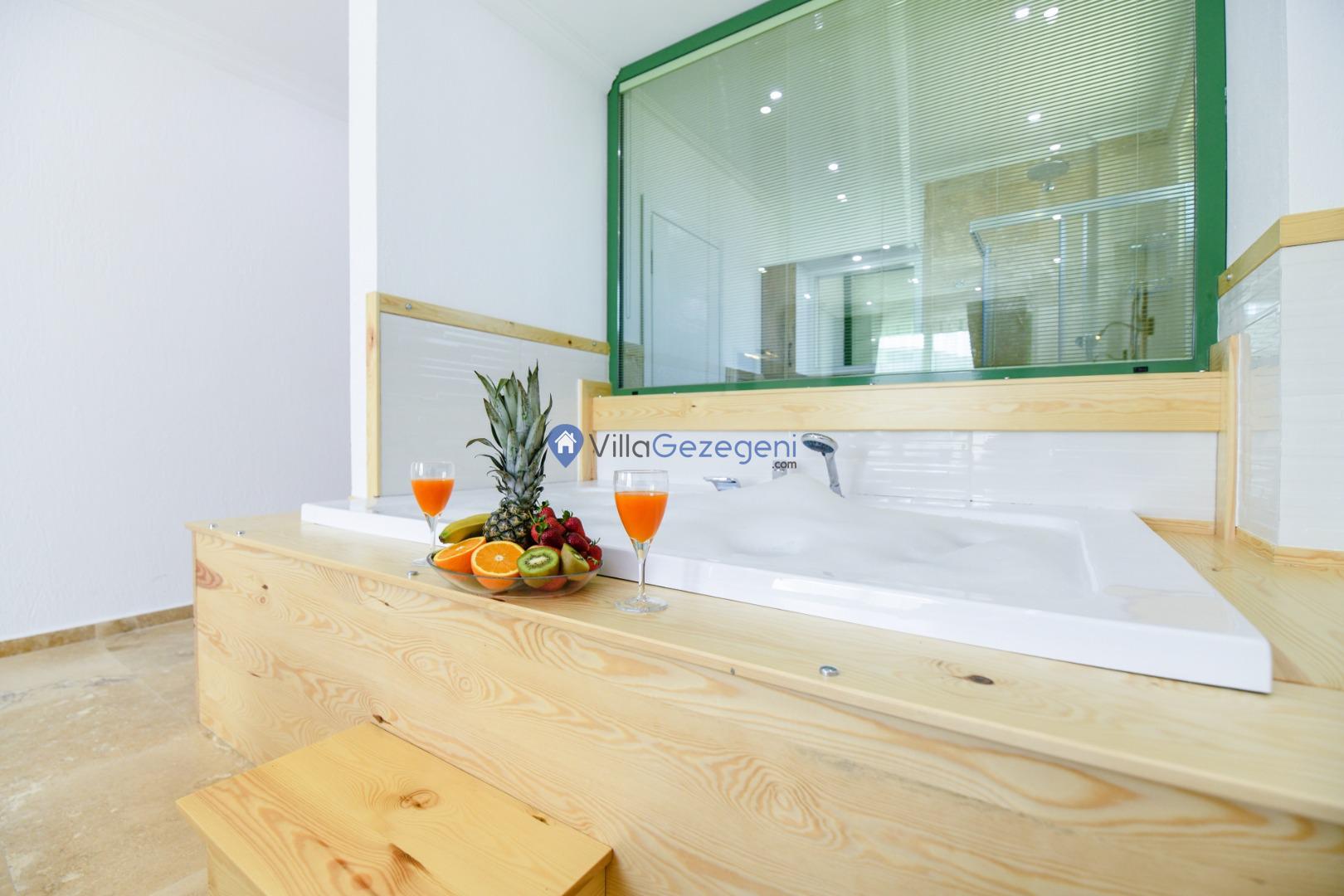 Ana yatak odasında bulunan jakuzi, hem rahatlamak hem de keyifli vakit geçirmek için lüks bir detaydır. Yorucu bir günün ardından jakuzide dinlenerek günün yorgunluğunu atabilirsiniz.