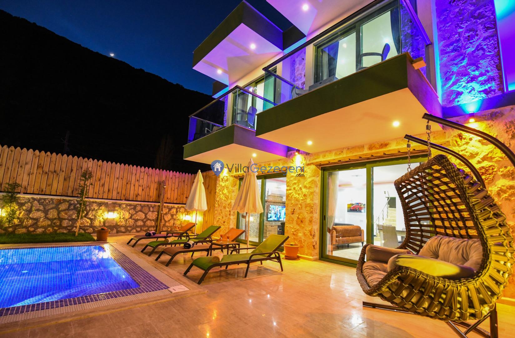 Kalkan’ın Bezirgan bölgesinde yer alan Villa Alaf, 4 kişilik kapasitesiyle küçük aileler ve balayı çiftleri için mükemmel bir tatil seçeneği sunuyor. Tam korunaklı havuzu, jakuzisi ve doğa ile iç içe konumu sayesinde huzurlu bir tatil geçirmenize olanak tanıyor. Modern detaylarla donatılmış bu villa, sakin ve keyifli bir tatil için tüm beklentilerinizi karşılıyor.