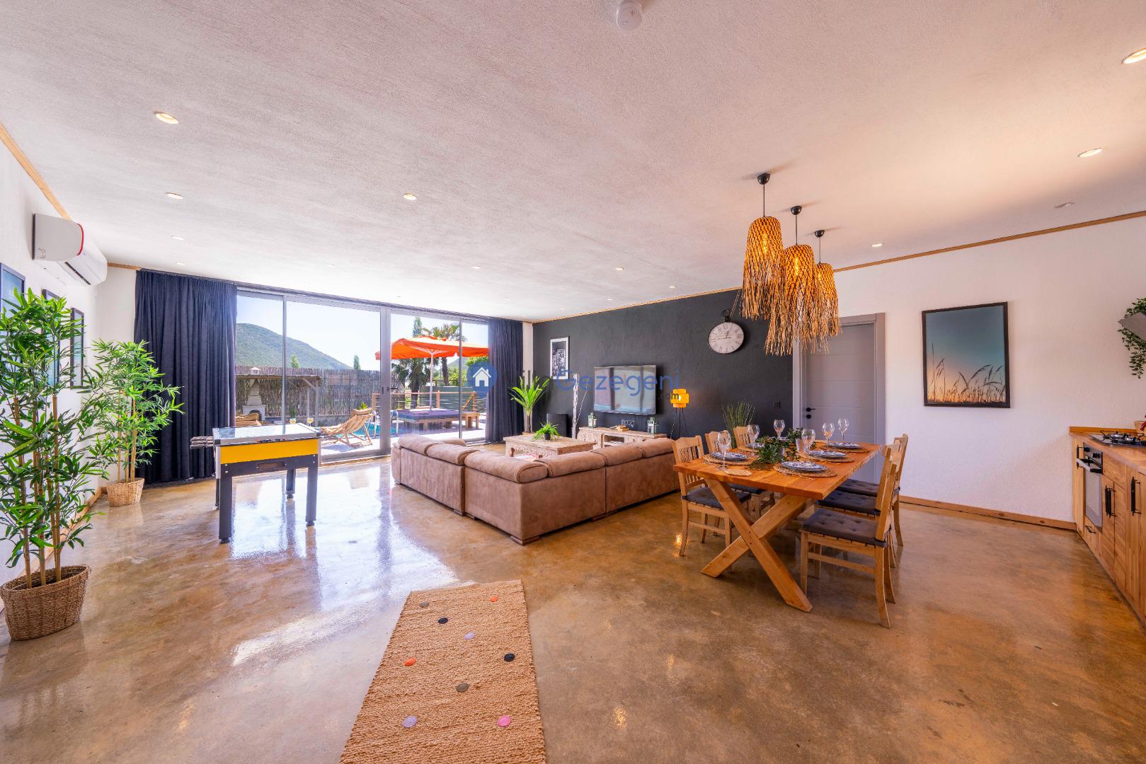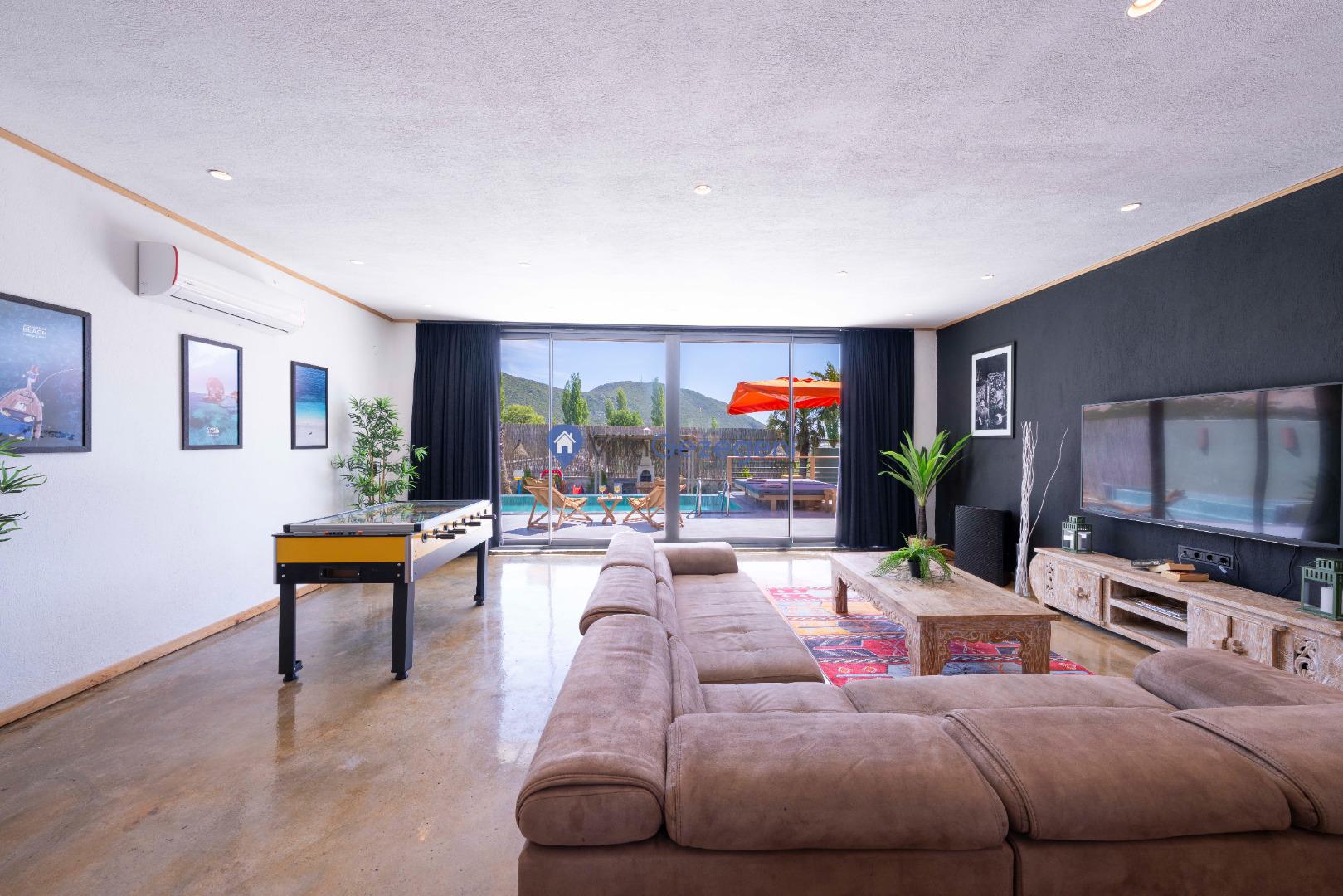 Villa Alaf, modern tasarımı ve şık iç mekanlarıyla dikkat çeker. Konforlu oturma alanı, tam donanımlı mutfak ve zevkle döşenmiş odalar, misafirlerin tüm ihtiyaçlarını karşılayacak şekilde tasarlanmıştır.