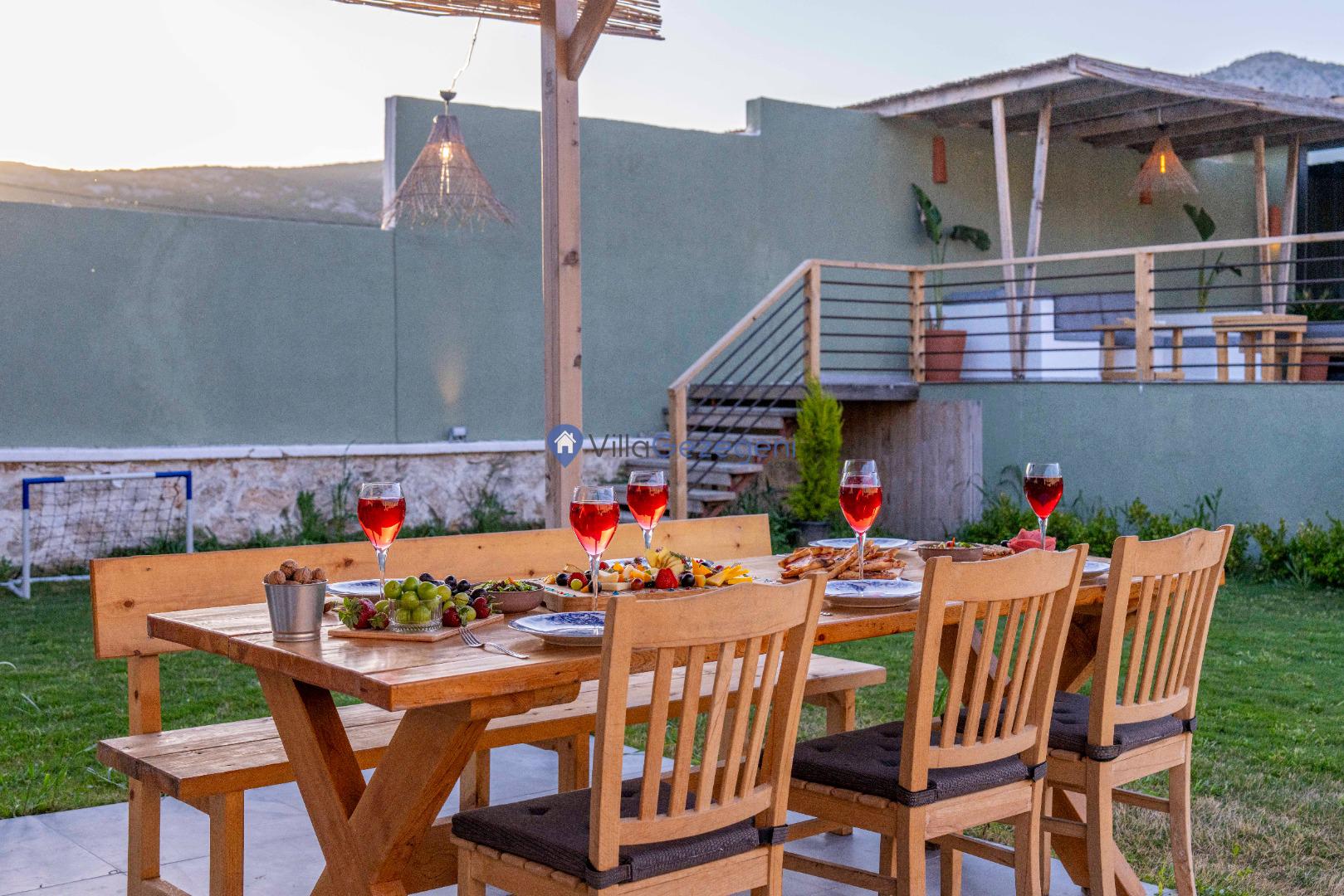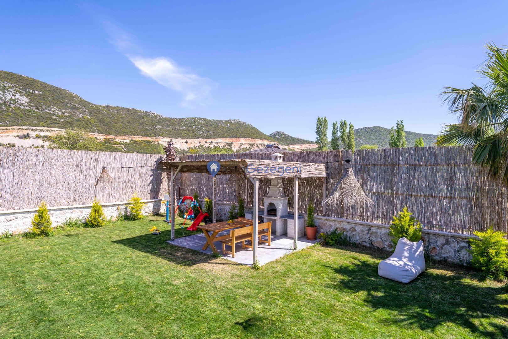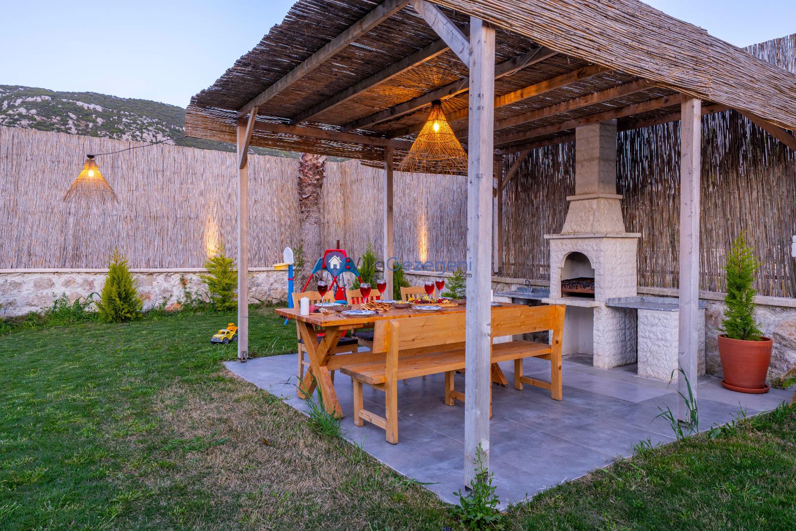 Villa Alaf’ın bahçesi, doğanın içinde dinlenmeniz için tasarlanmıştır. Geniş oturma alanları, barbekü olanakları ve yemyeşil doğasıyla hem aileler hem de çiftler için huzurlu bir alan sunar. Bahçenin doğal yapısı ve estetik düzenlemesi, unutulmaz bir tatil için ideal bir ortam sağlar.