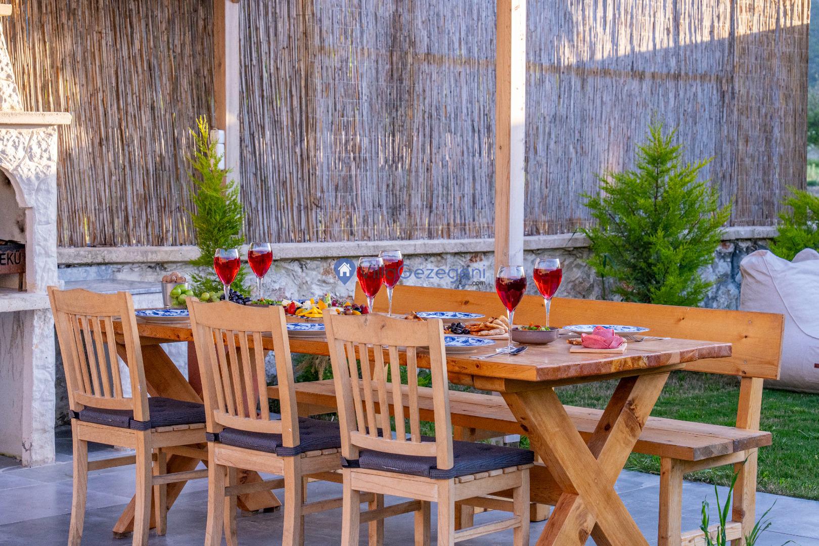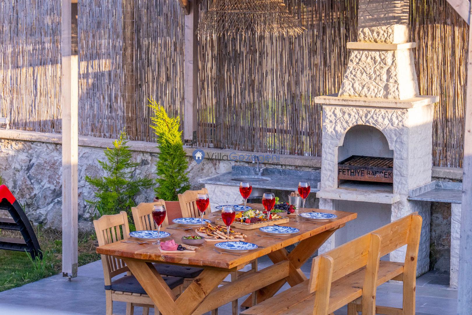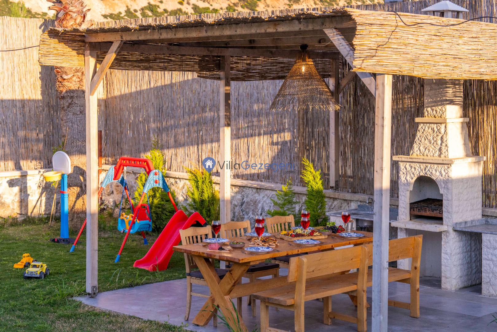 Villa Alaf’ın bahçesi, doğanın içinde dinlenmeniz için tasarlanmıştır. Geniş oturma alanları, barbekü olanakları ve yemyeşil doğasıyla hem aileler hem de çiftler için huzurlu bir alan sunar. Bahçenin doğal yapısı ve estetik düzenlemesi, unutulmaz bir tatil için ideal bir ortam sağlar.