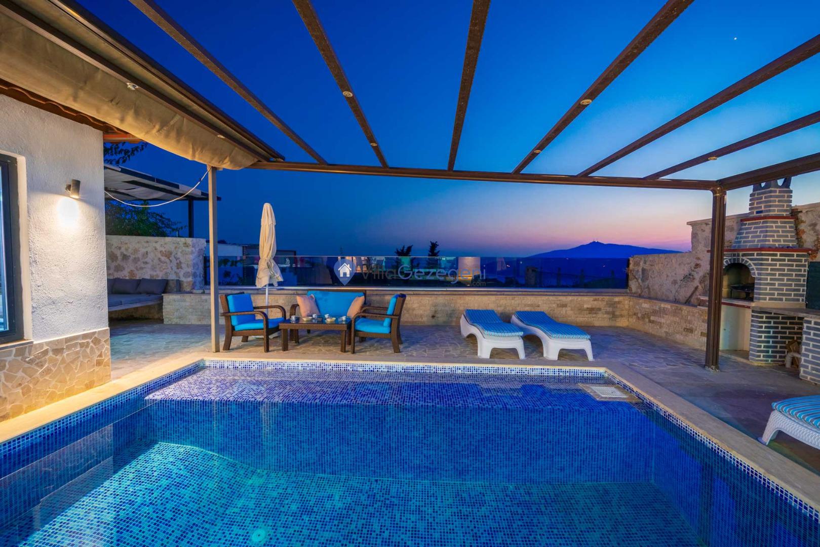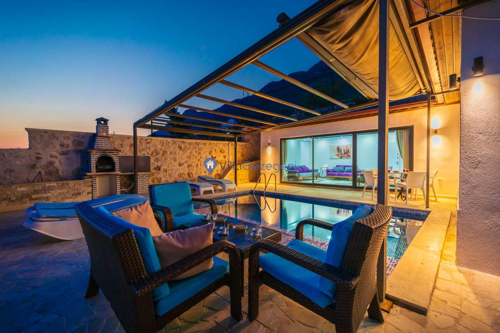 Kalkan Kördere bölgesinde bulunan 2 yatak odalı/4 kişilik kiralık özel havuzlu villa