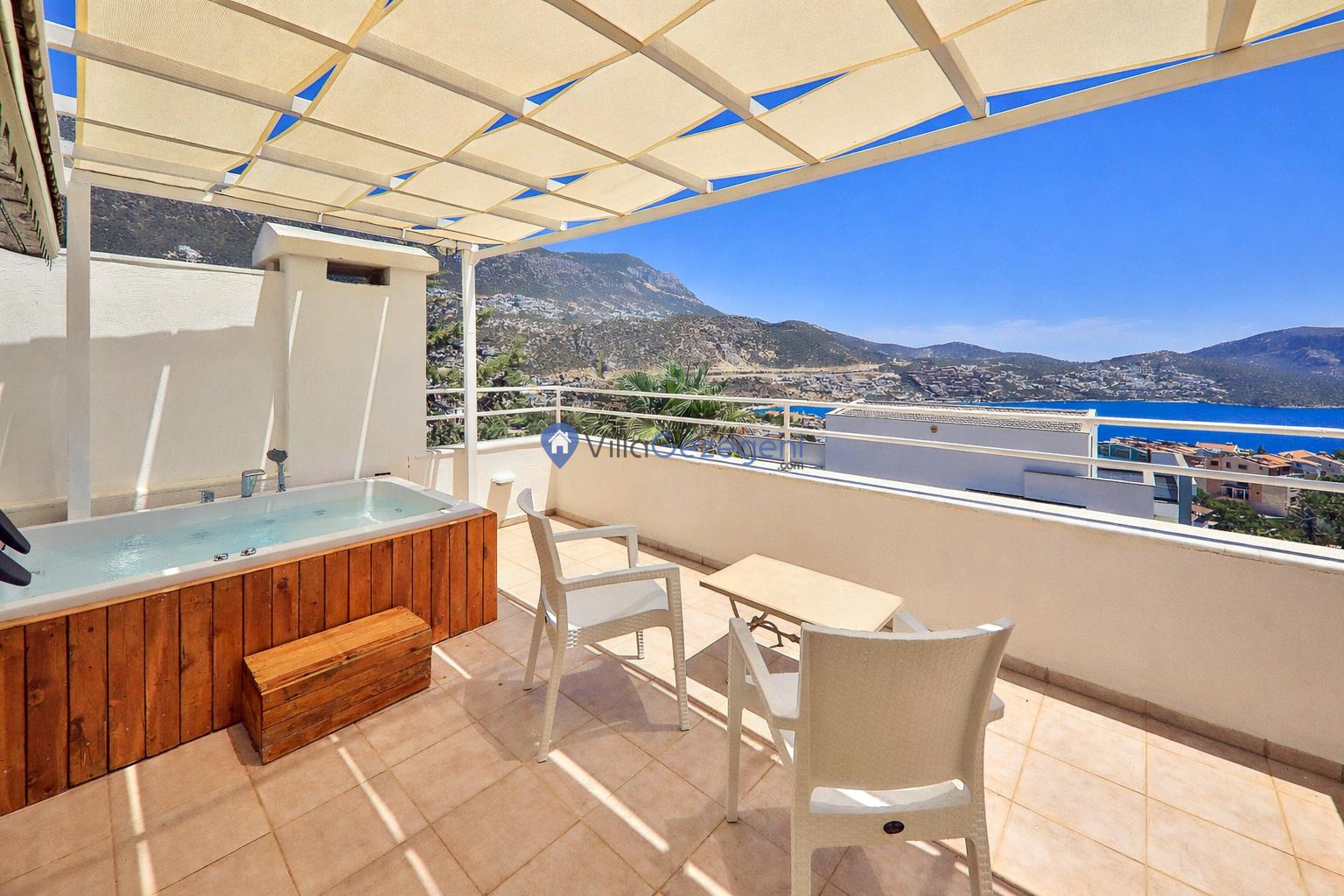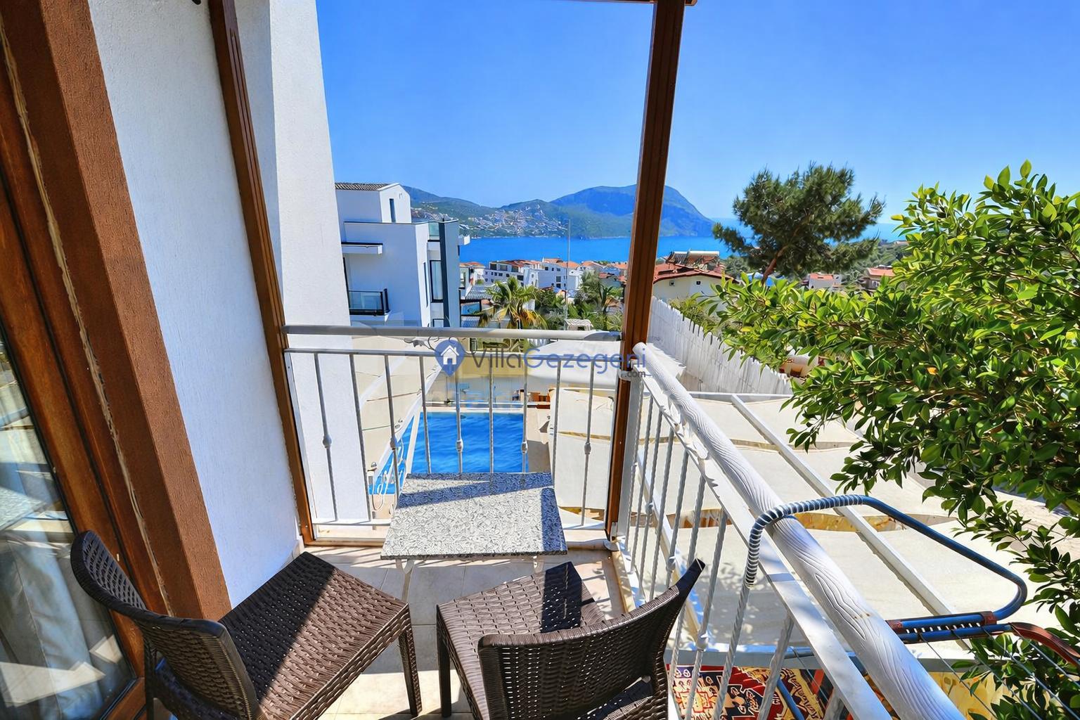 Kaş Kalkan Ortaalan Bölgesinde yer alan 3 yatak odalı 6 kişi kapasiteli şehir merkezine yakın deniz manzaralı kiralık tatil villası.