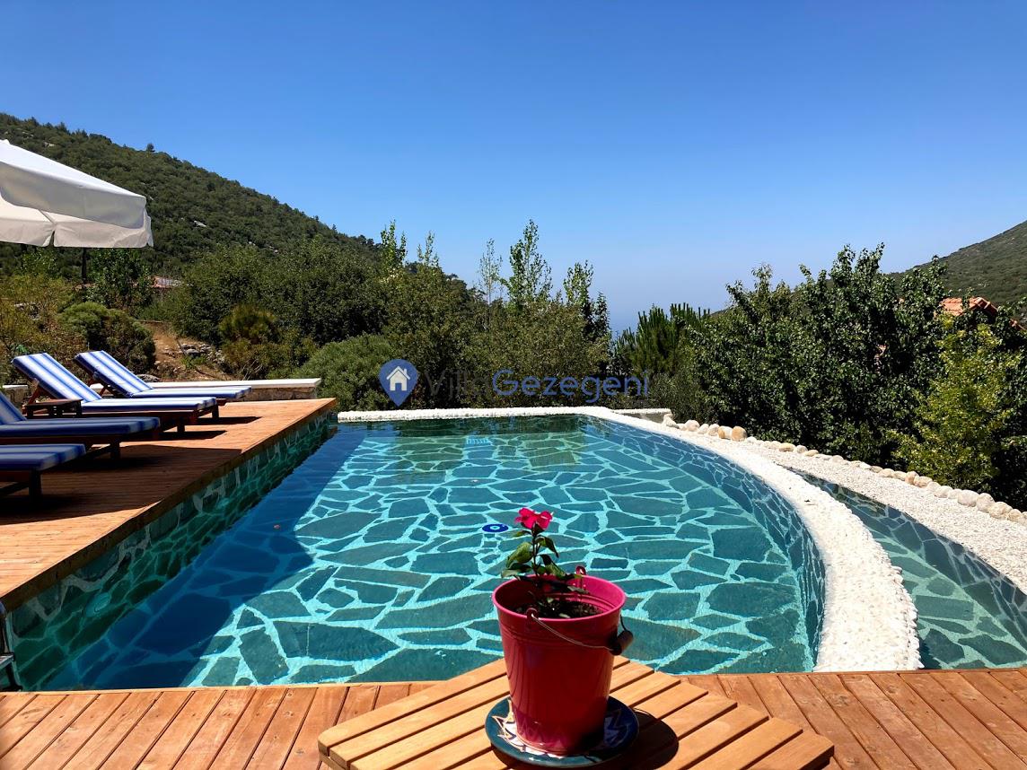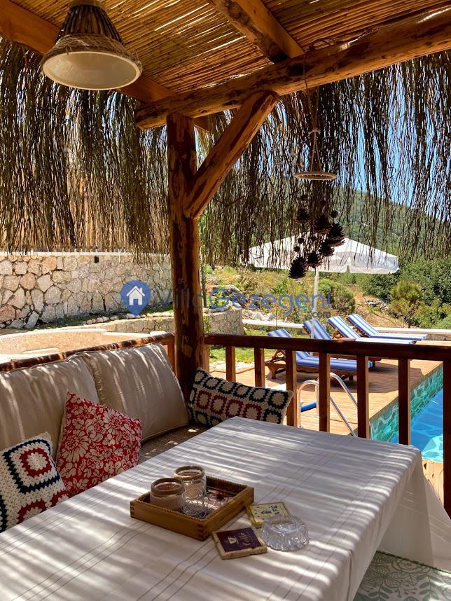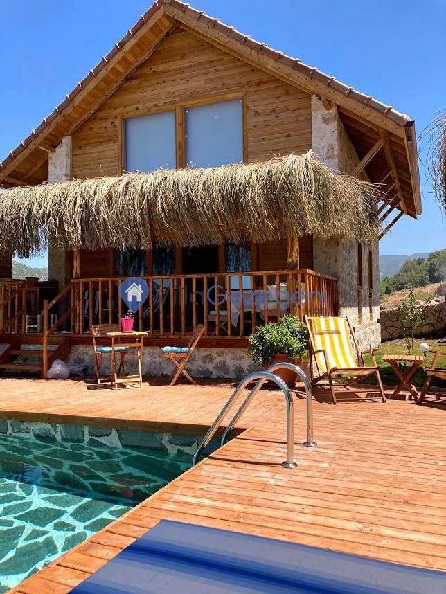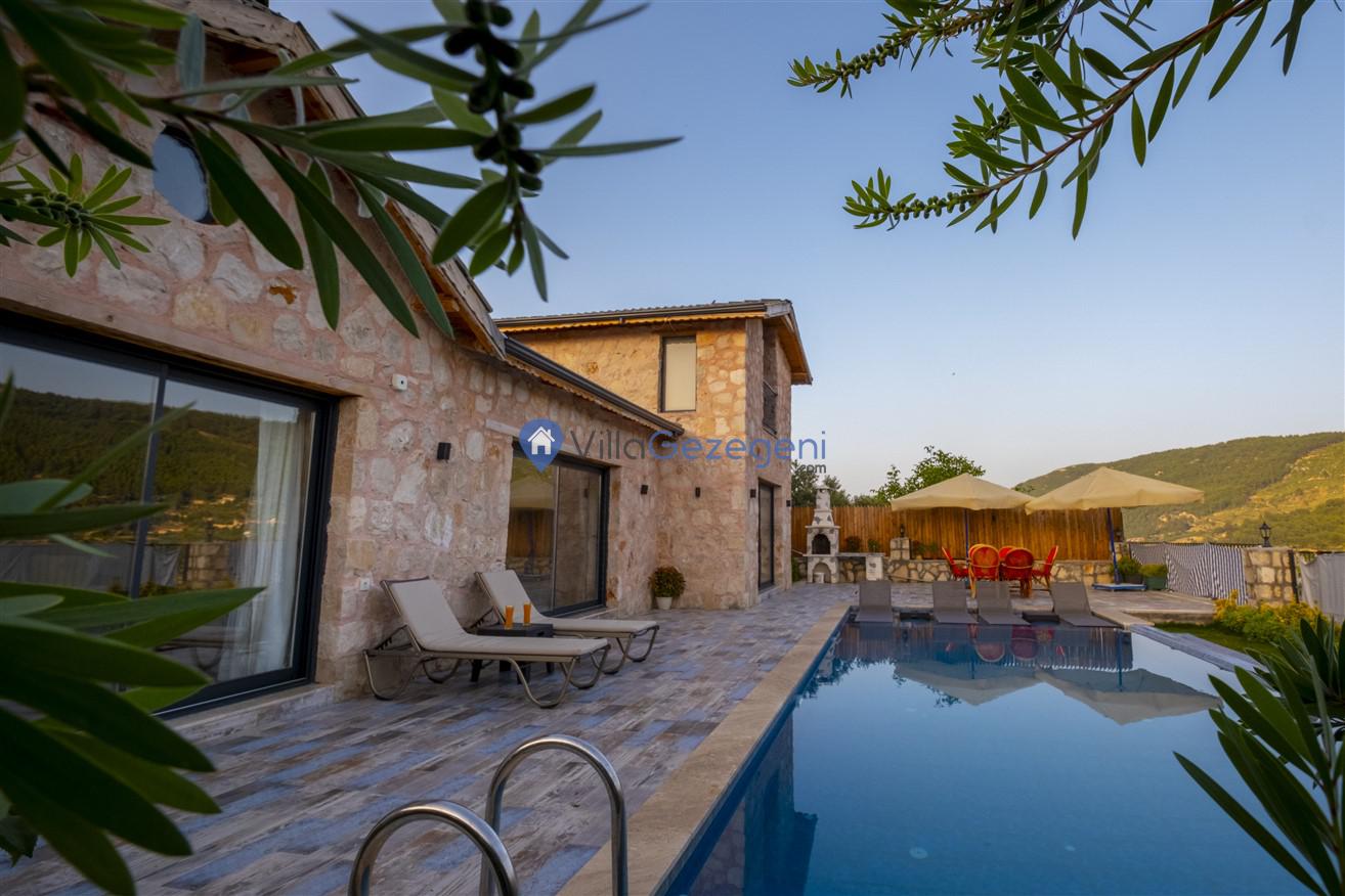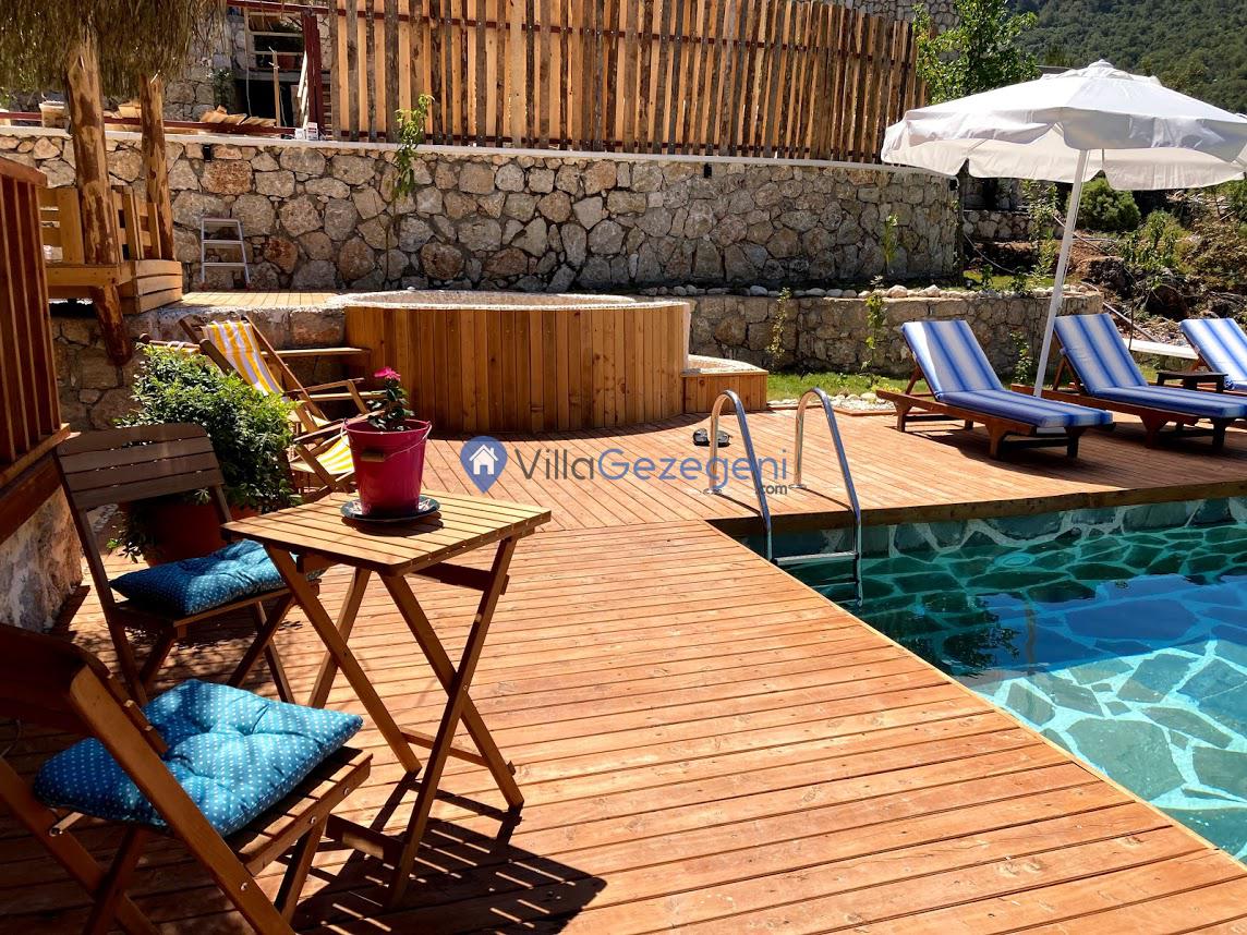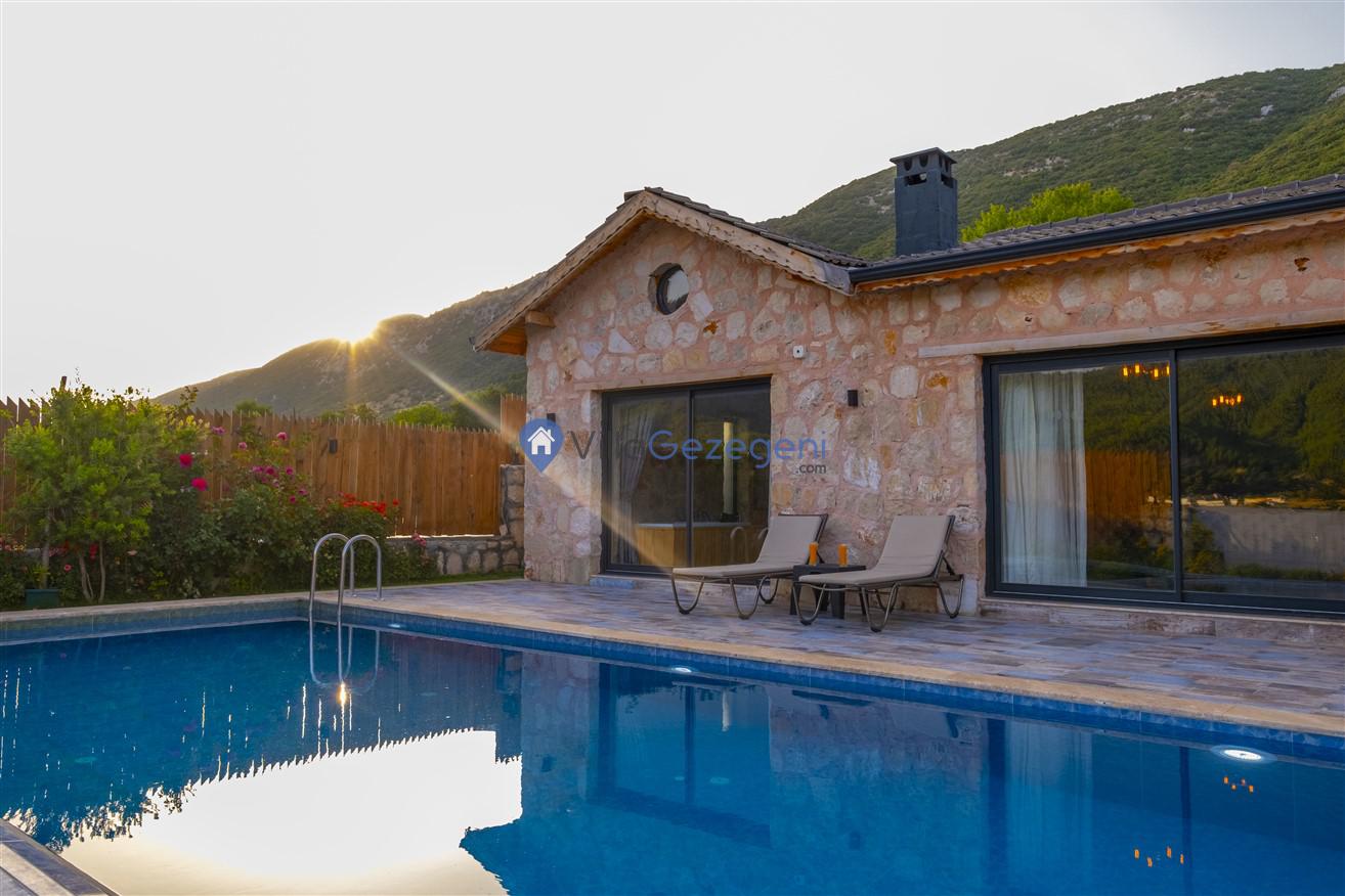 Kaş/Kalkan/Bezirgan Bölgesinde yer alan 2 yatak odalı 4 kişi kapasiteli, doğa içerisinde havuzu korunaklı tatil villası.