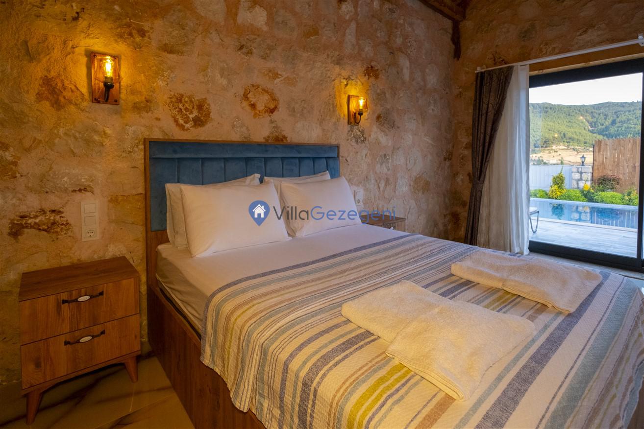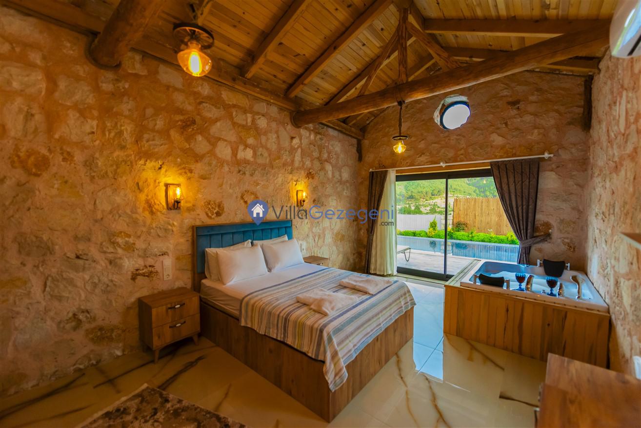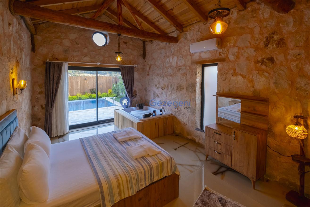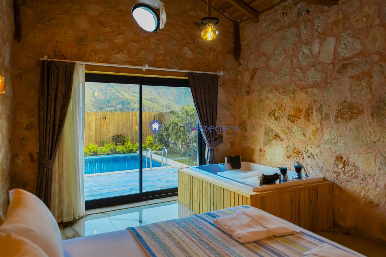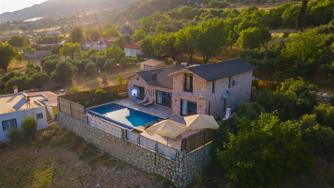Kaş/Kalkan/Bezirgan Bölgesinde yer alan 2 yatak odalı 4 kişi kapasiteli, doğa içerisinde havuzu korunaklı tatil villası.