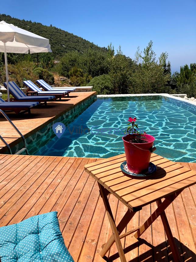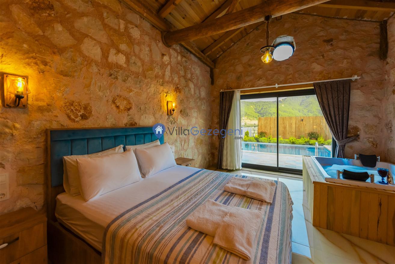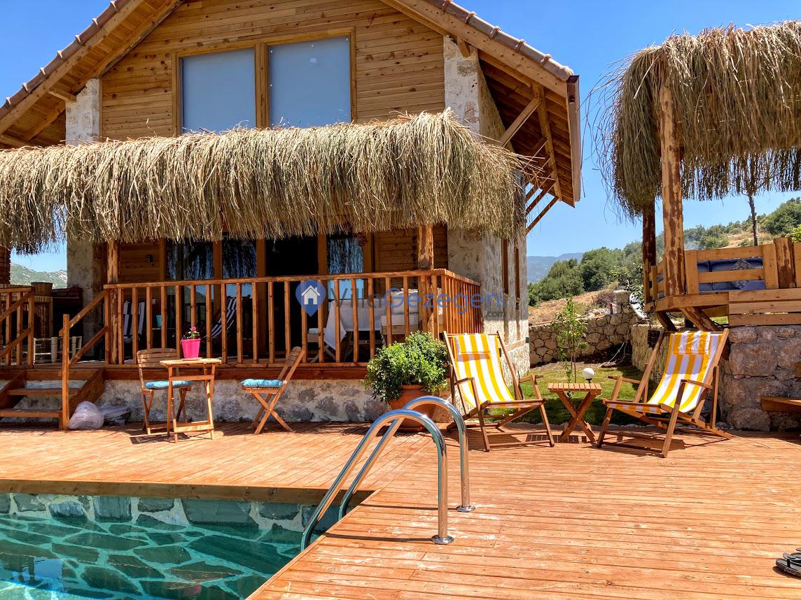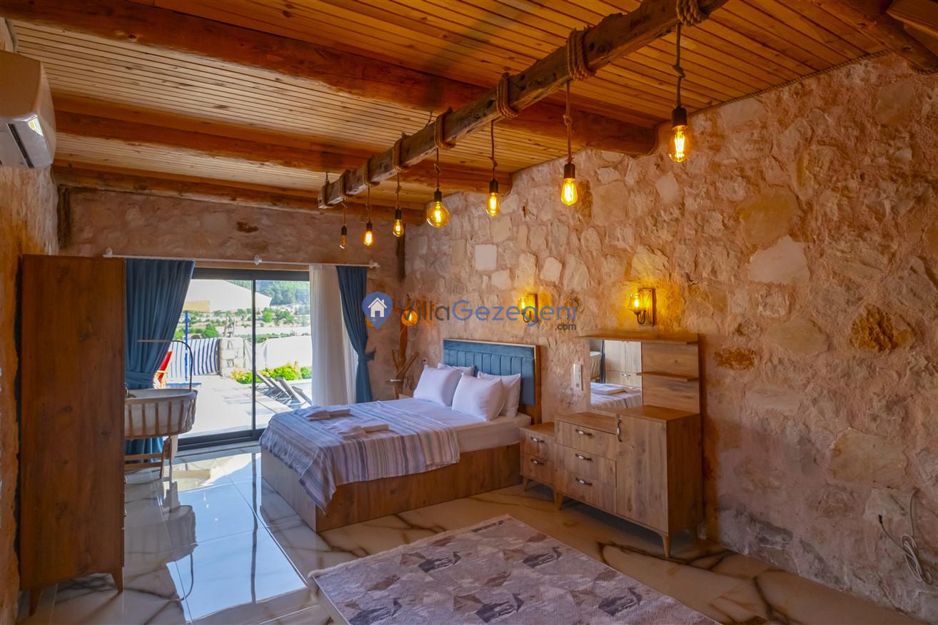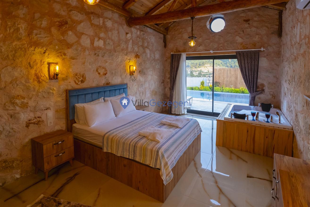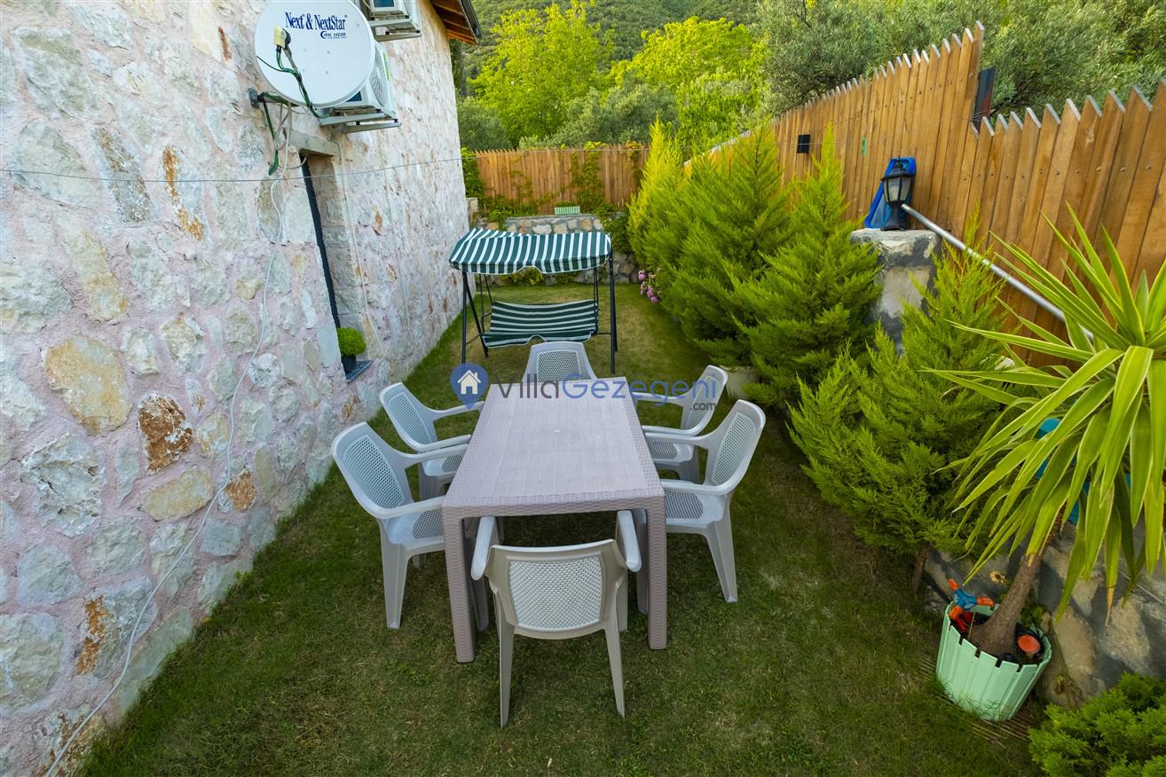 Kaş/Kalkan/Bezirgan Bölgesinde yer alan 2 yatak odalı 4 kişi kapasiteli, doğa içerisinde havuzu korunaklı tatil villası.