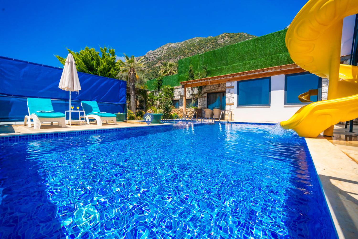 Kalkan/ Kördere mevkiide bulunan 3 yatak odalı 6 kişilik deniz manzaralı sıcak iç havuzlu tatil villasıdır.