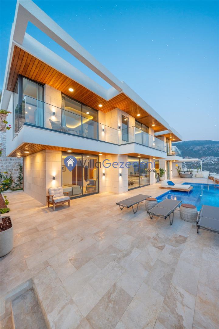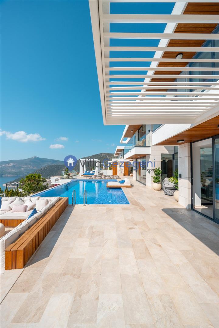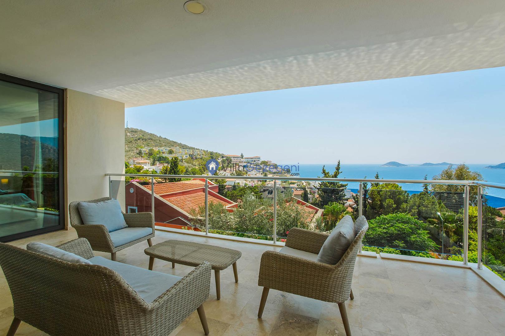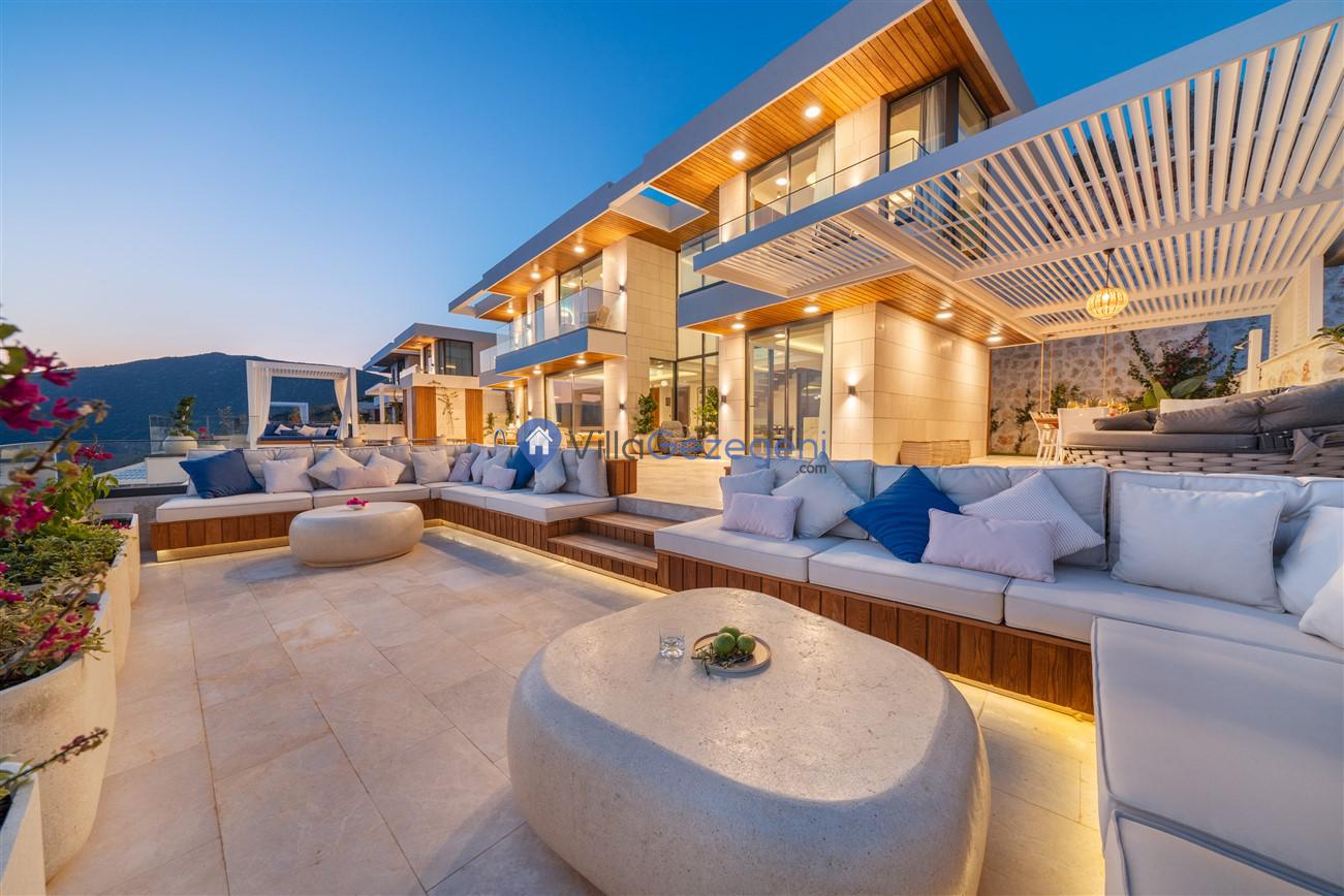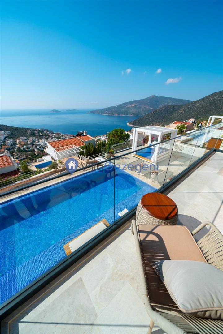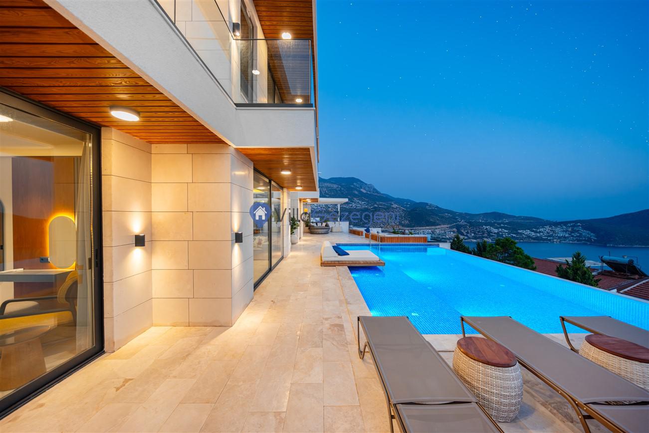 Kalkan Kalamar mevkiisinde bulunan 4 odalı 8 kişilik lüks tasarıma sahip deniz manzaralı kiralık villa