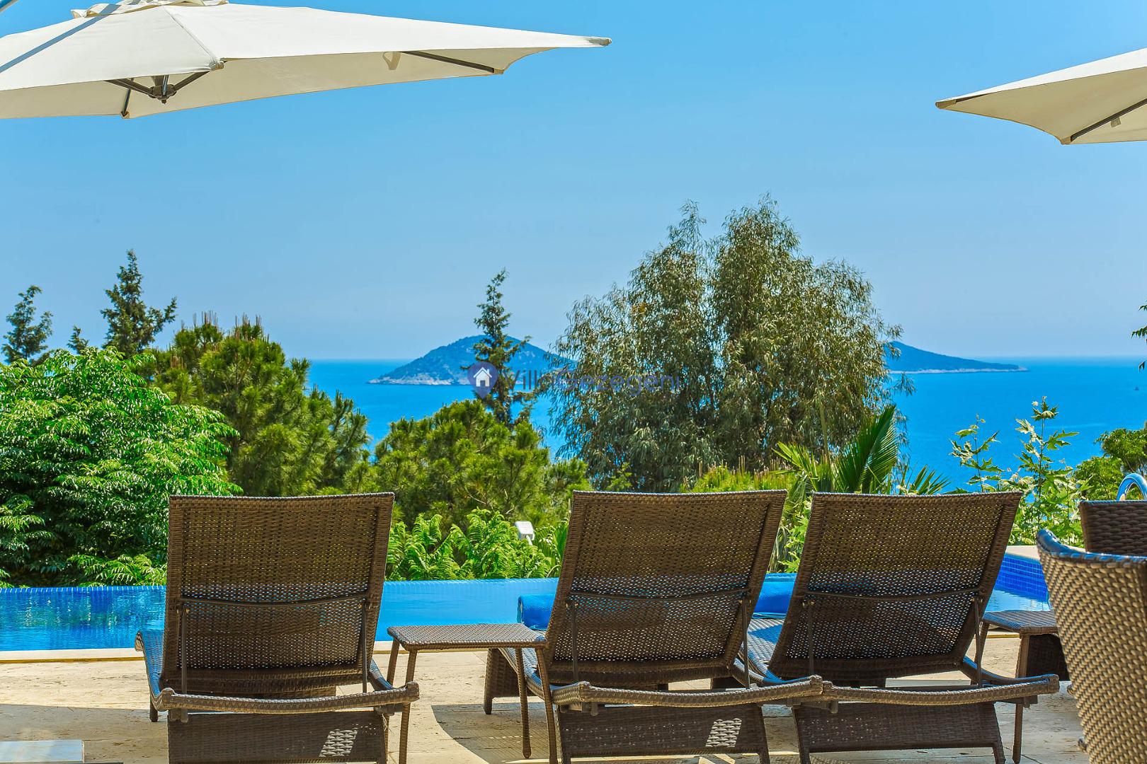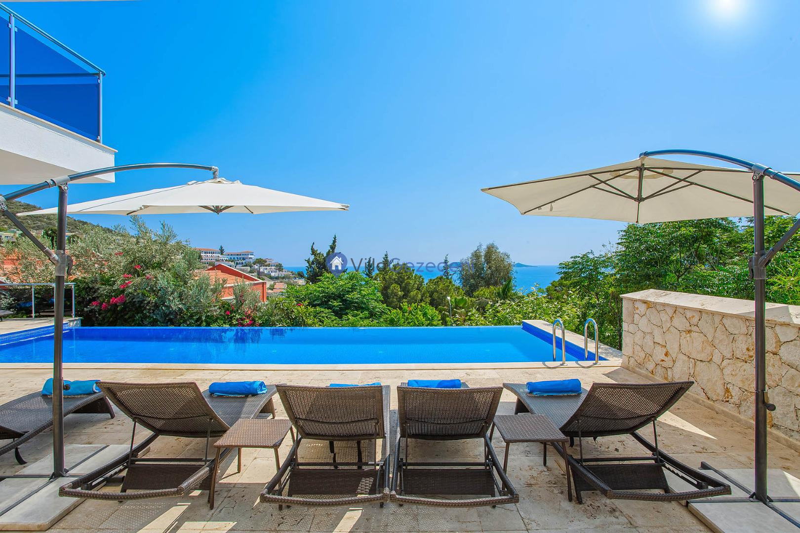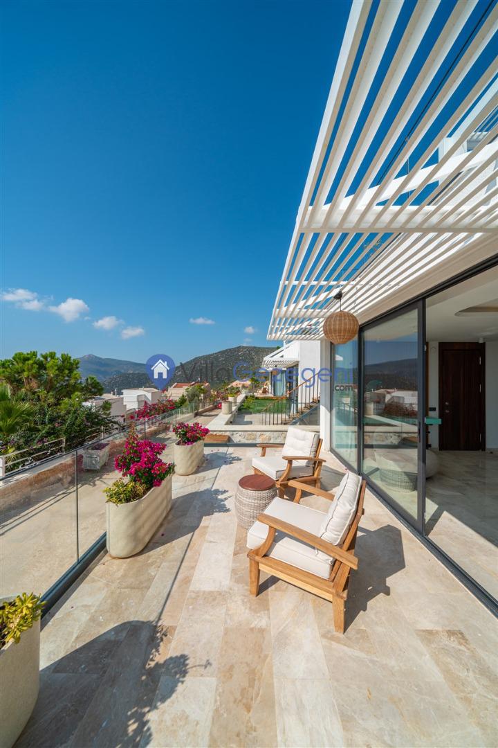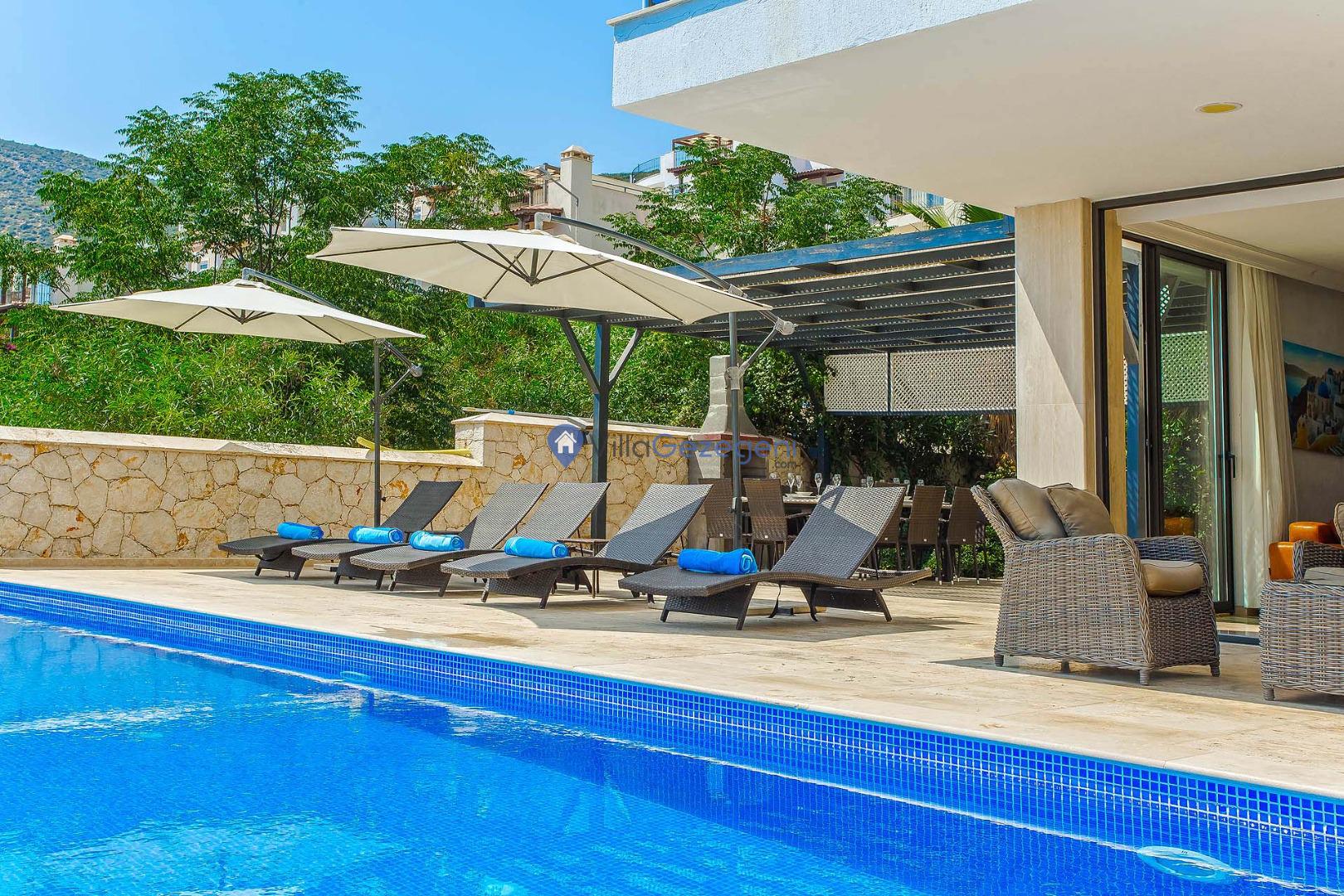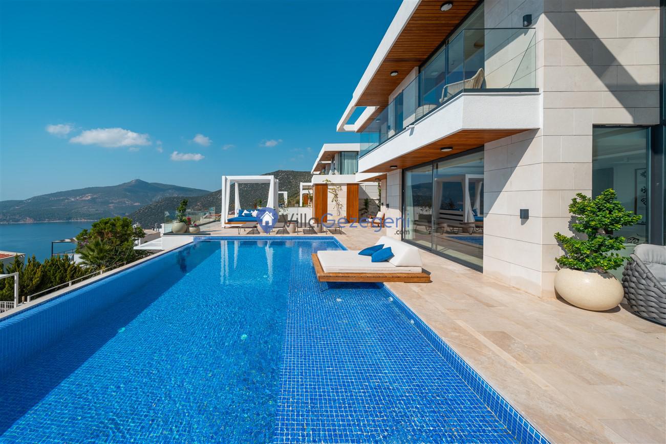 Kalkan Kalamar mevkiisinde bulunan 4 odalı 8 kişilik lüks tasarıma sahip deniz manzaralı kiralık villa