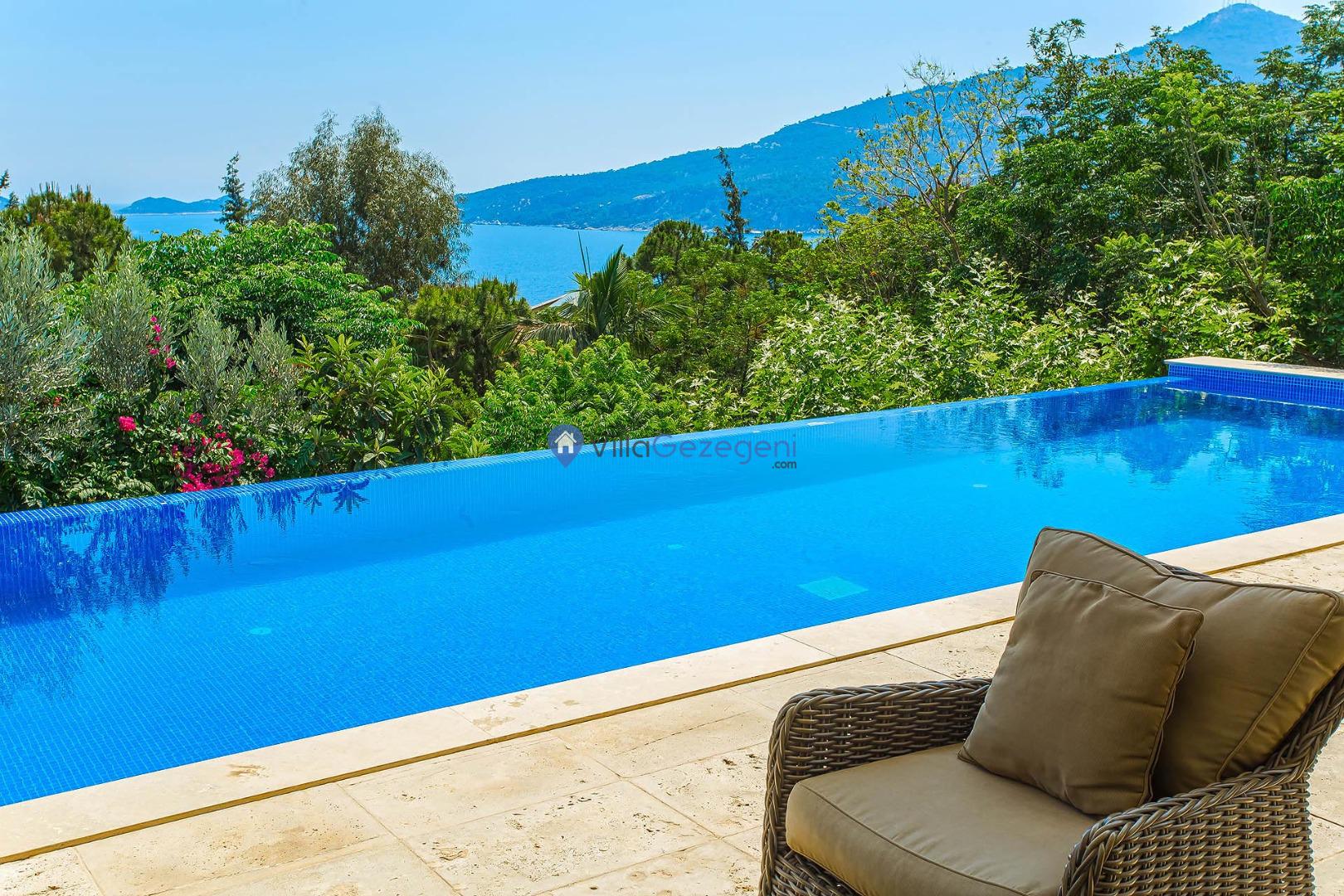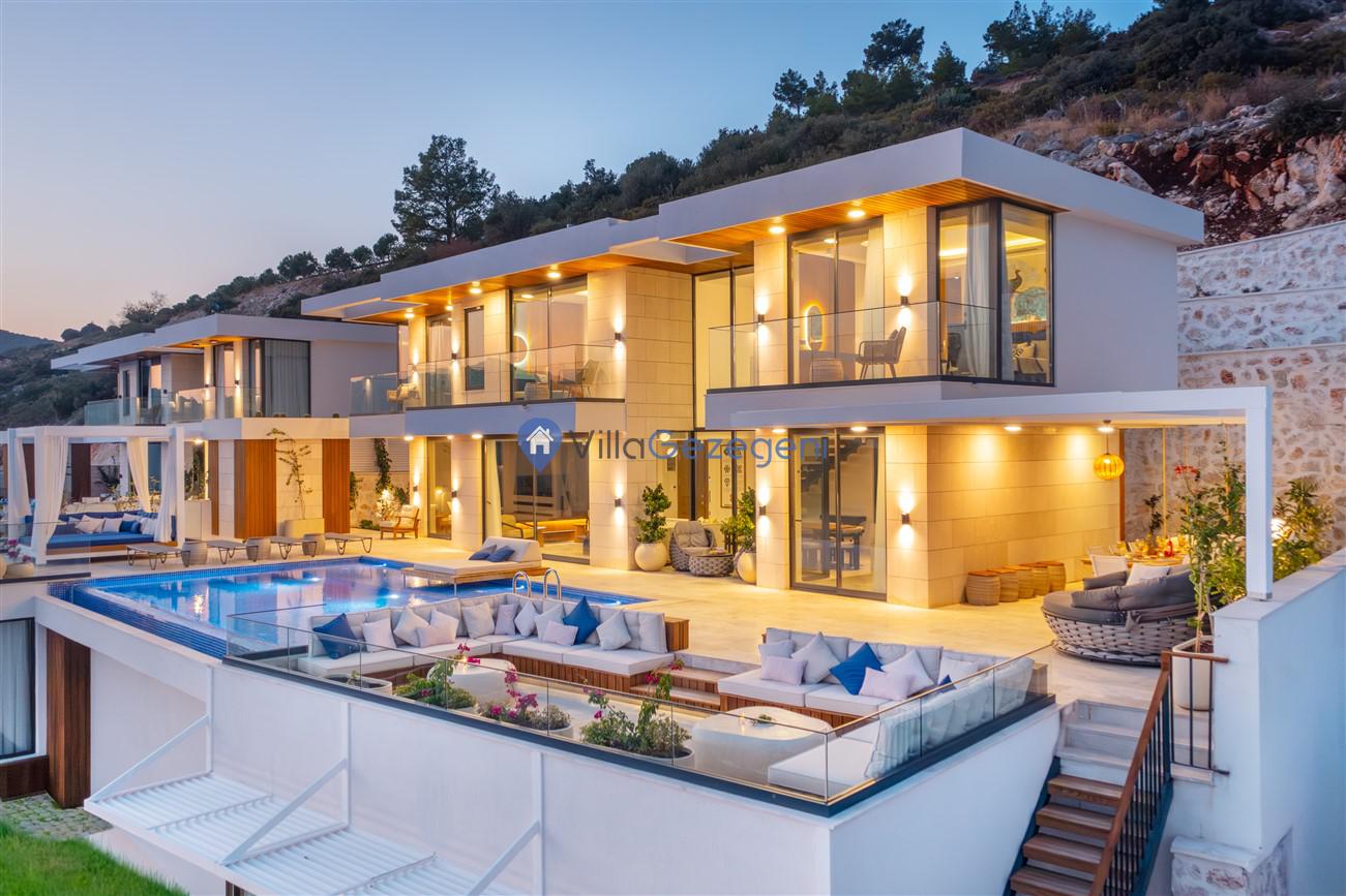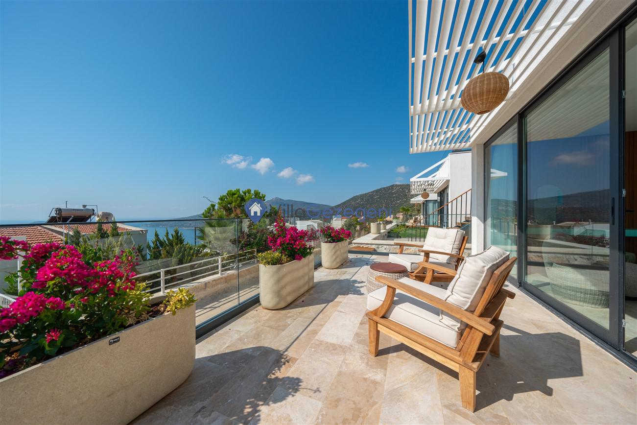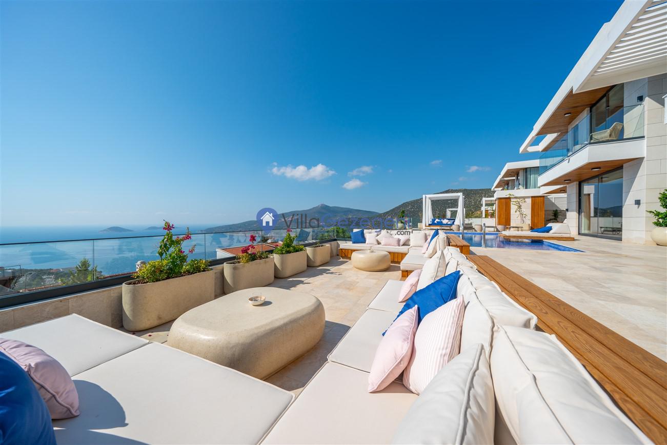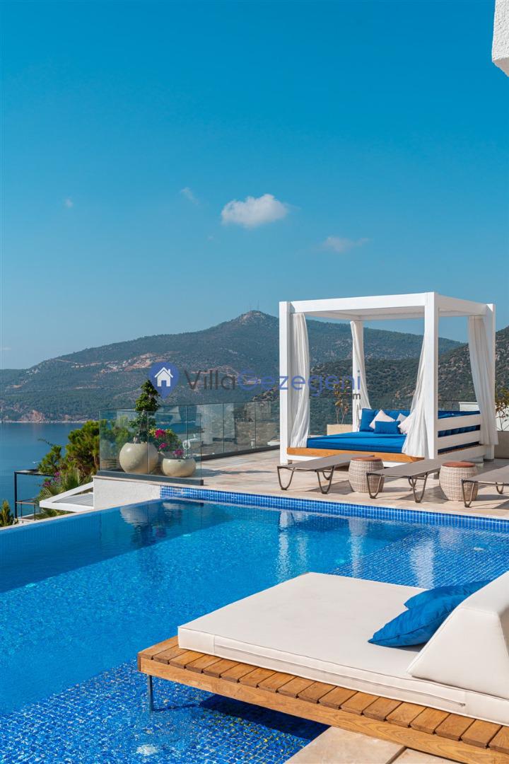 Kalkan Kalamar mevkiisinde bulunan 4 odalı 8 kişilik lüks tasarıma sahip deniz manzaralı kiralık villa