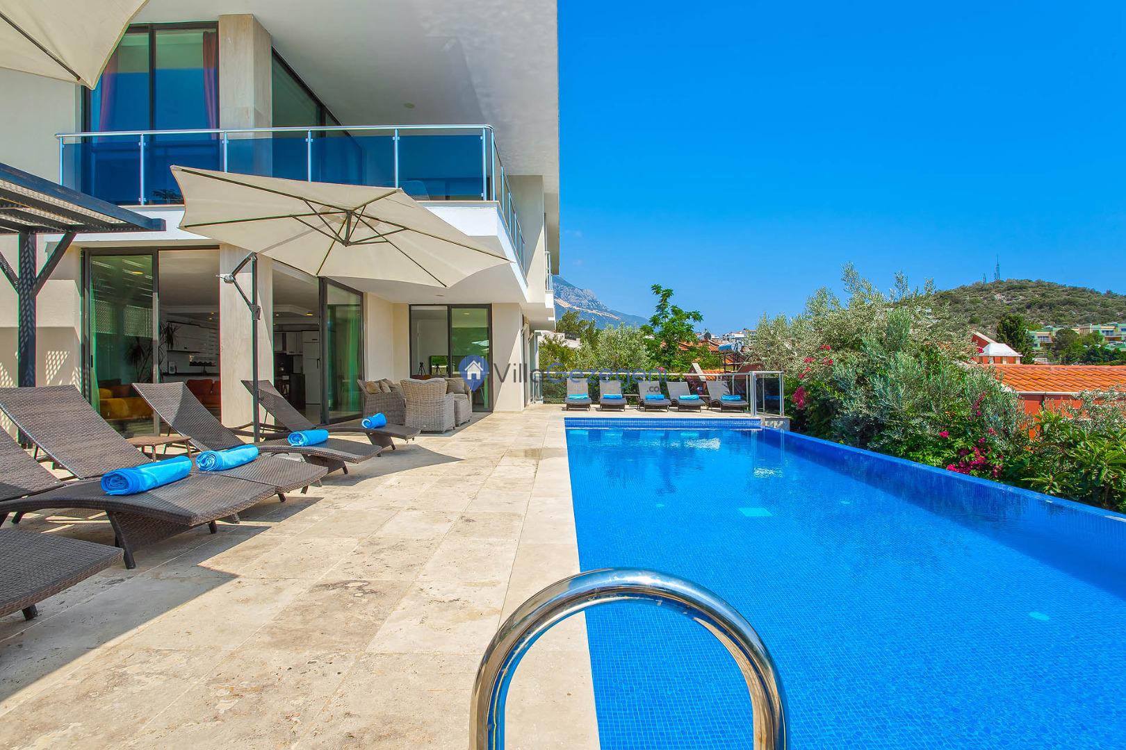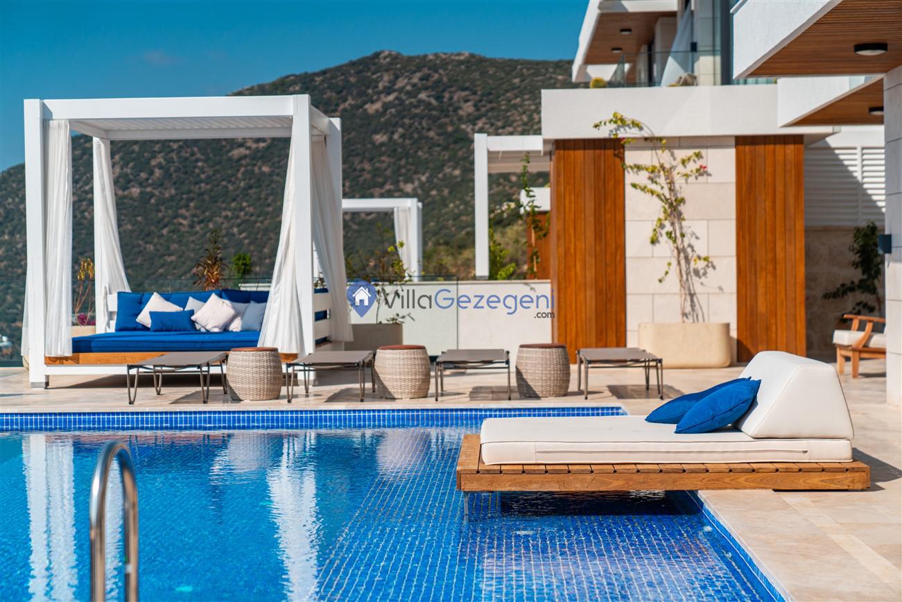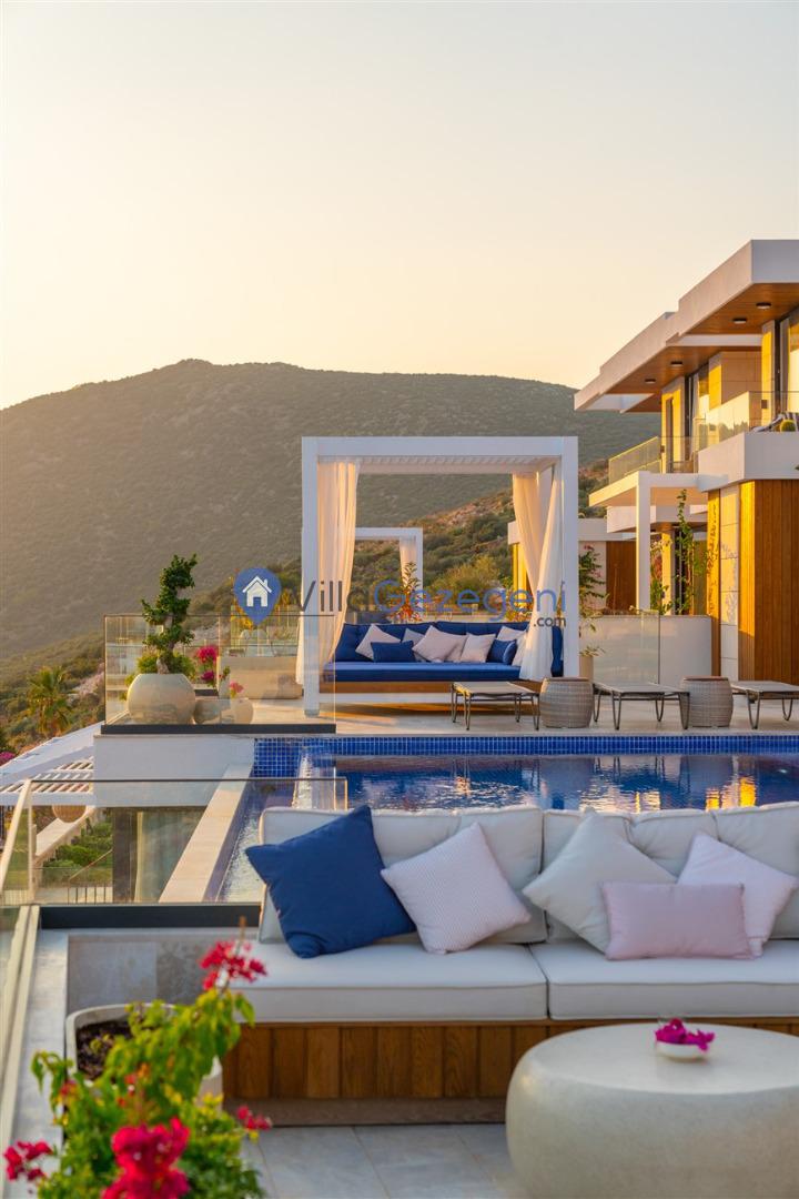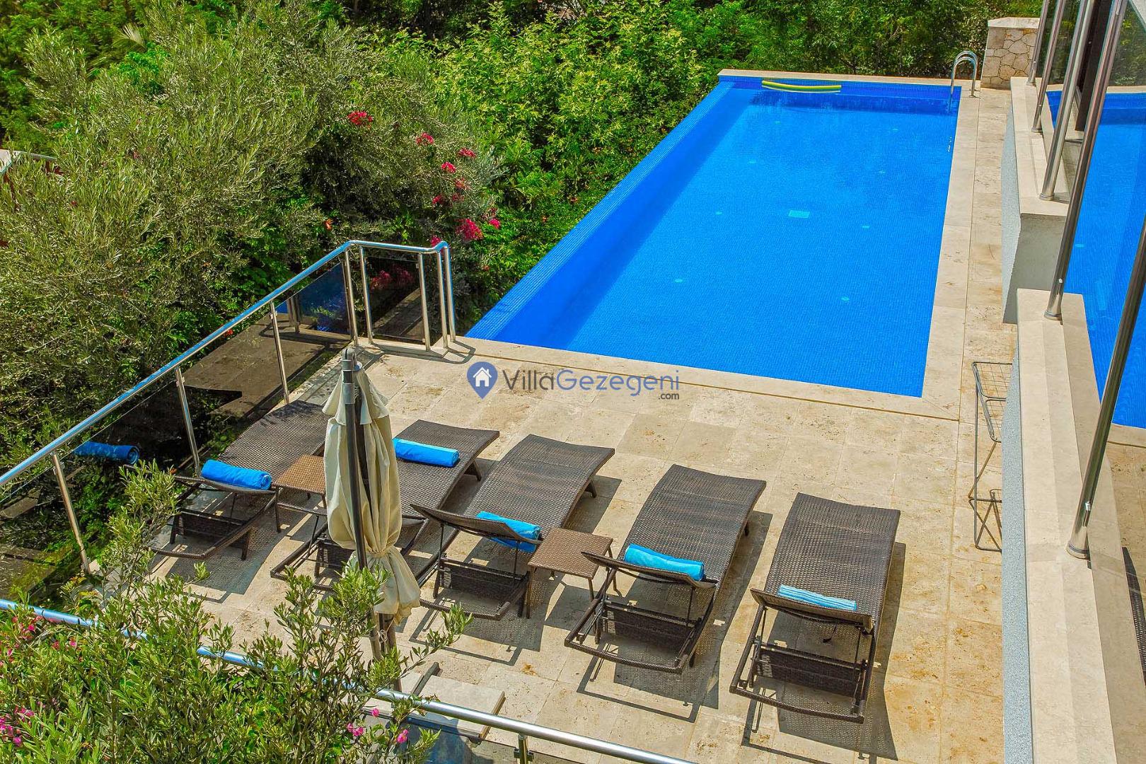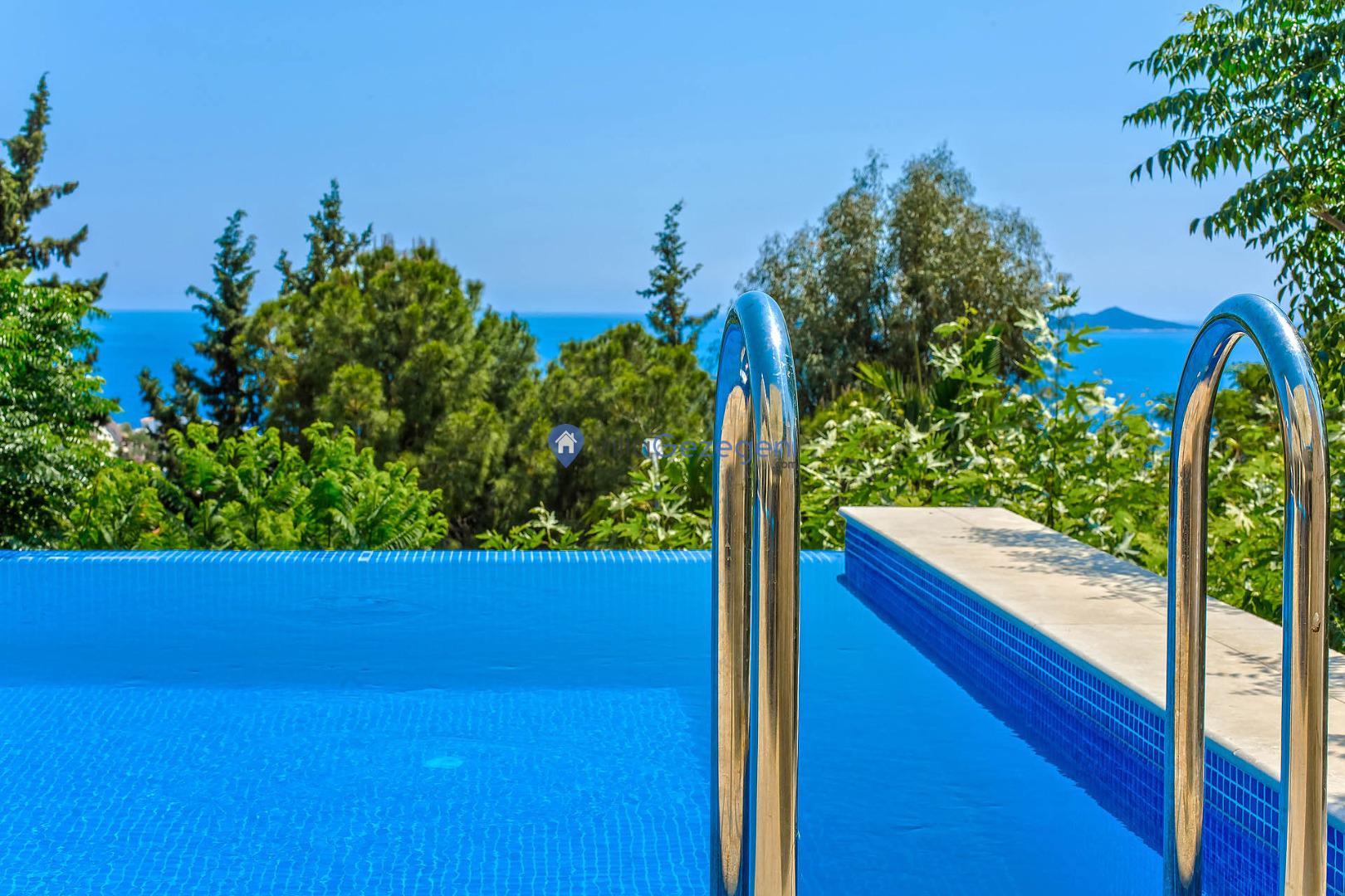 Kalkan Kalamar mevkiisinde bulunan 4 odalı 8 kişilik lüks tasarıma sahip deniz manzaralı kiralık villa