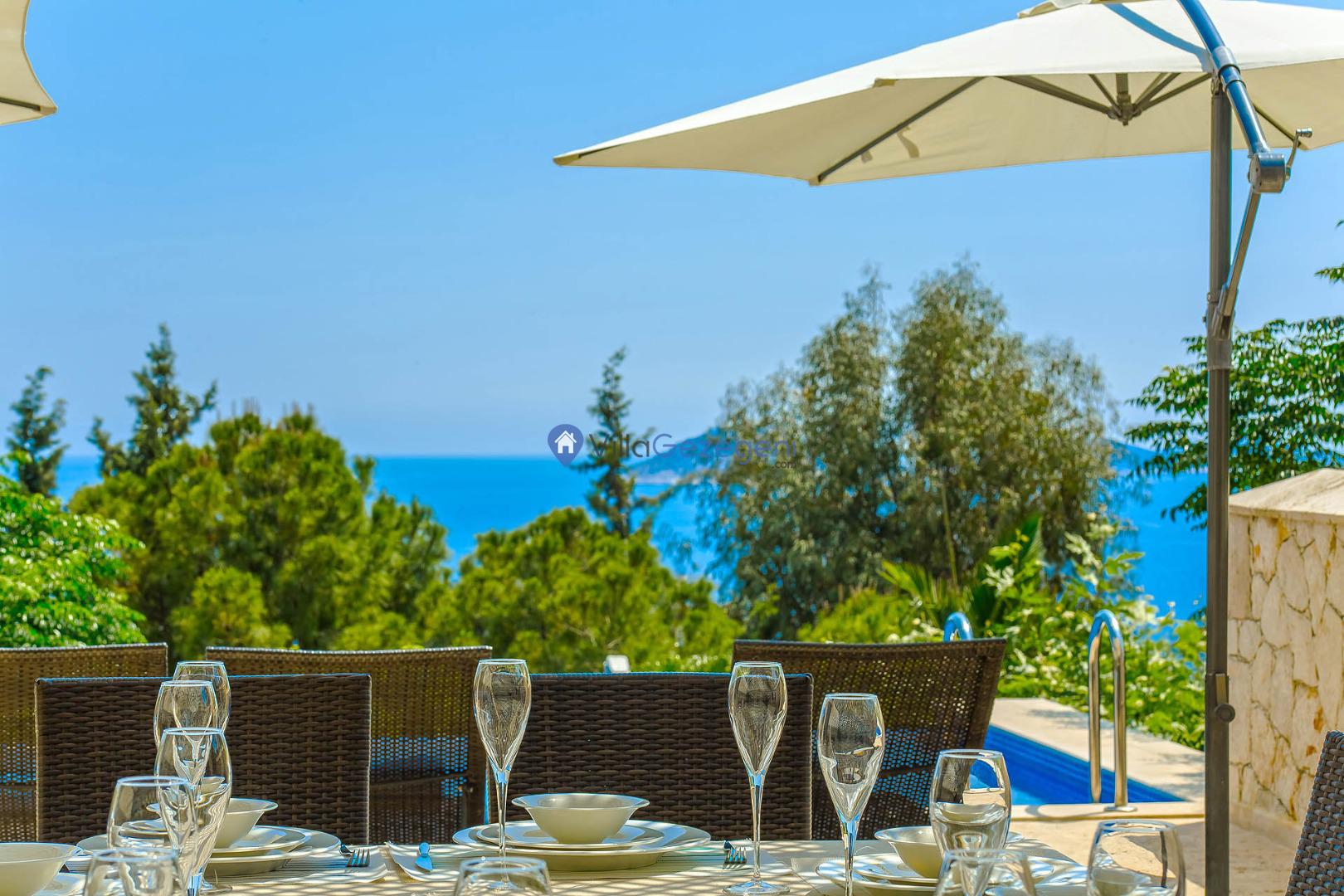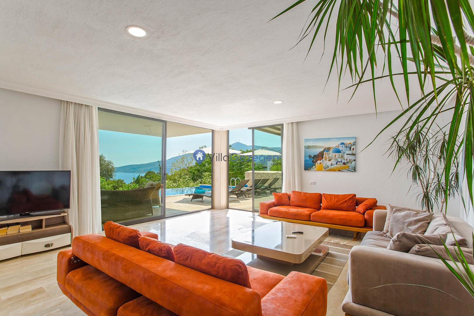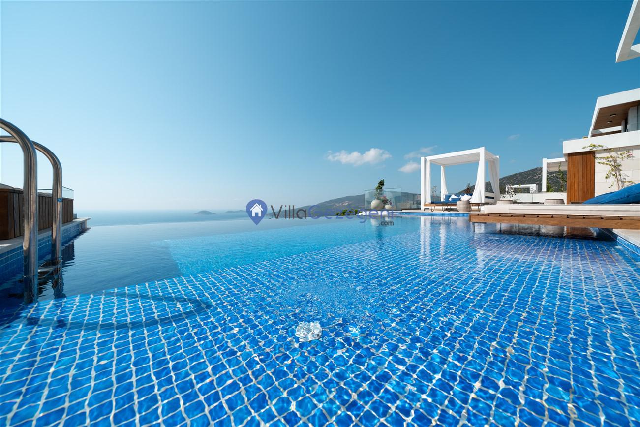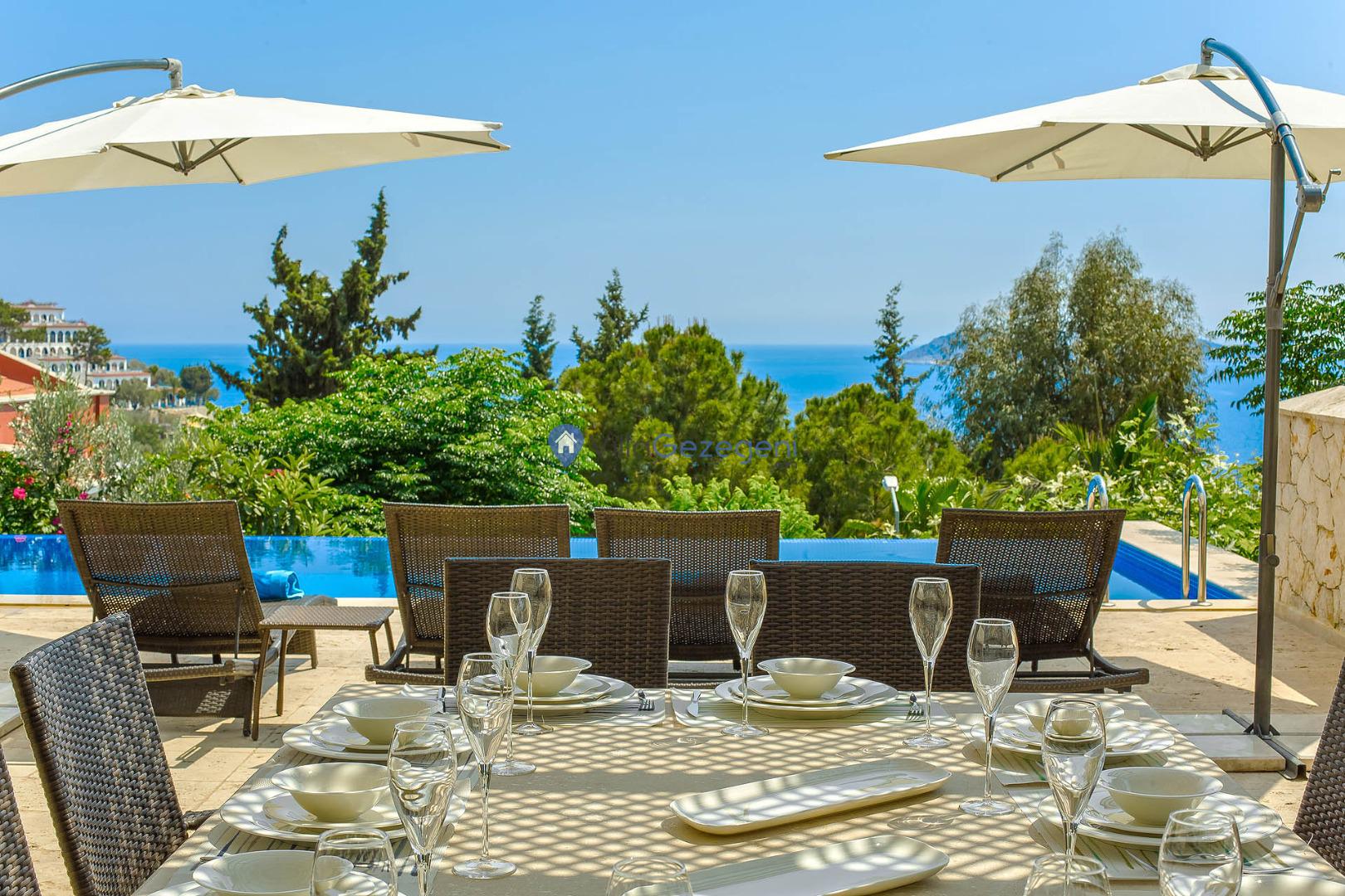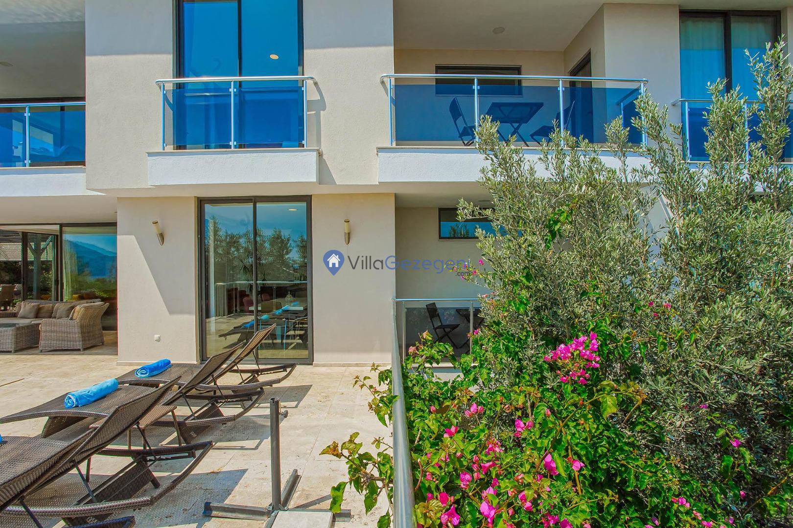 Kalkan Kalamar mevkiisinde bulunan 4 odalı 8 kişilik lüks tasarıma sahip deniz manzaralı kiralık villa