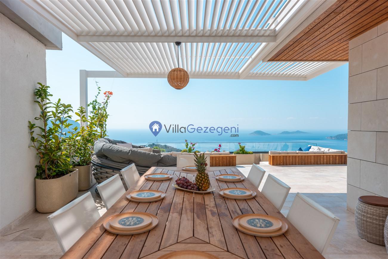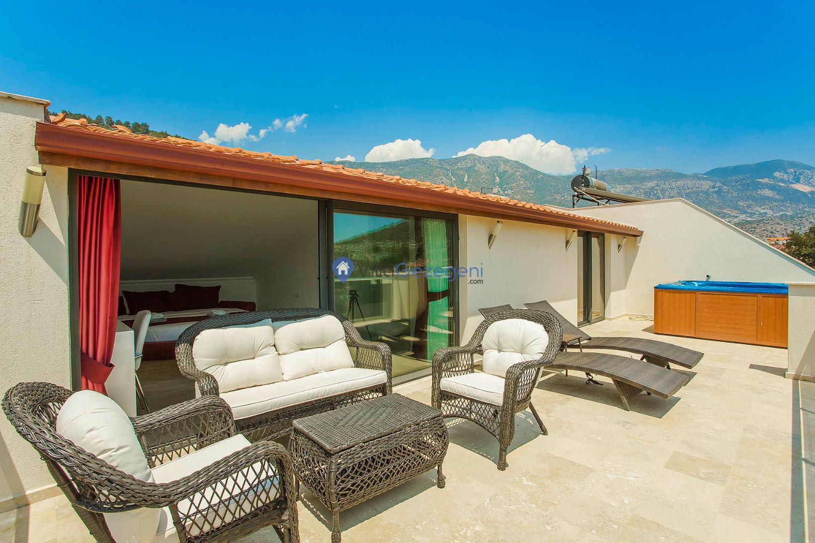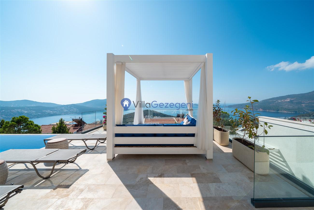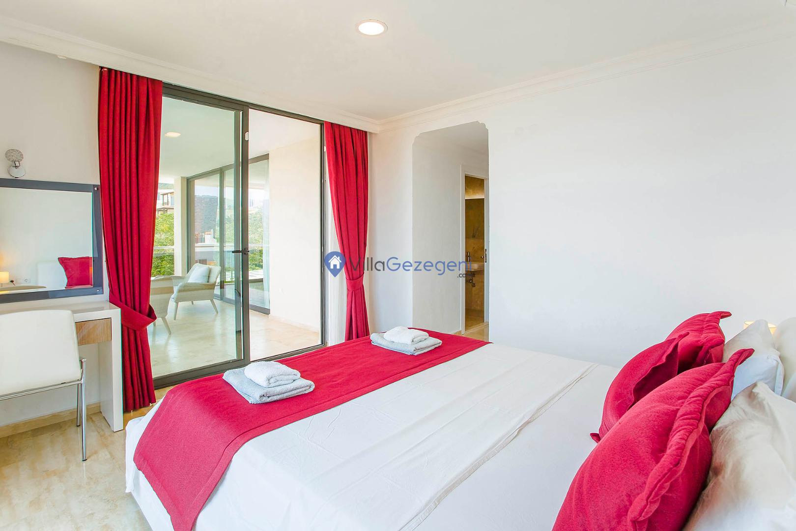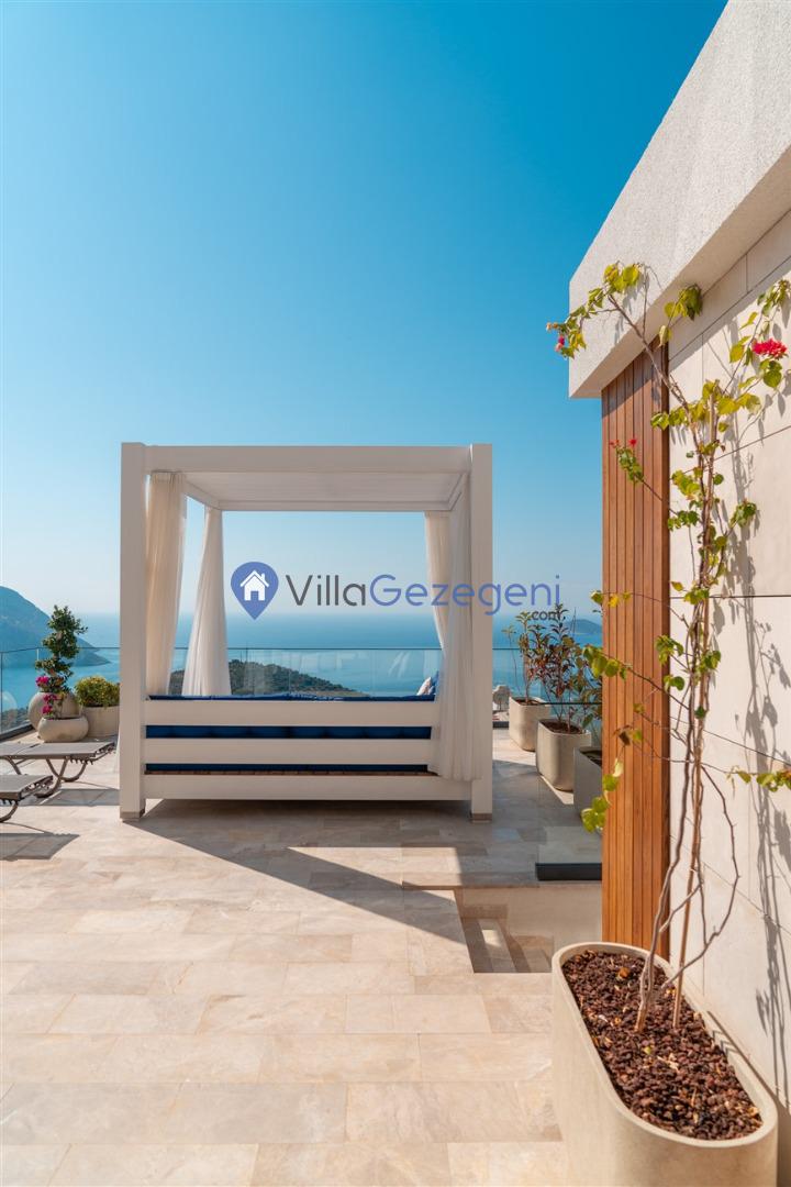 Kalkan Kalamar mevkiisinde bulunan 4 odalı 8 kişilik lüks tasarıma sahip deniz manzaralı kiralık villa
