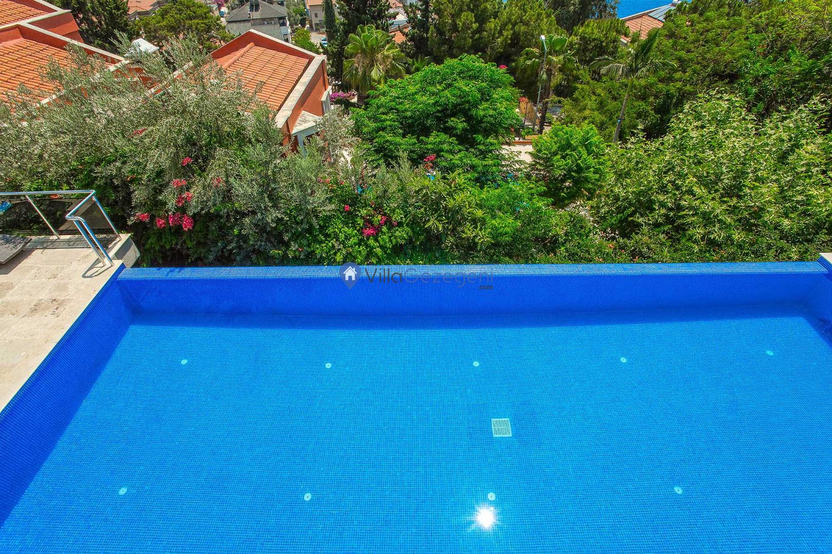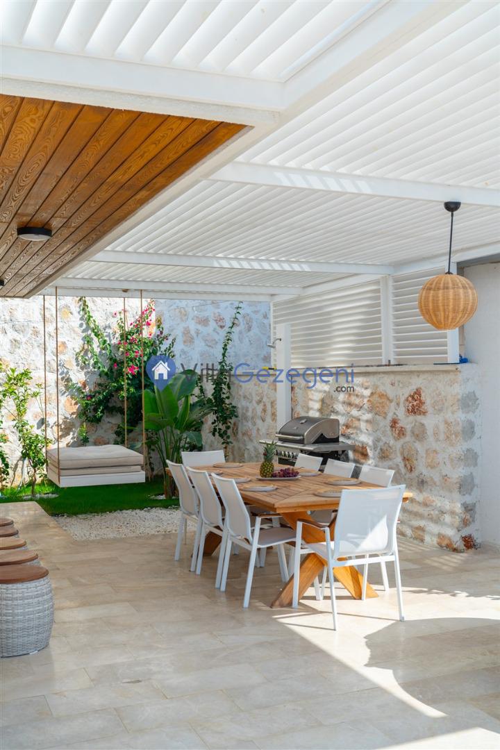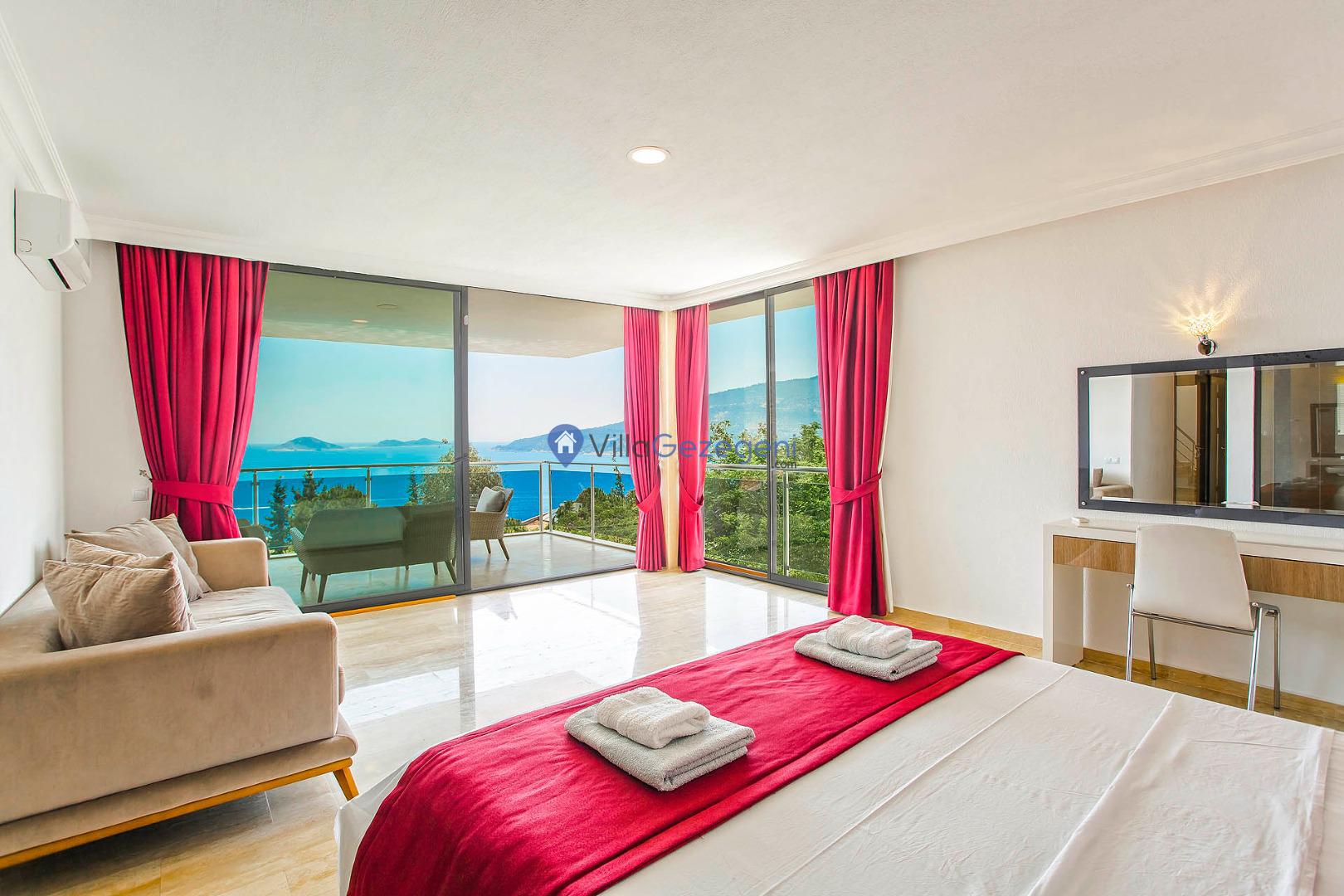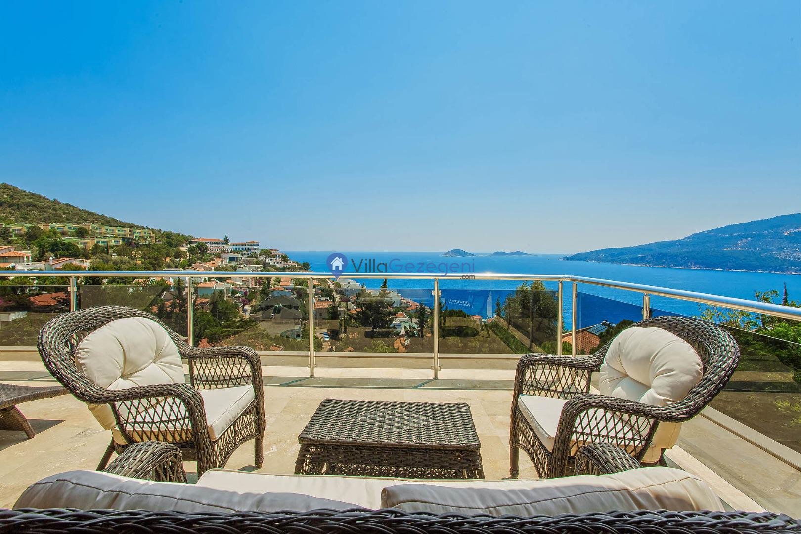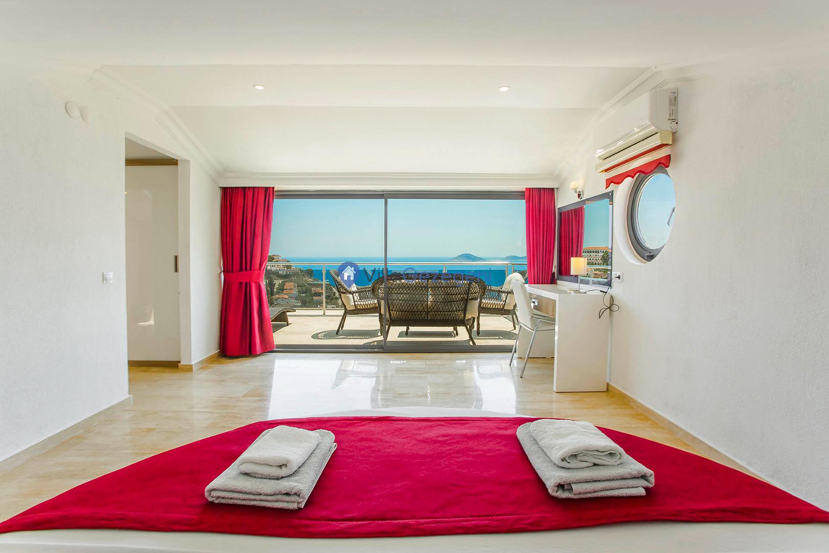 Kalkan Kalamar mevkiisinde bulunan 4 odalı 8 kişilik lüks tasarıma sahip deniz manzaralı kiralık villa