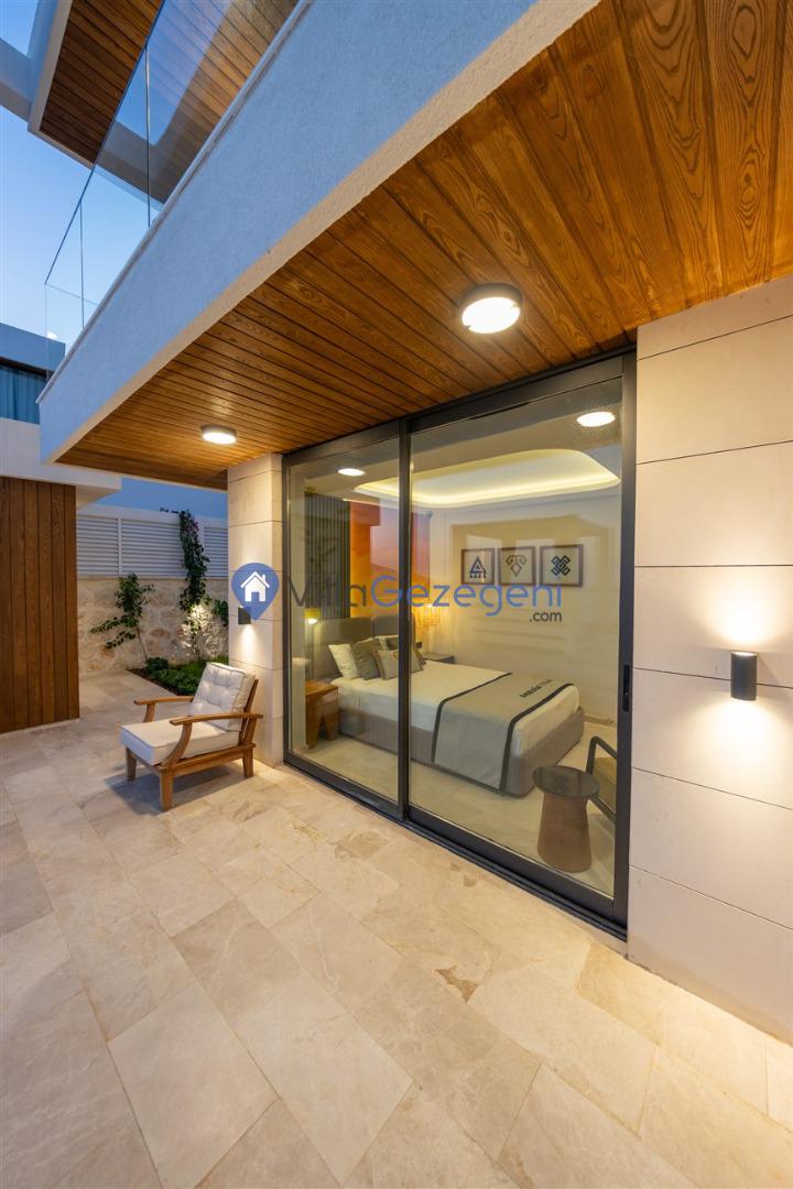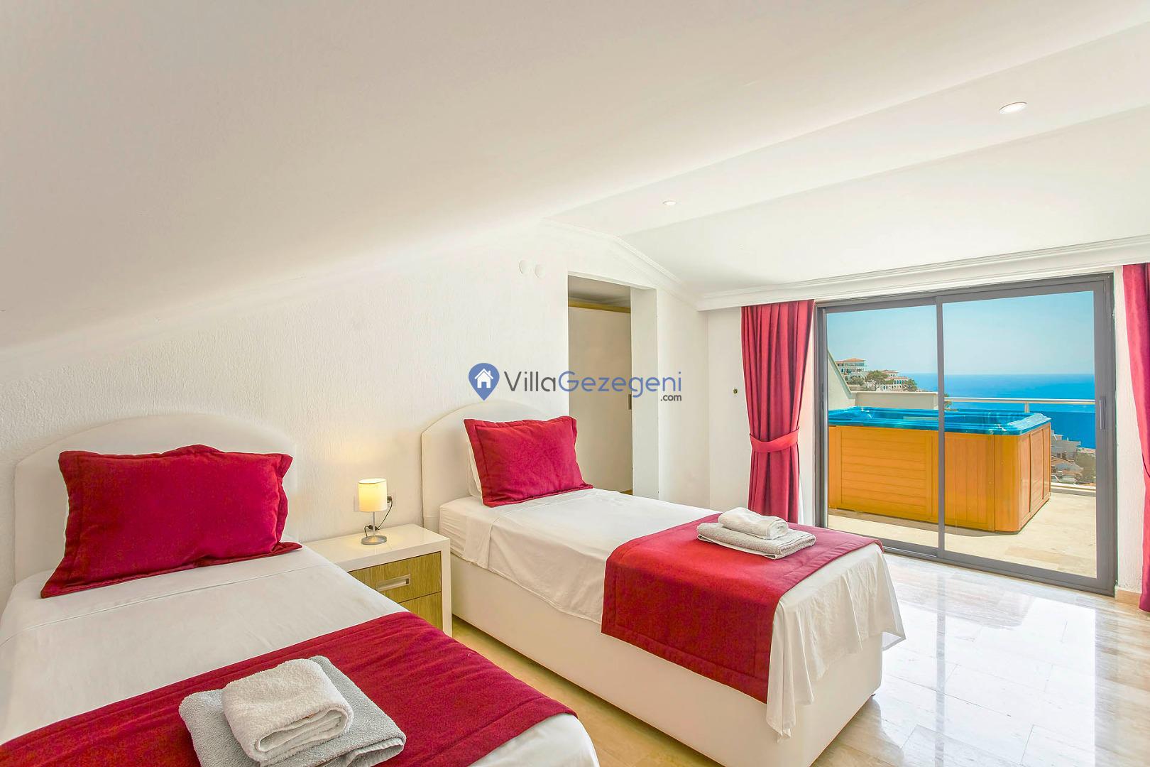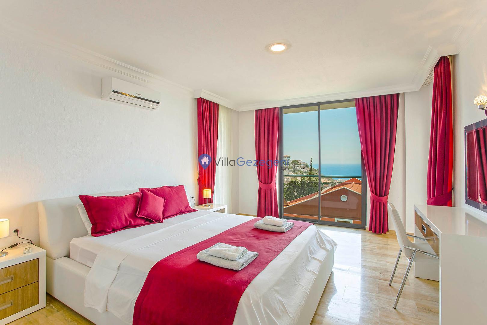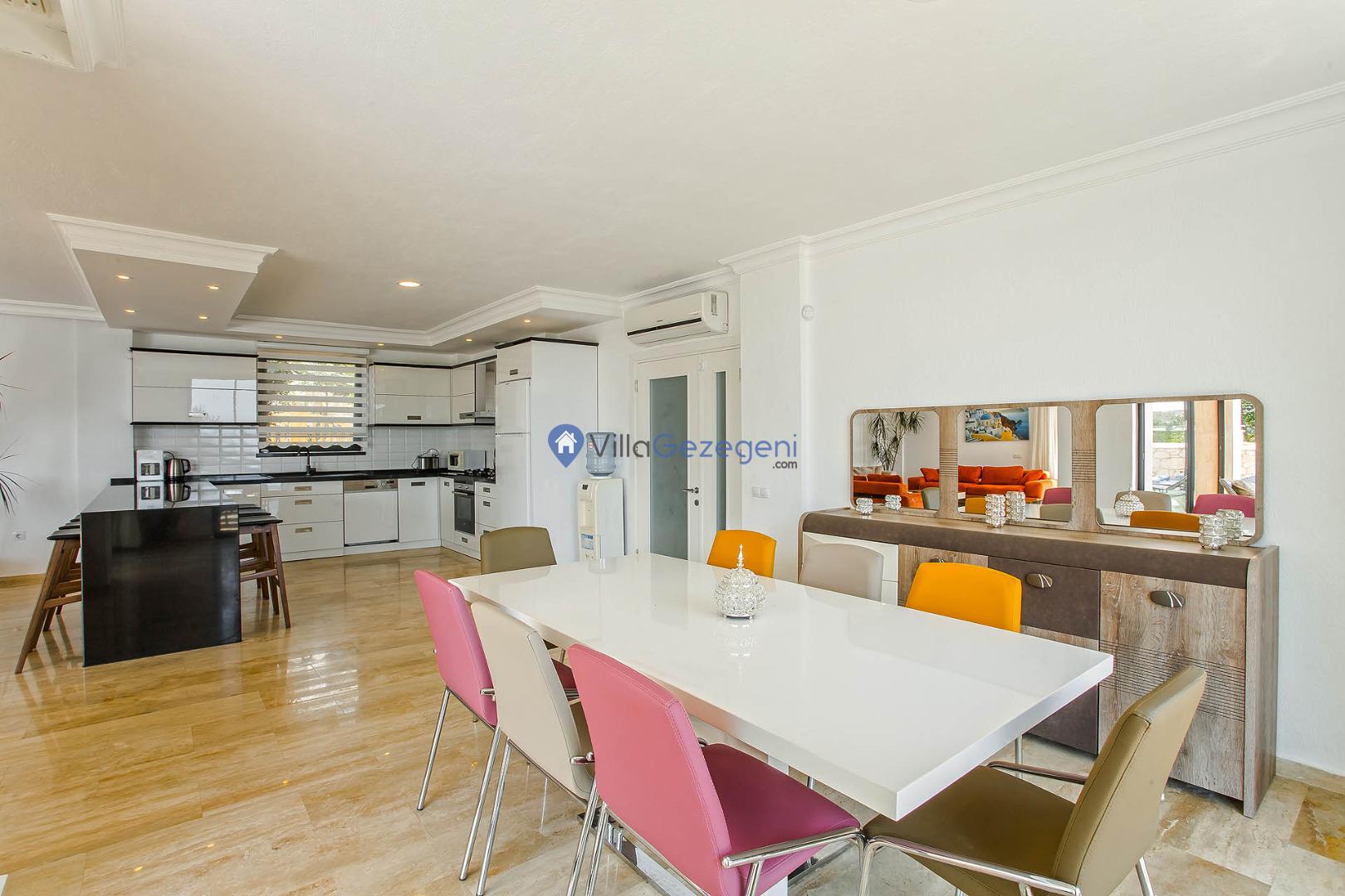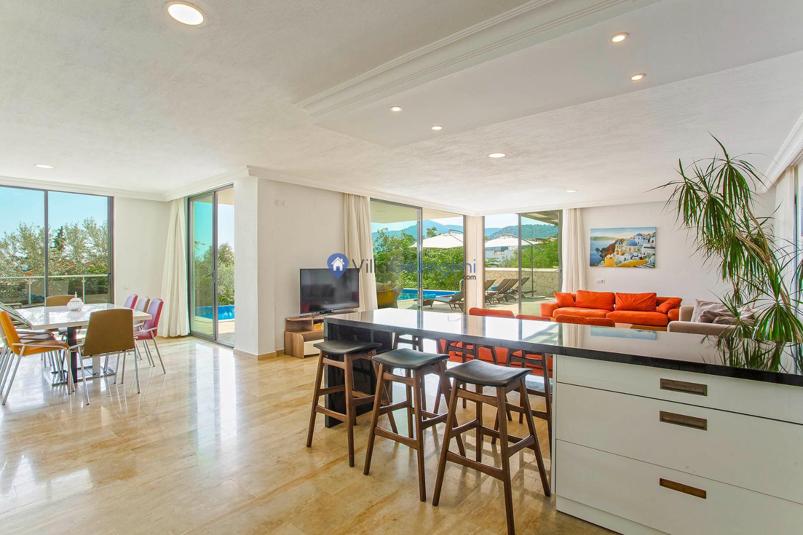 Kalkan Kalamar mevkiisinde bulunan 4 odalı 8 kişilik lüks tasarıma sahip deniz manzaralı kiralık villa