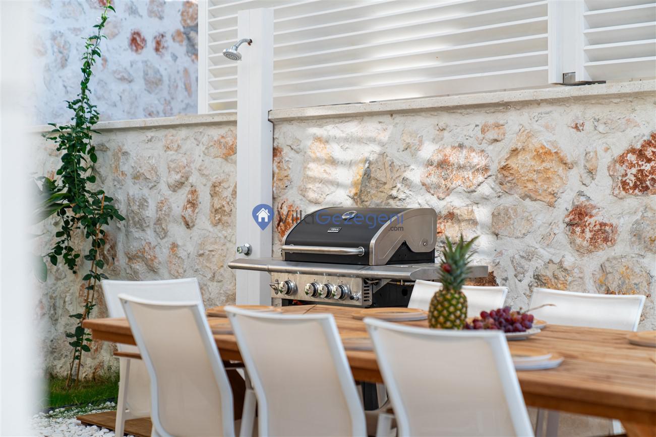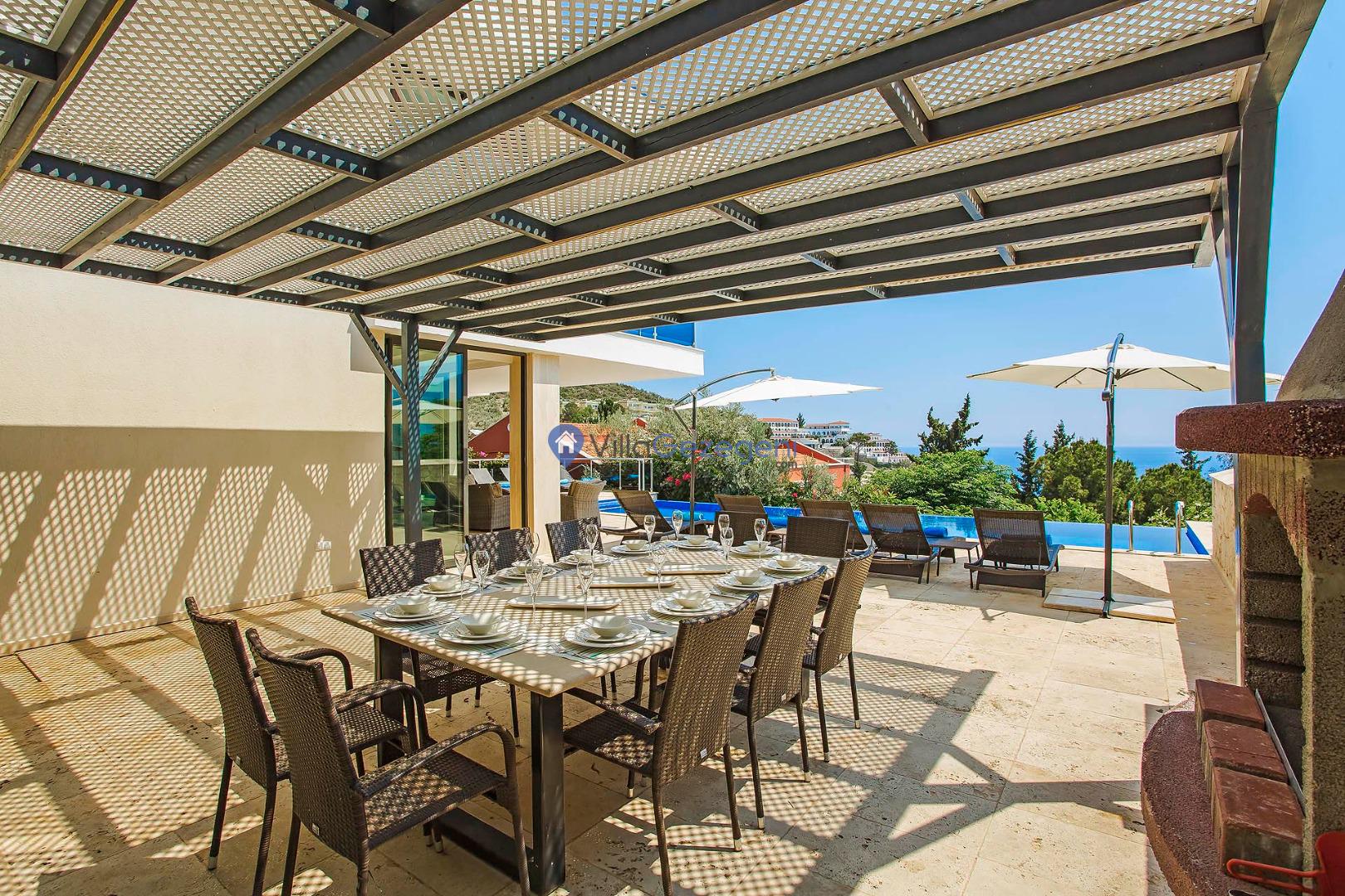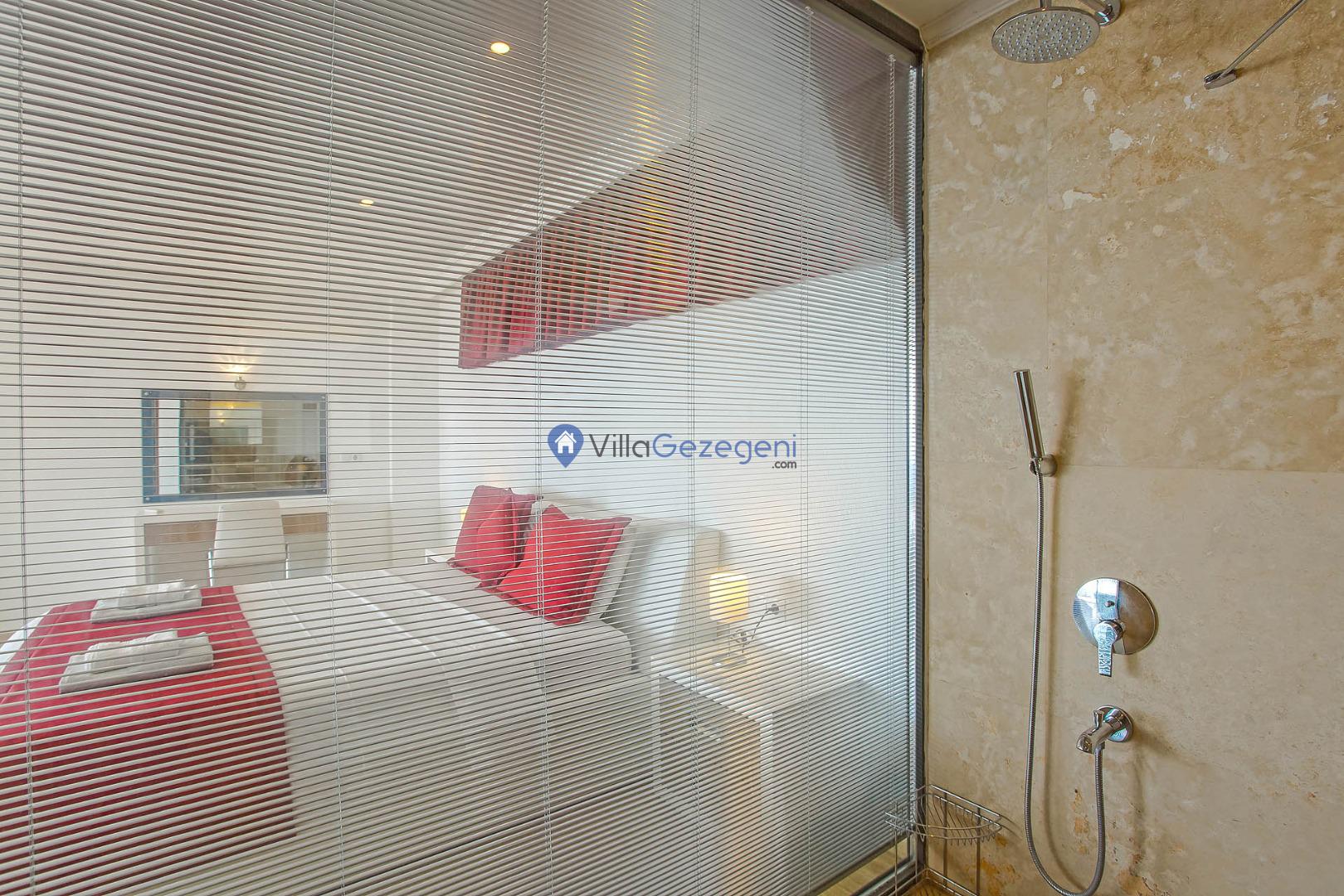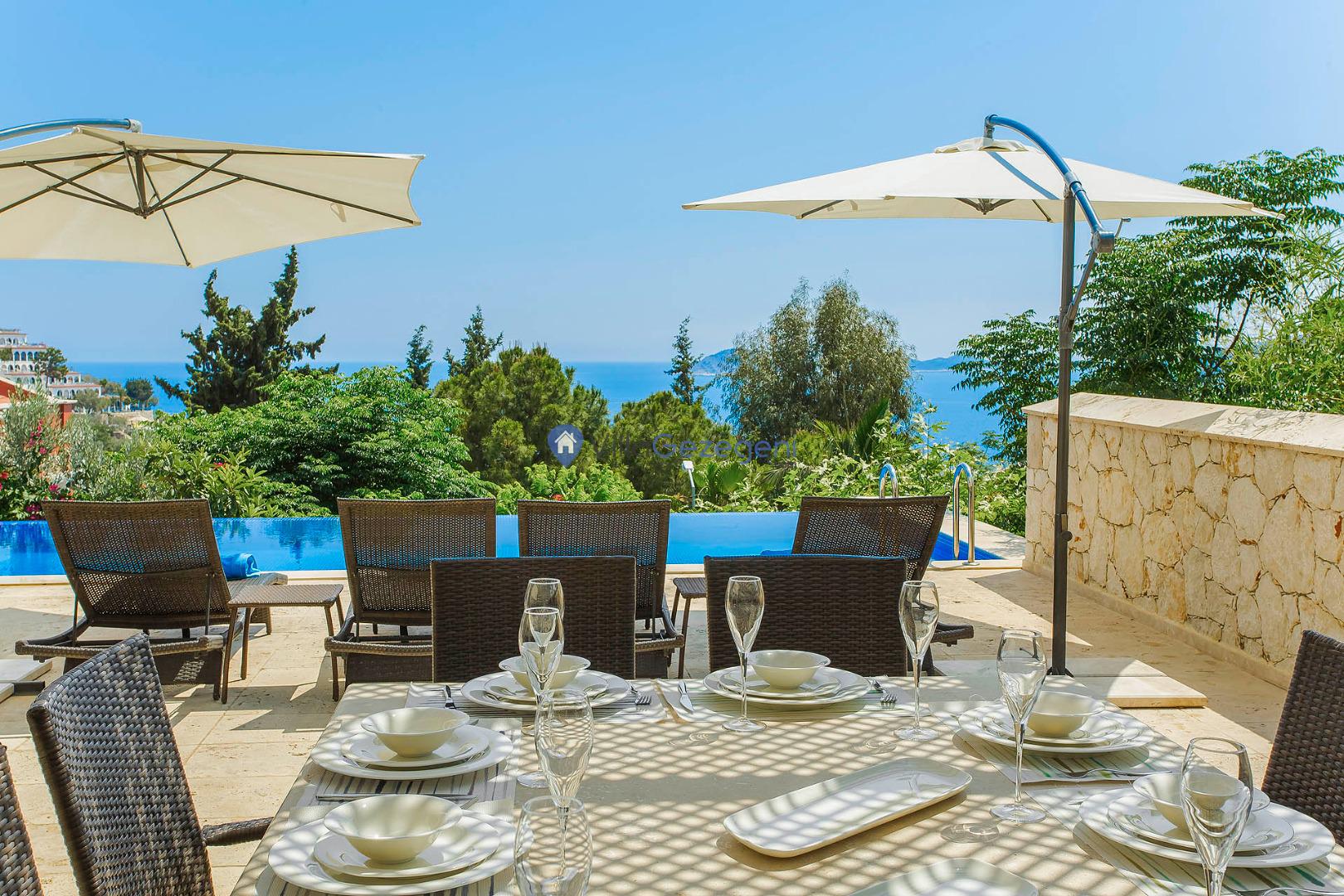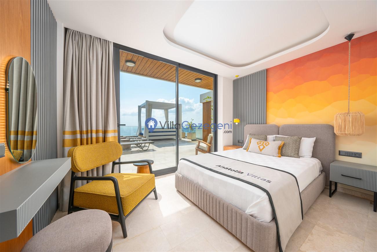 Kalkan Kalamar mevkiisinde bulunan 4 odalı 8 kişilik lüks tasarıma sahip deniz manzaralı kiralık villa