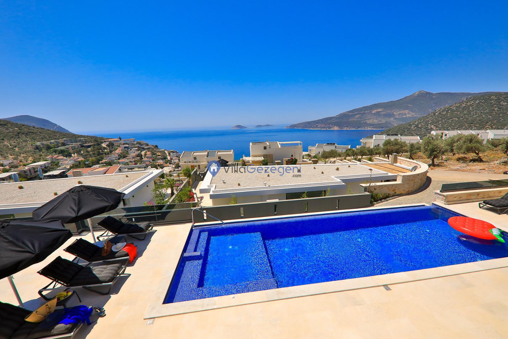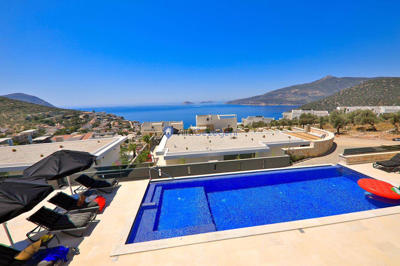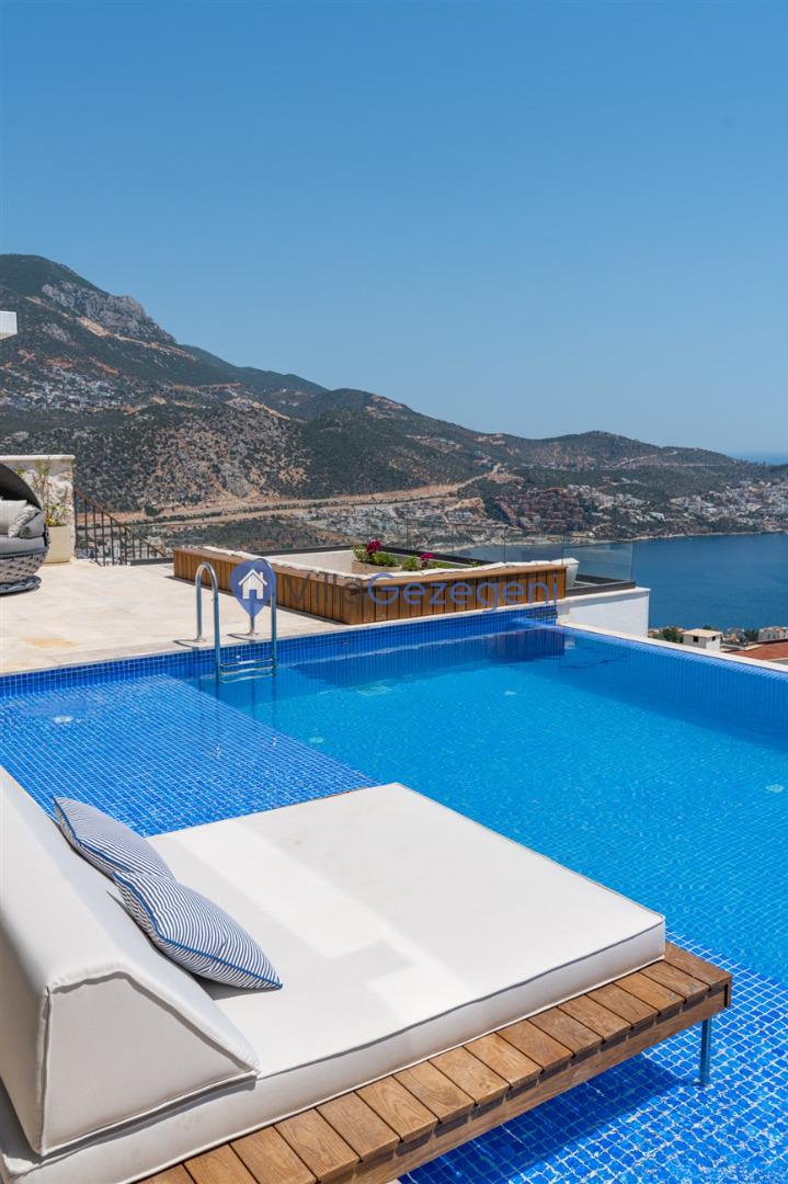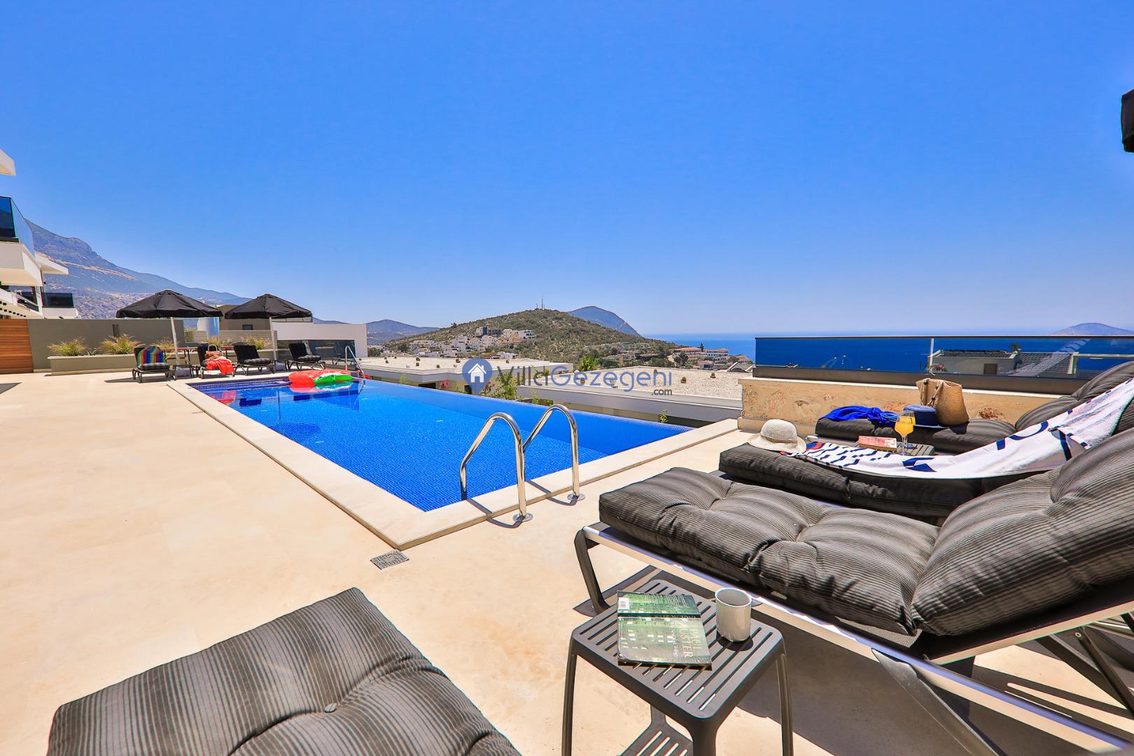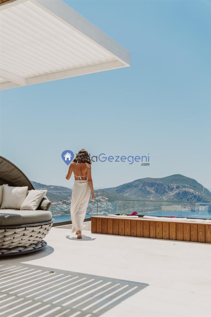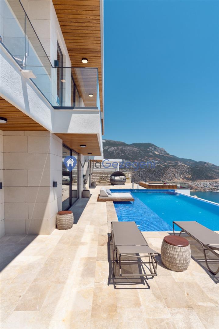 Kalkan Kalamar mevkiisinde bulunan 4 odalı 8 kişilik lüks tasarıma sahip deniz manzaralı kiralık villa