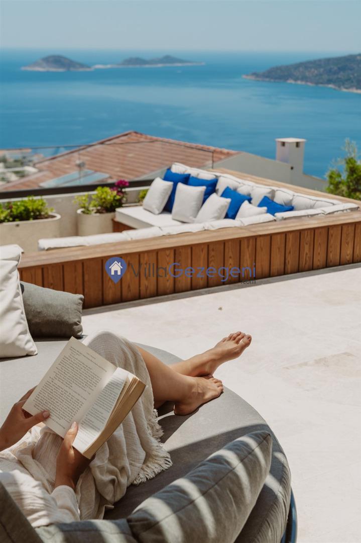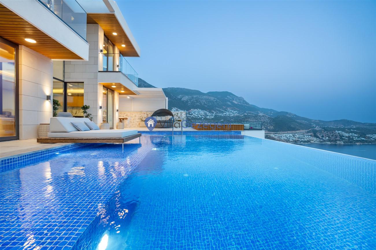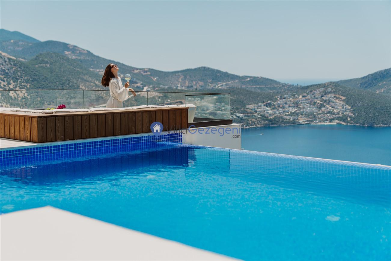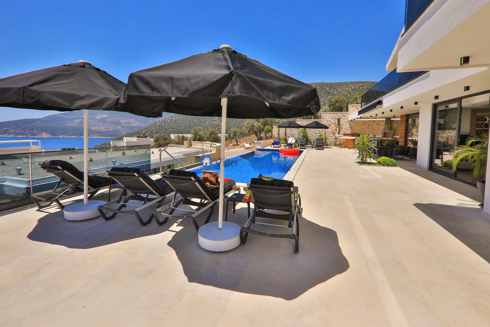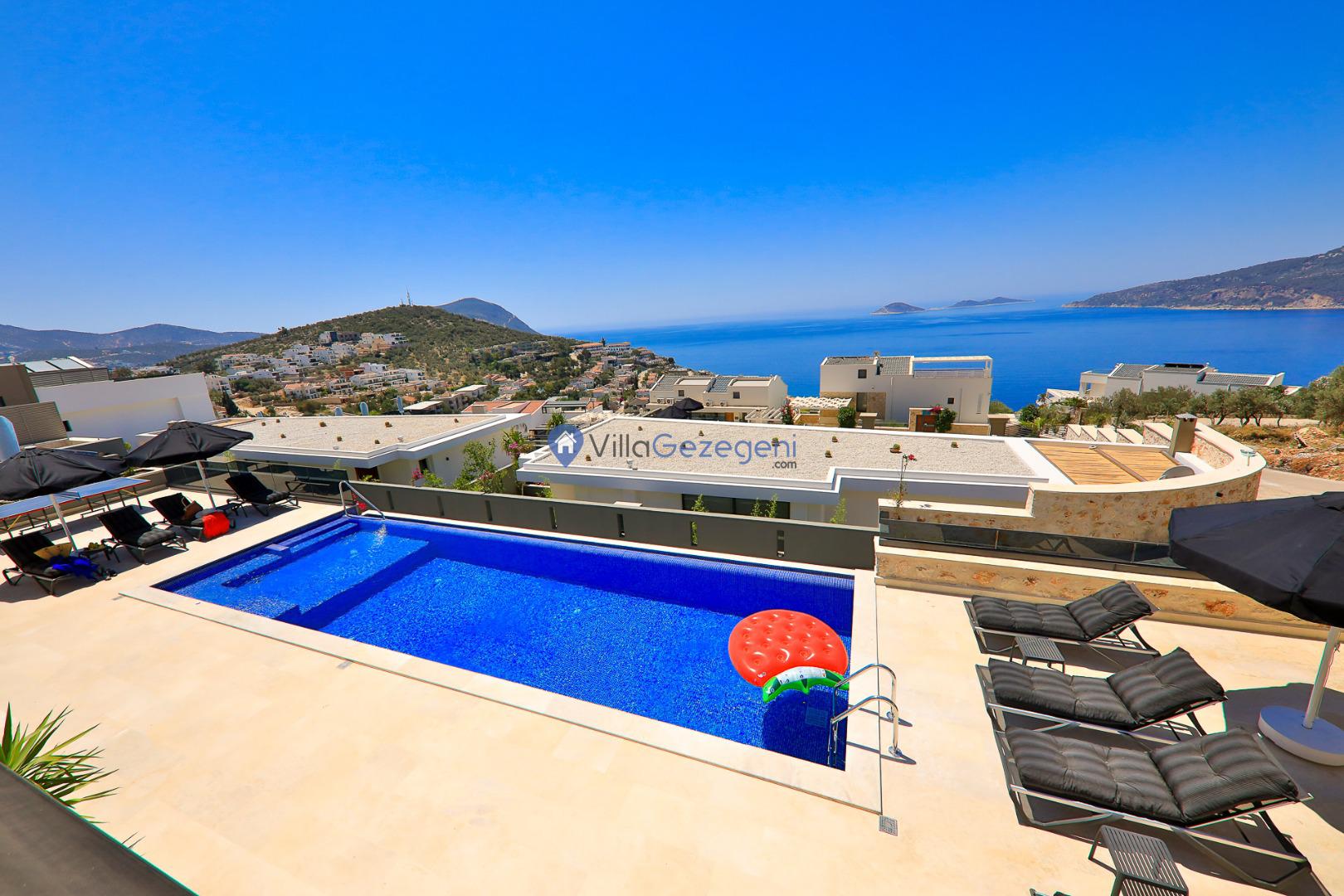 Kalkan Kalamar mevkiisinde bulunan 4 odalı 8 kişilik lüks tasarıma sahip deniz manzaralı kiralık villa