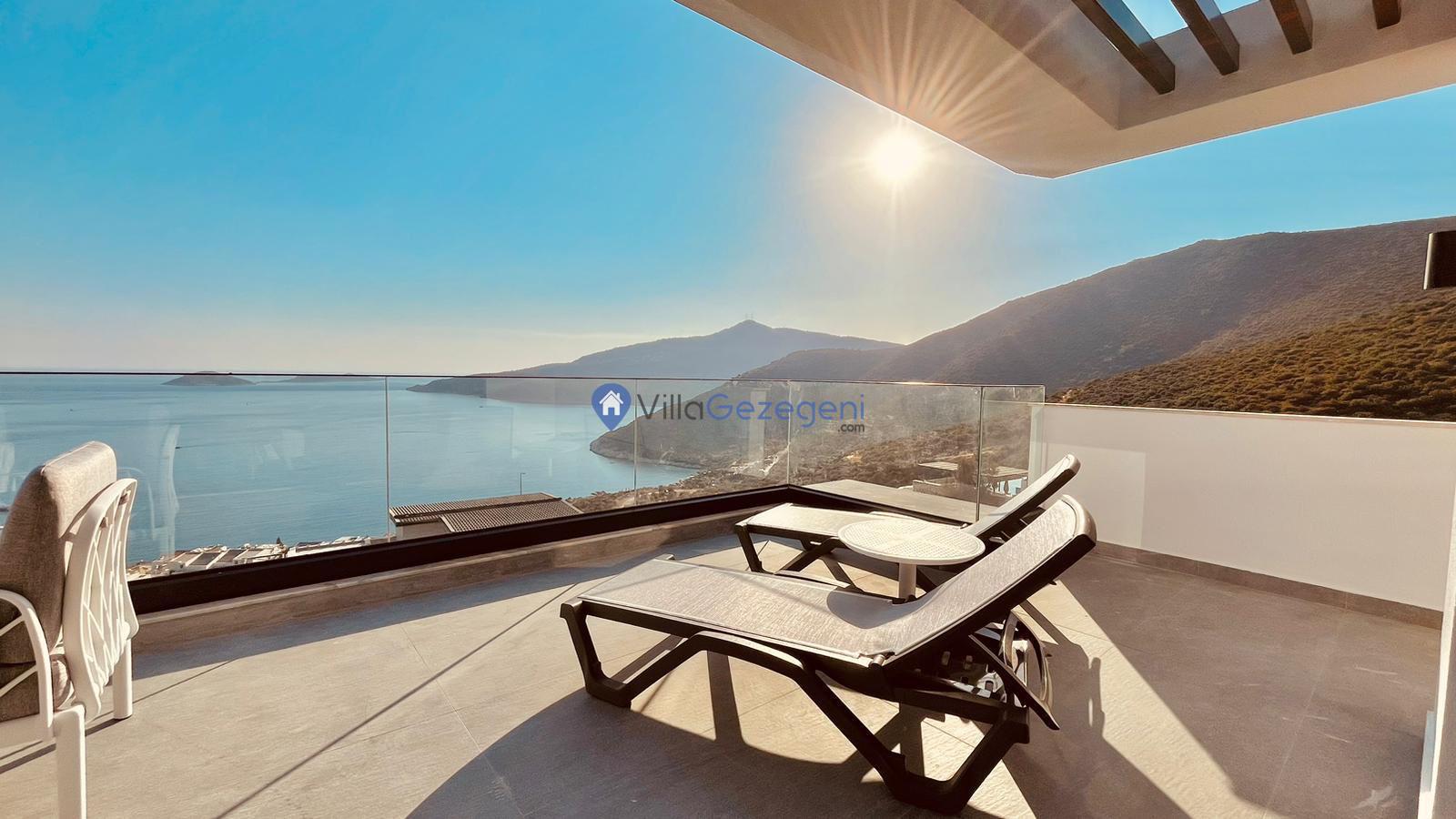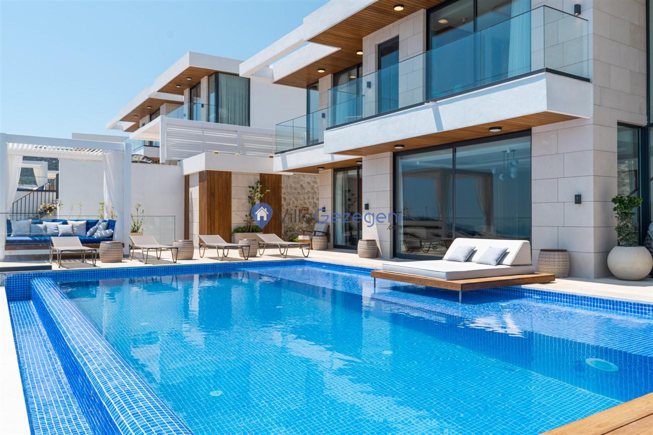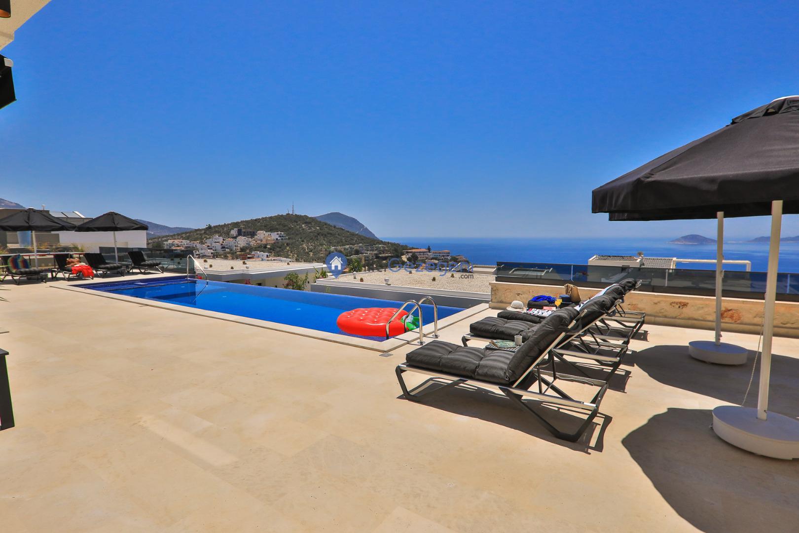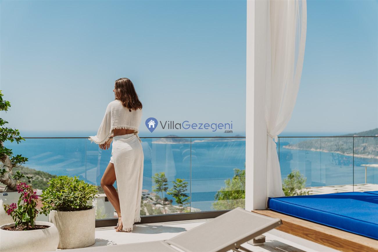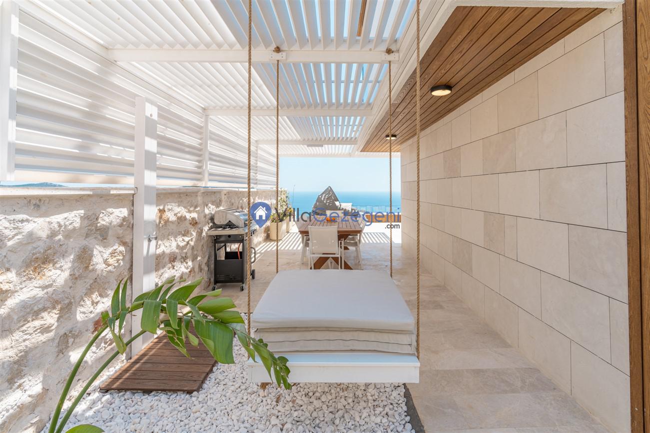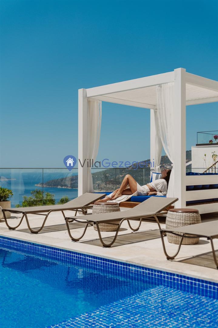 Kalkan Kalamar mevkiisinde bulunan 4 odalı 8 kişilik lüks tasarıma sahip deniz manzaralı kiralık villa
