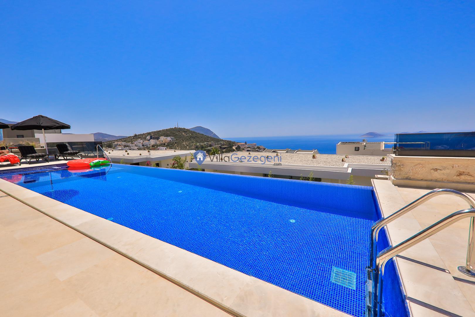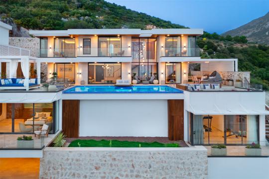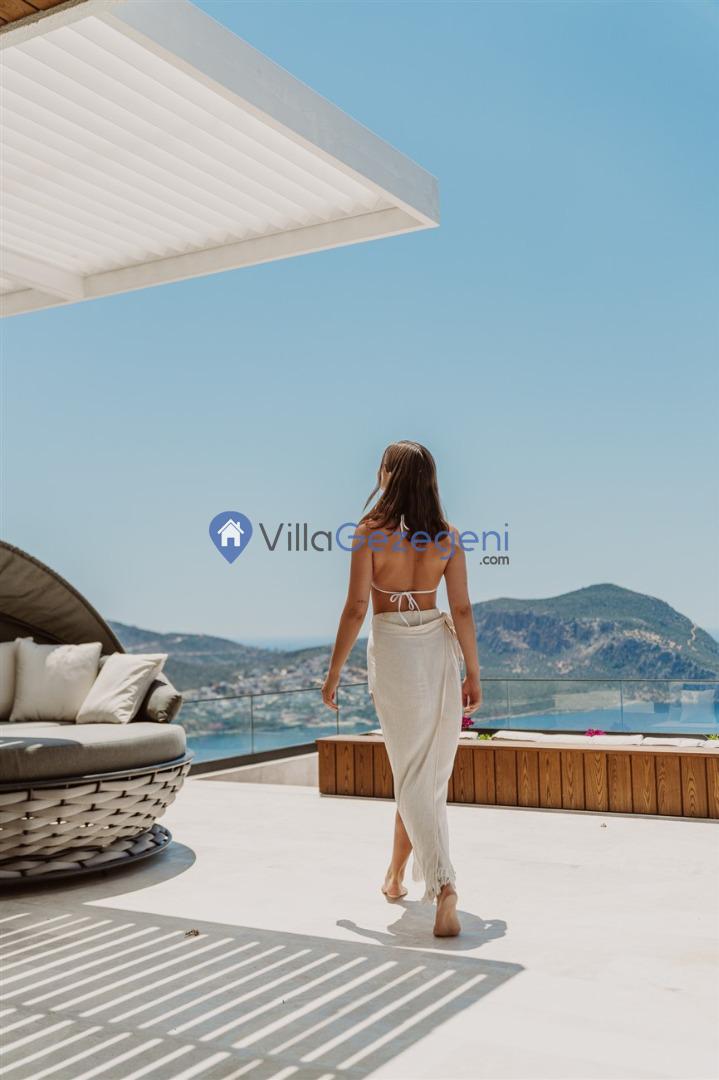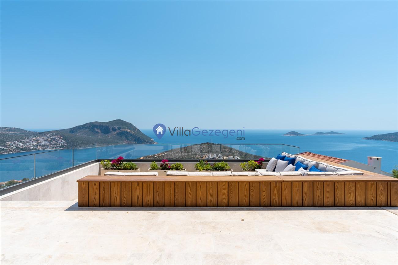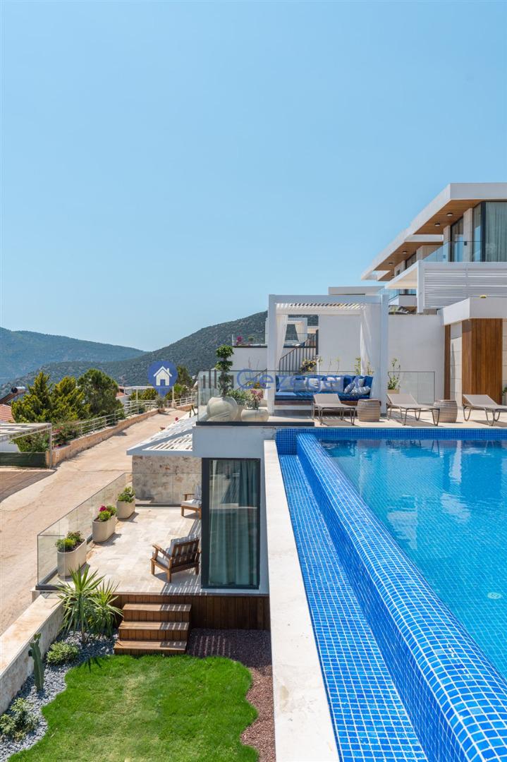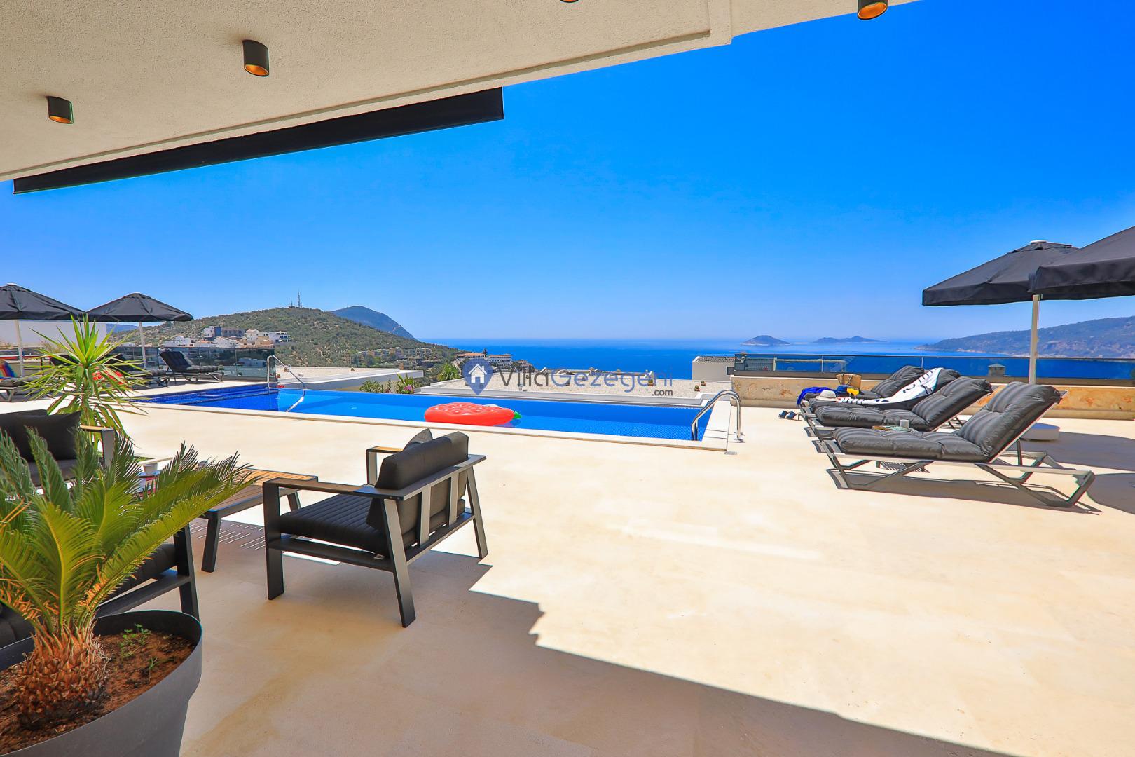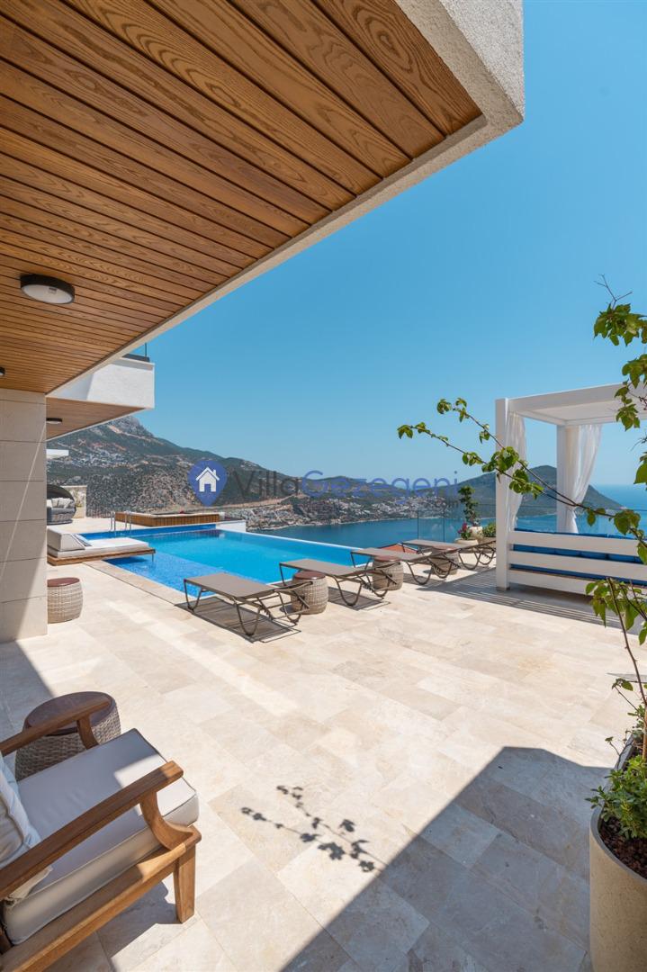 Kalkan Kalamar mevkiisinde bulunan 4 odalı 8 kişilik lüks tasarıma sahip deniz manzaralı kiralık villa
