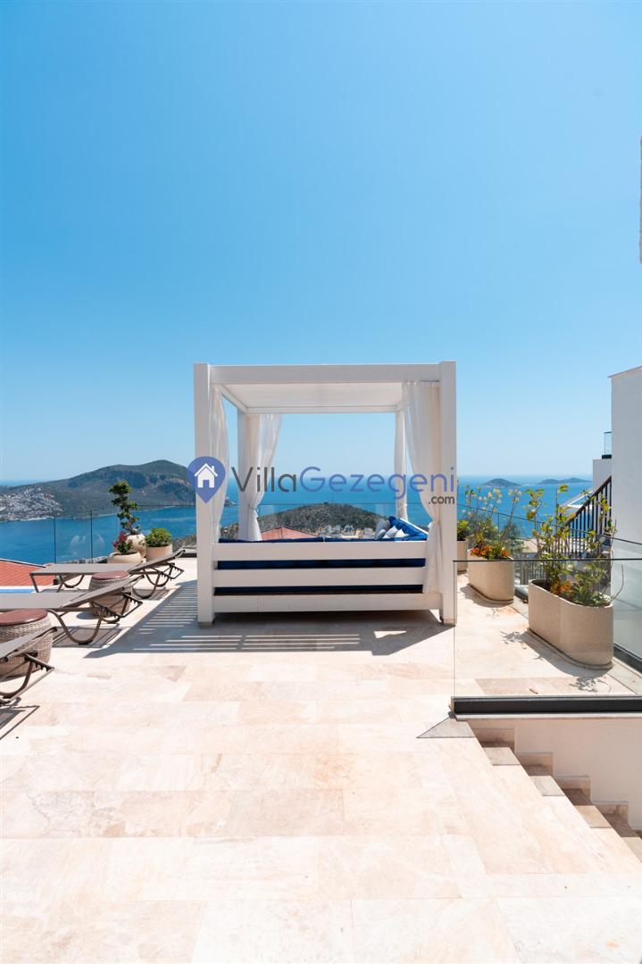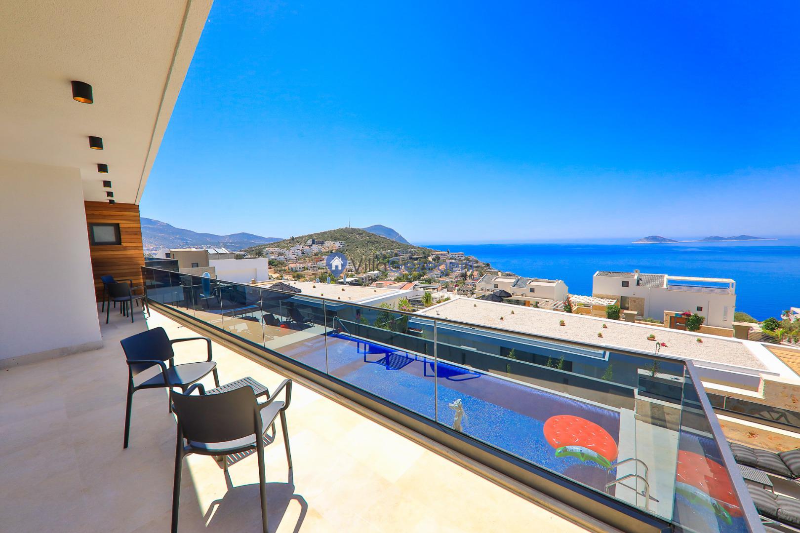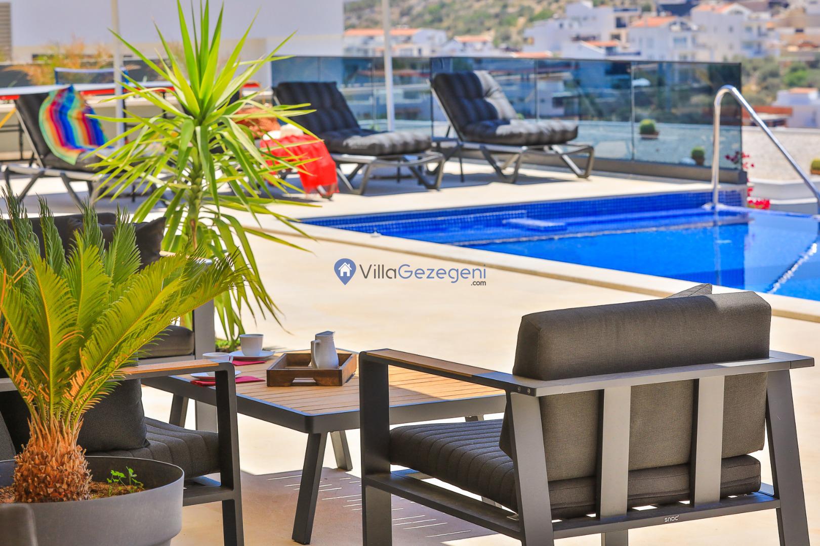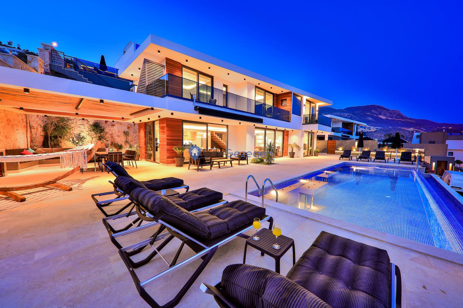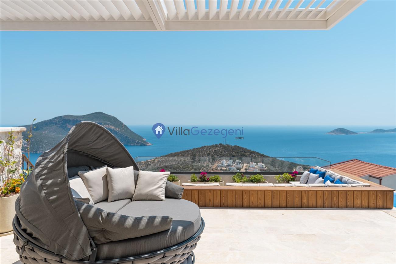 Kalkan Kalamar mevkiisinde bulunan 4 odalı 8 kişilik lüks tasarıma sahip deniz manzaralı kiralık villa