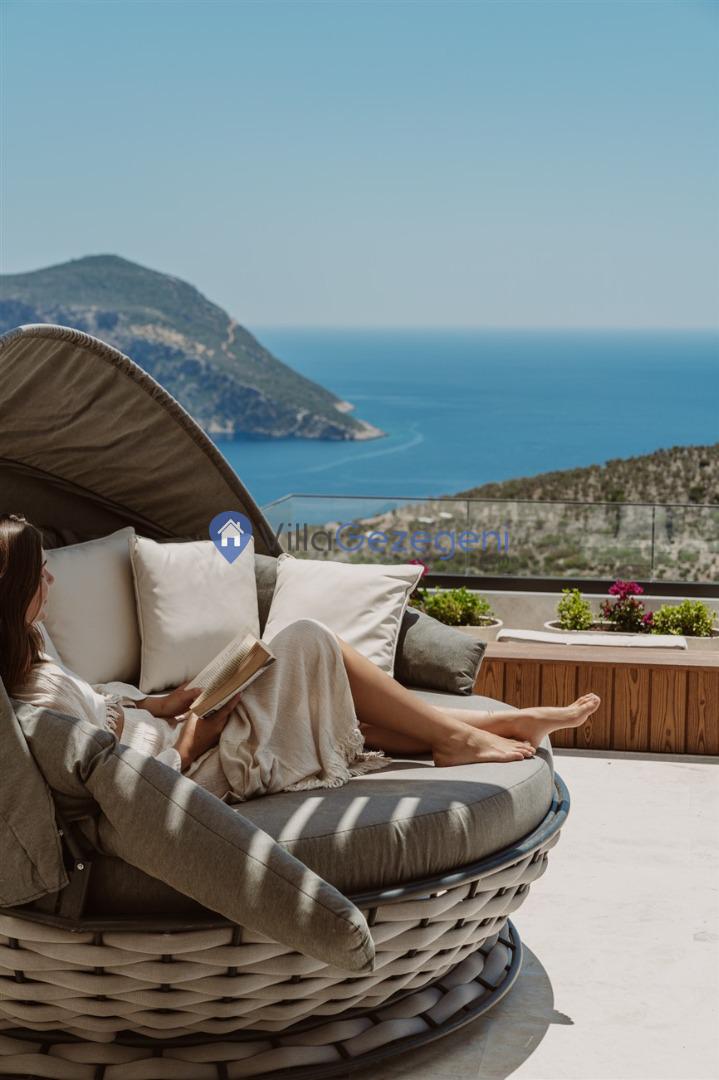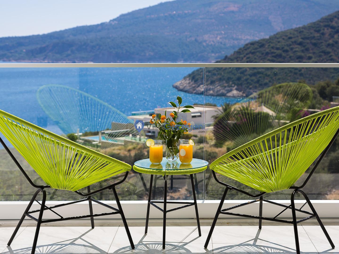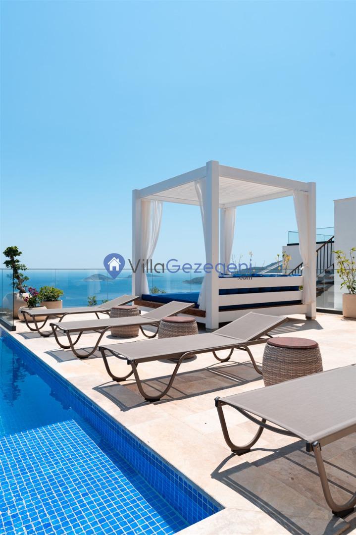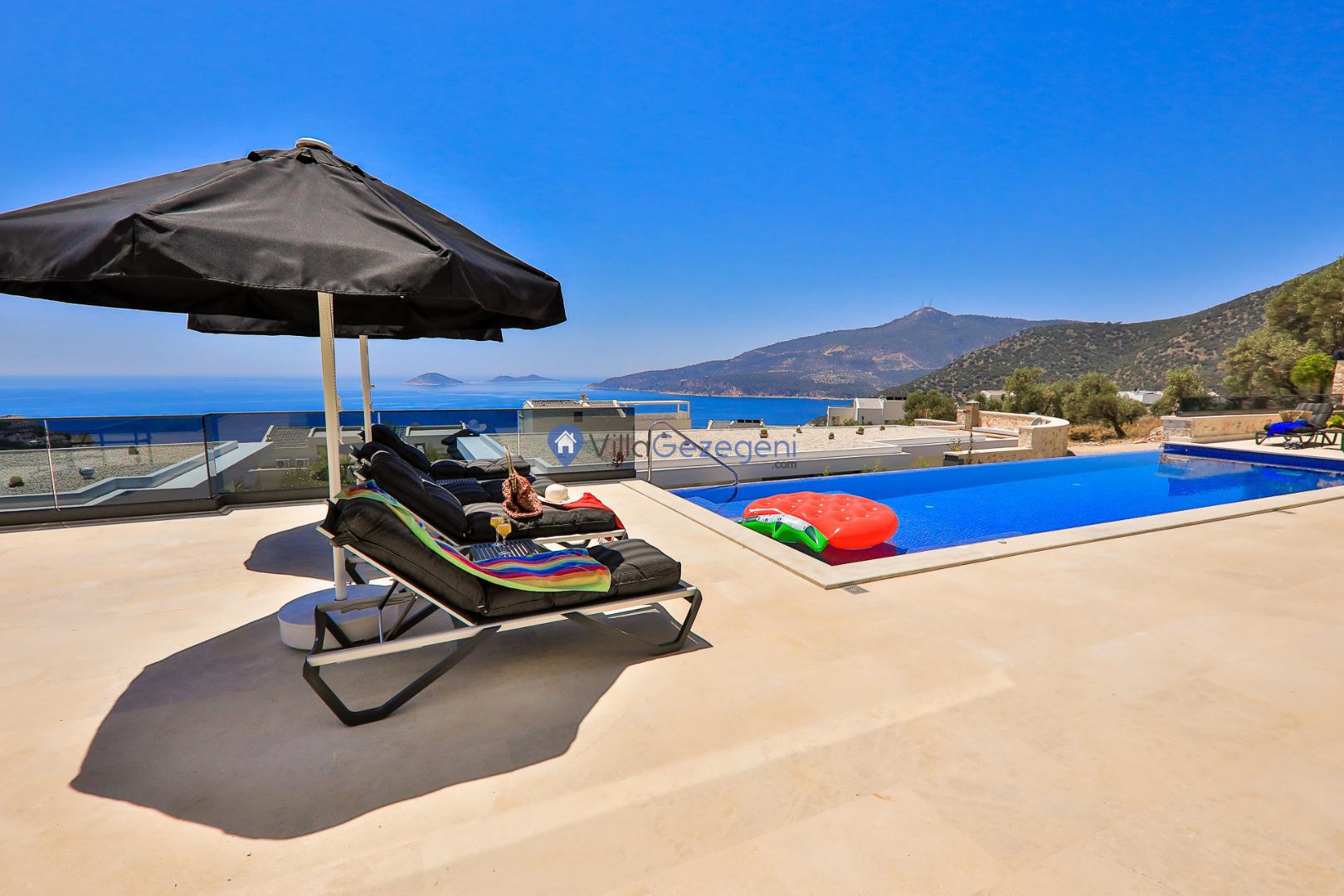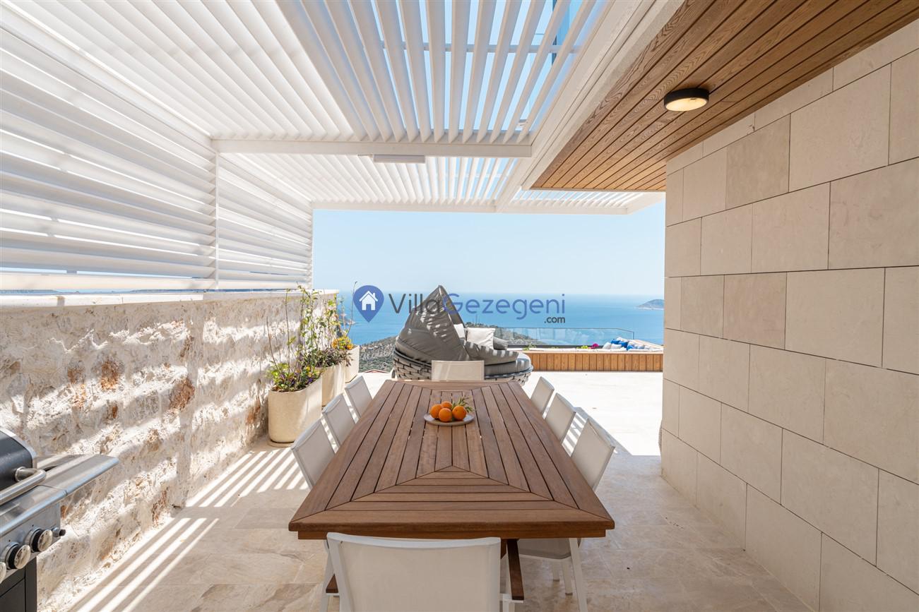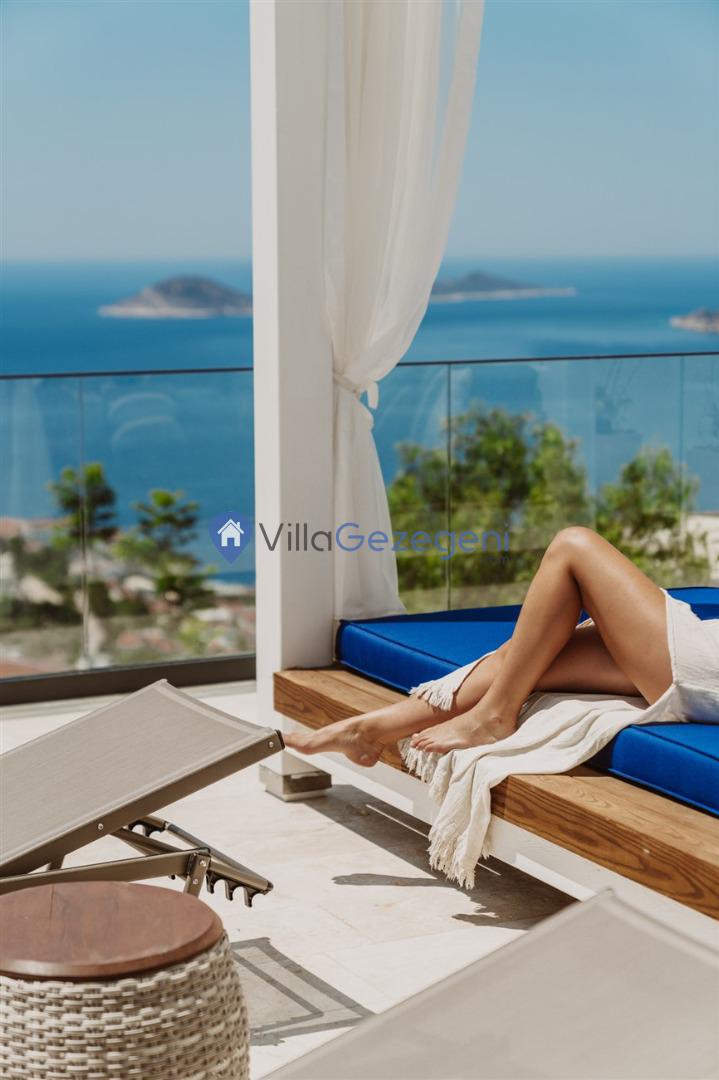 Kalkan Kalamar mevkiisinde bulunan 4 odalı 8 kişilik lüks tasarıma sahip deniz manzaralı kiralık villa