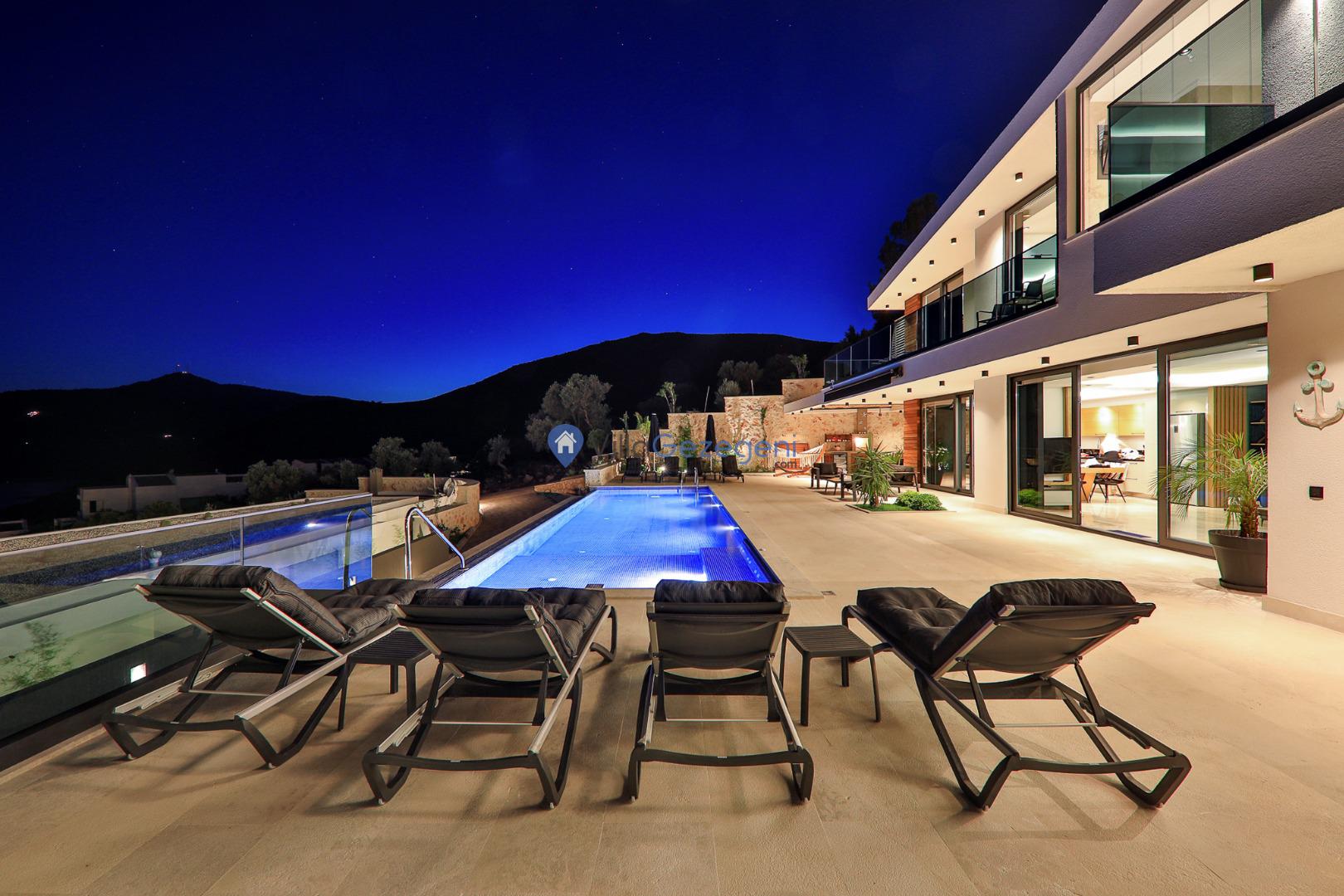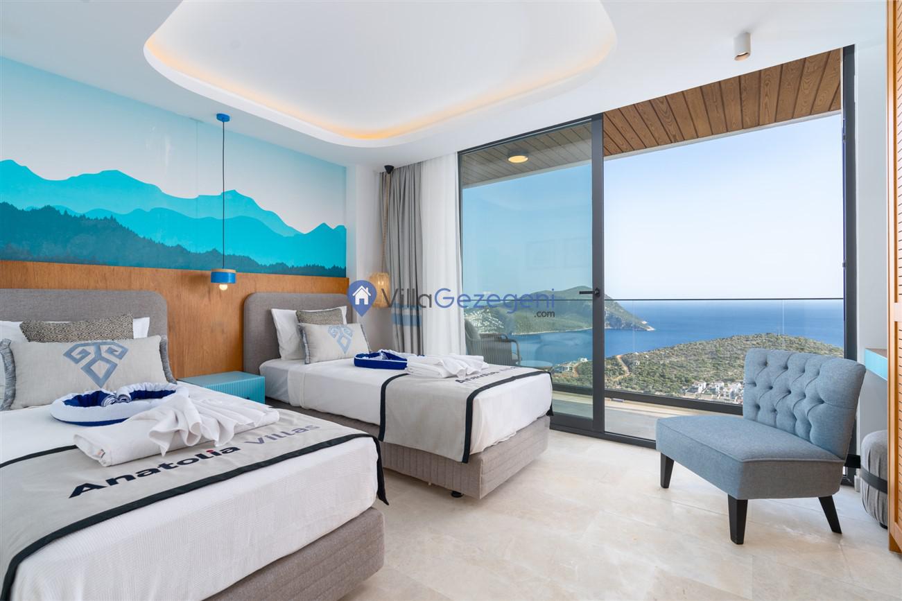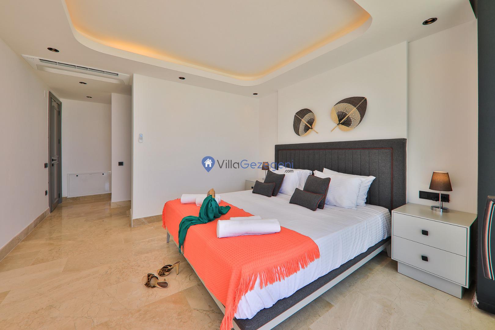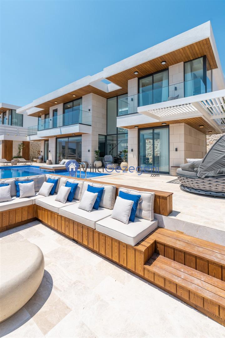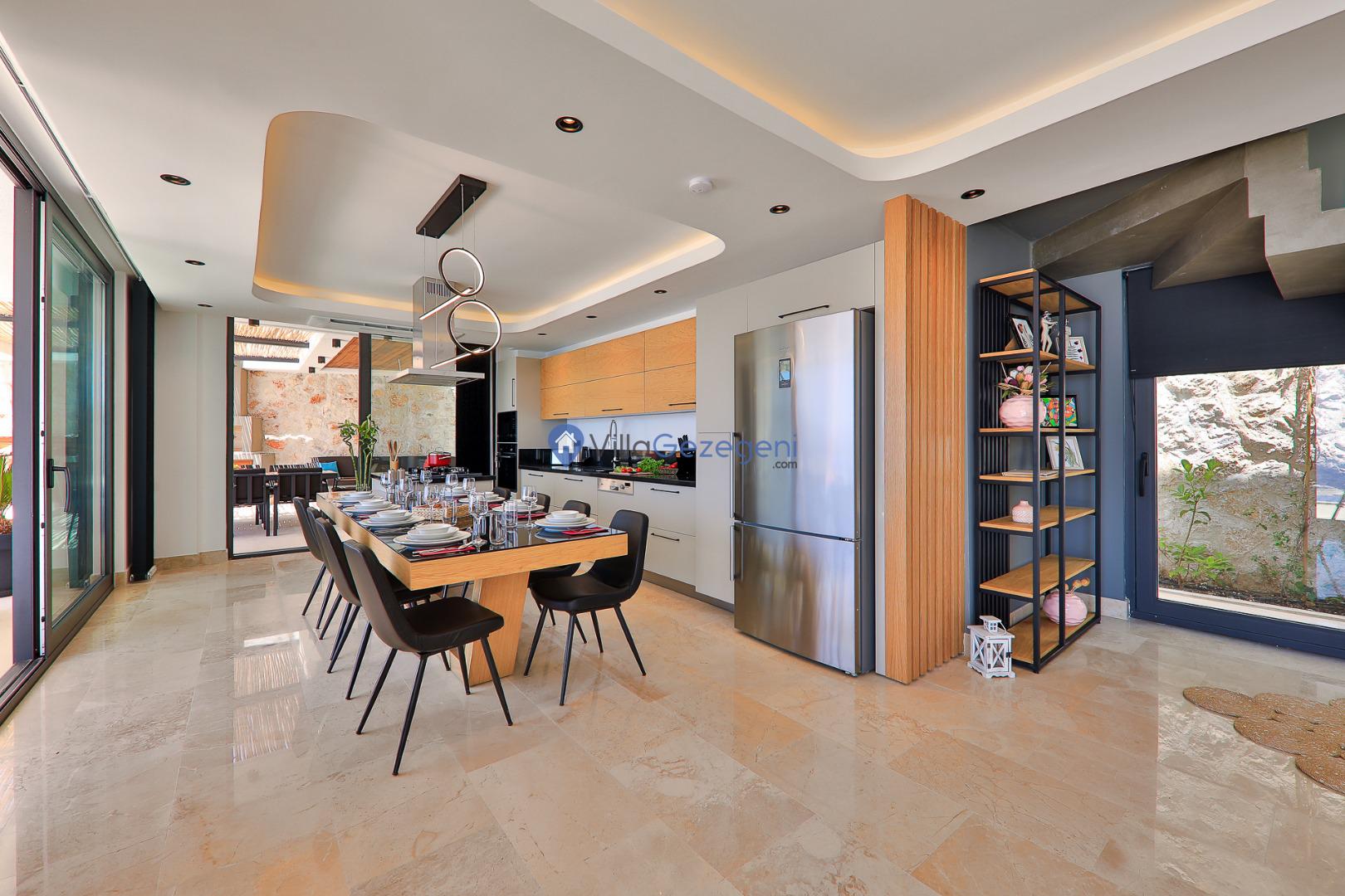 Kalkan Kalamar mevkiisinde bulunan 4 odalı 8 kişilik lüks tasarıma sahip deniz manzaralı kiralık villa