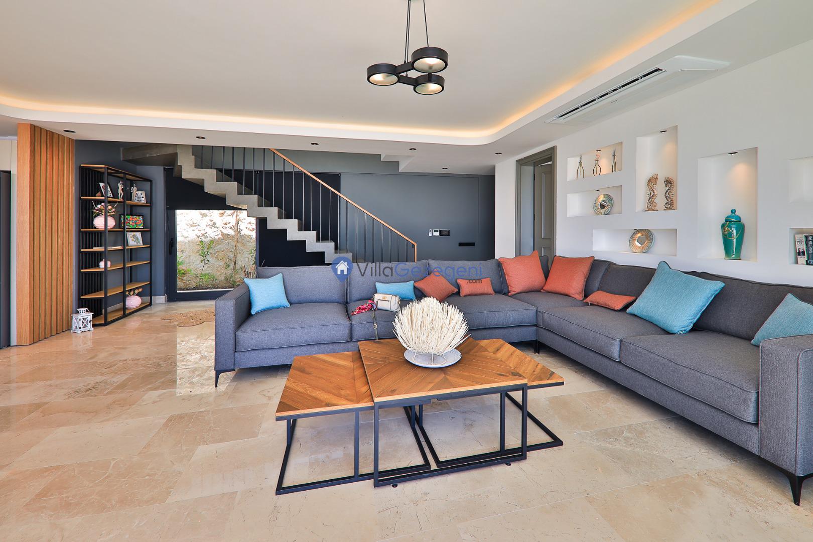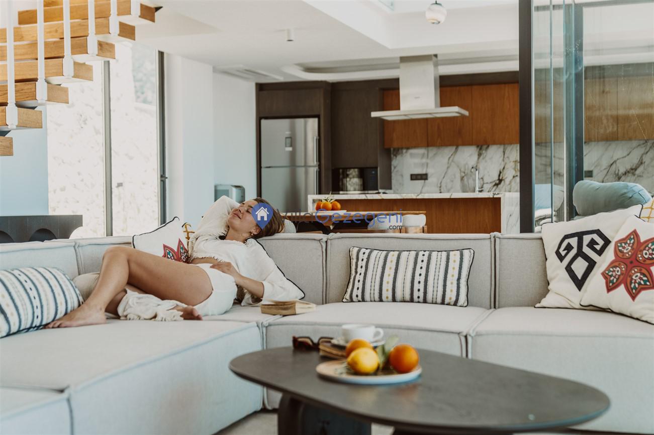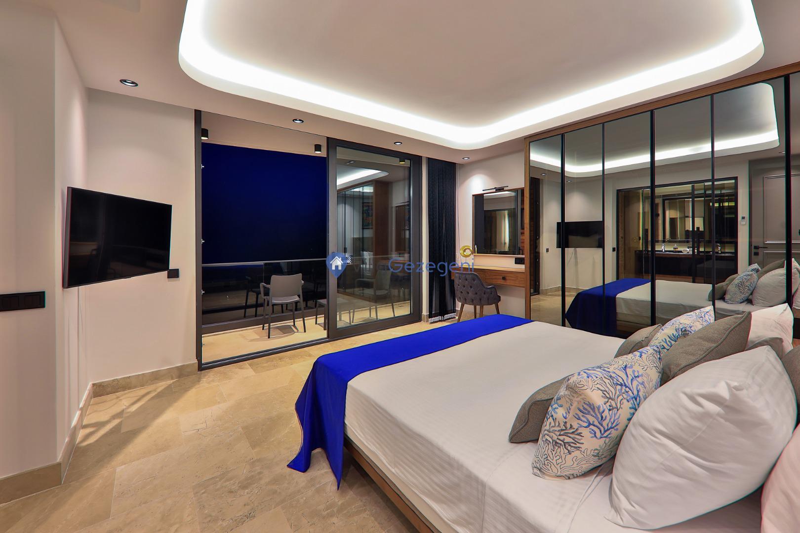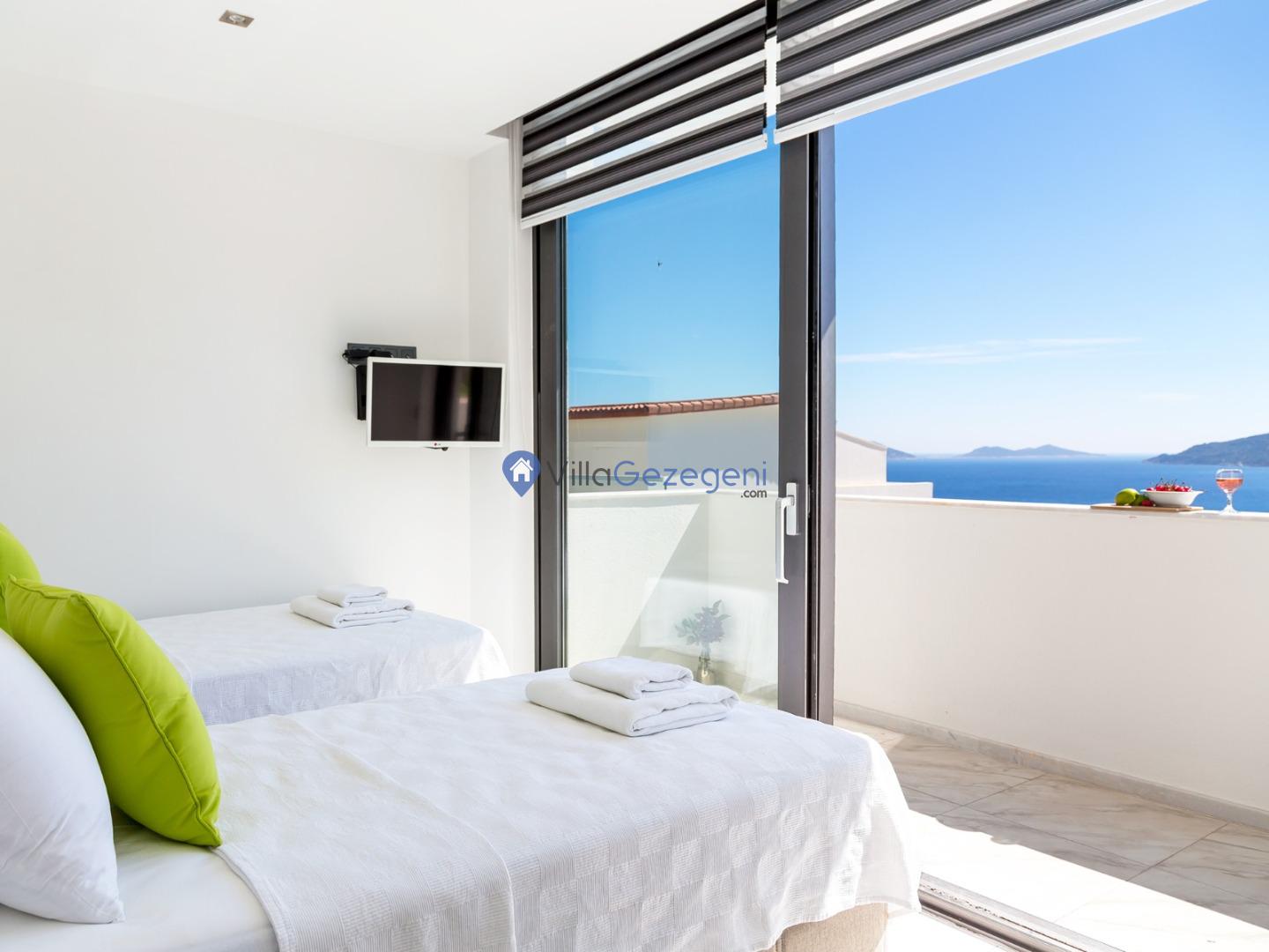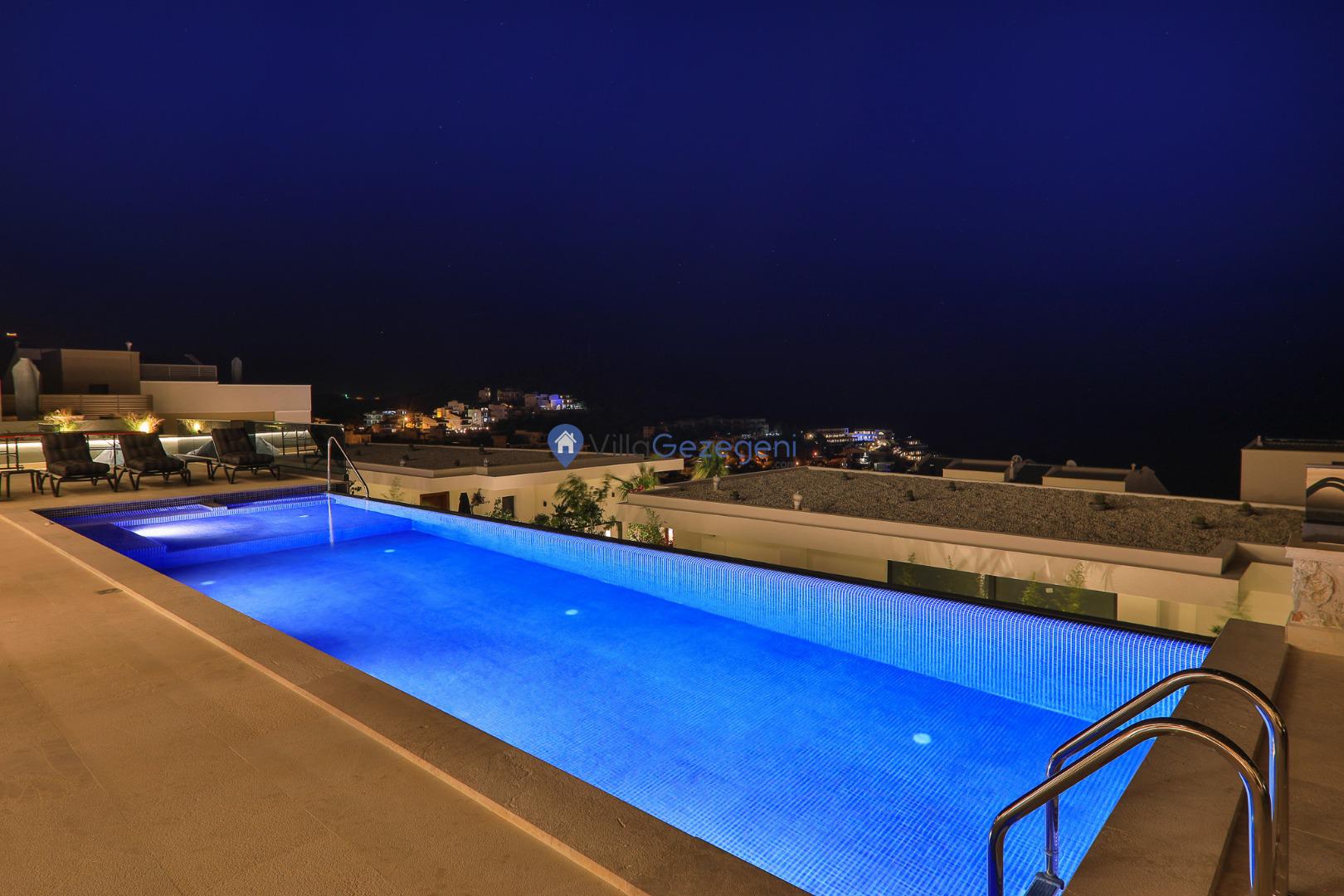 Kalkan Kalamar mevkiisinde bulunan 4 odalı 8 kişilik lüks tasarıma sahip deniz manzaralı kiralık villa
