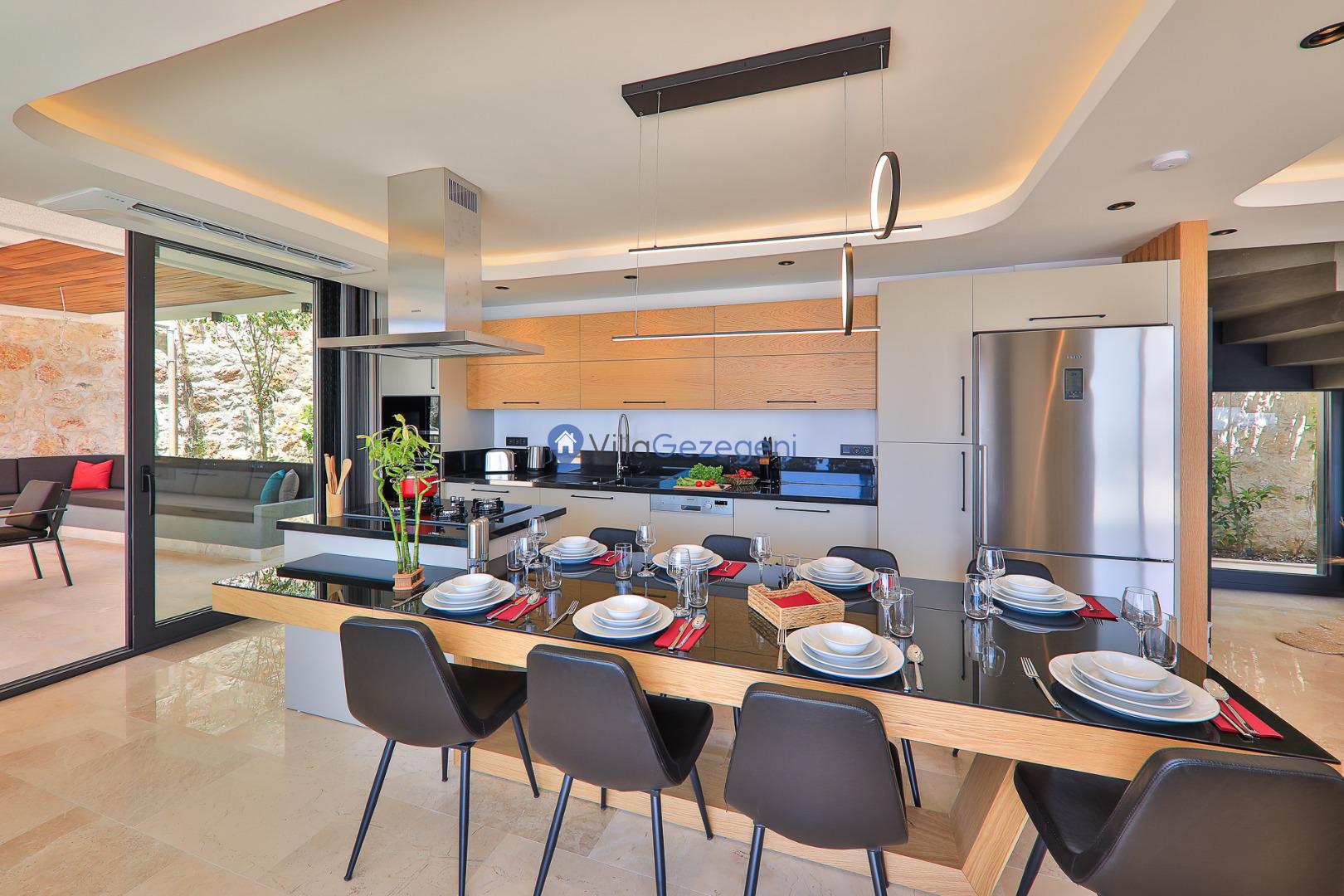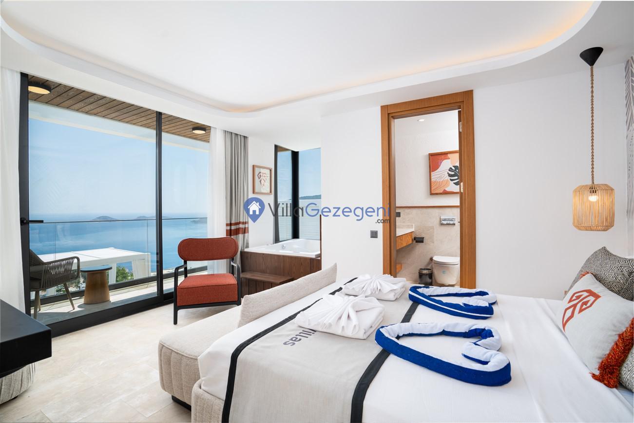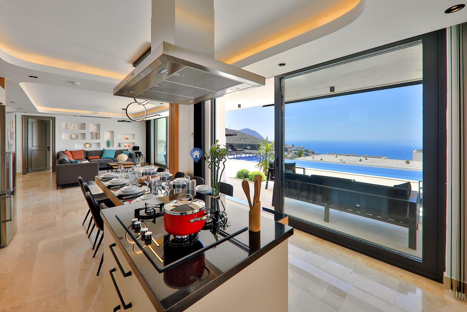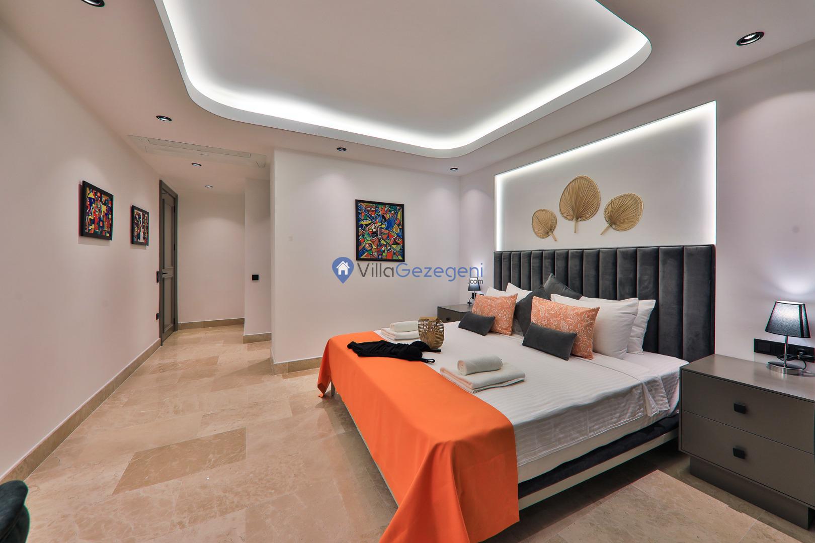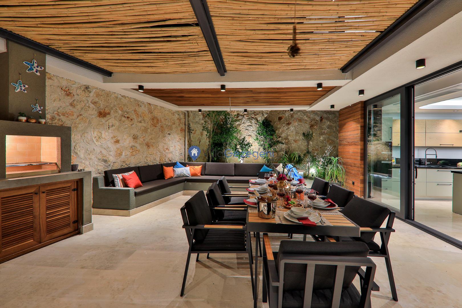 Kalkan Kalamar mevkiisinde bulunan 4 odalı 8 kişilik lüks tasarıma sahip deniz manzaralı kiralık villa