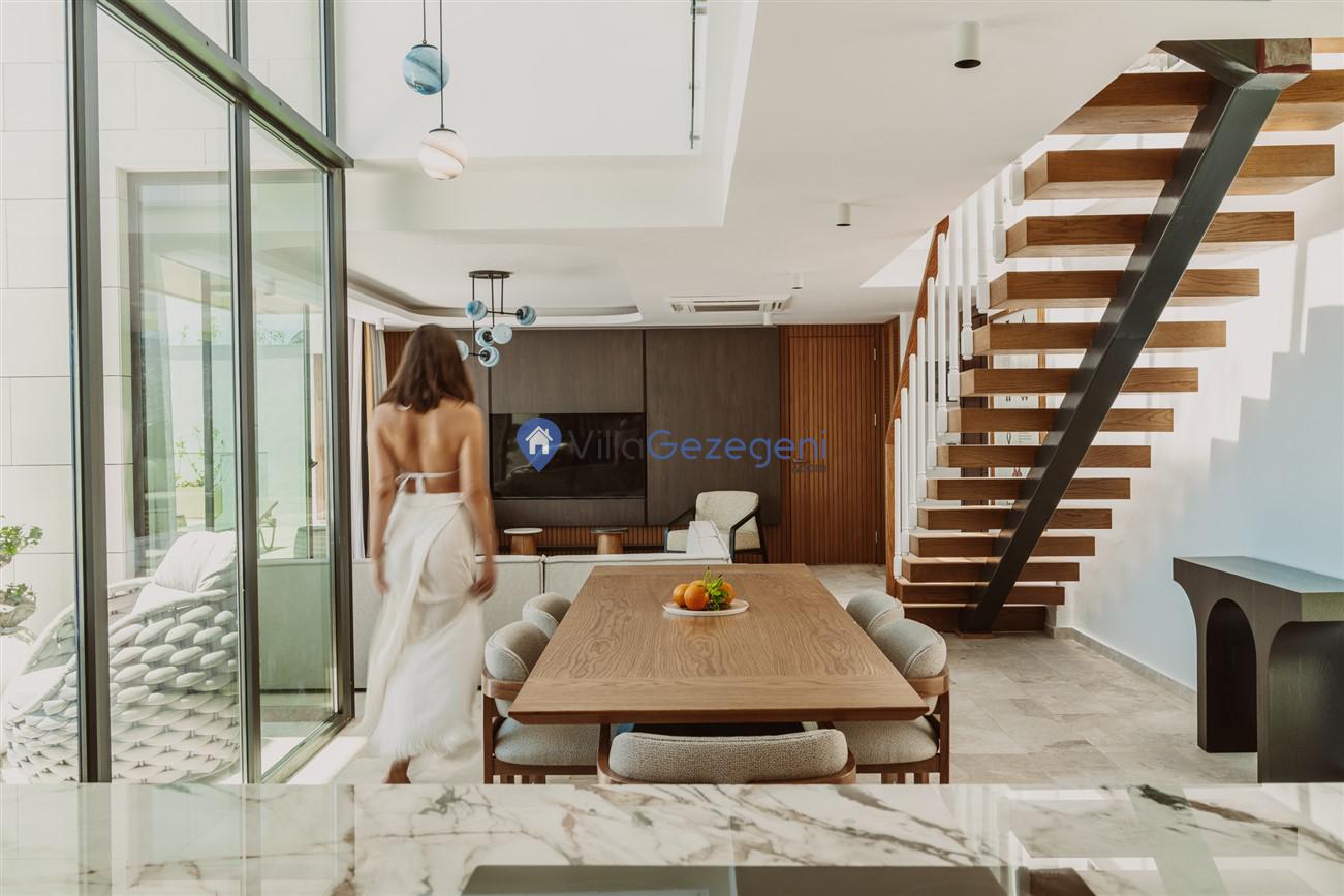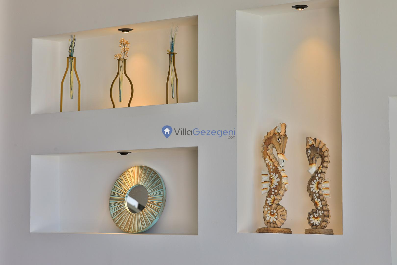 Villamız, modern mimariyle inşa edilmiş olup, Anadolu Türk motifleriyle bezeli zarif bir tasarıma sahiptir. Eskiyle yeniyi harmanlayan bu benzersiz stil, hem nostaljik bir atmosfer sunar hem de modern konforun tadını çıkarmanıza olanak tanır.