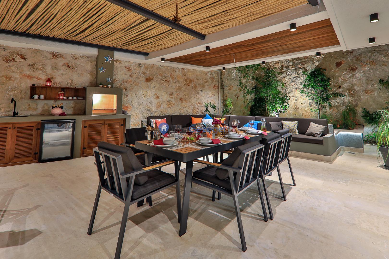Villa Anatolia'da geçireceğiniz her an unutulmaz olacak. Ahşap pergoleler ve manzaraya hakim çukur oturma alanları, romantik bir akşam yemeği veya keyifli sohbetler için mükemmel bir ortam sunar.