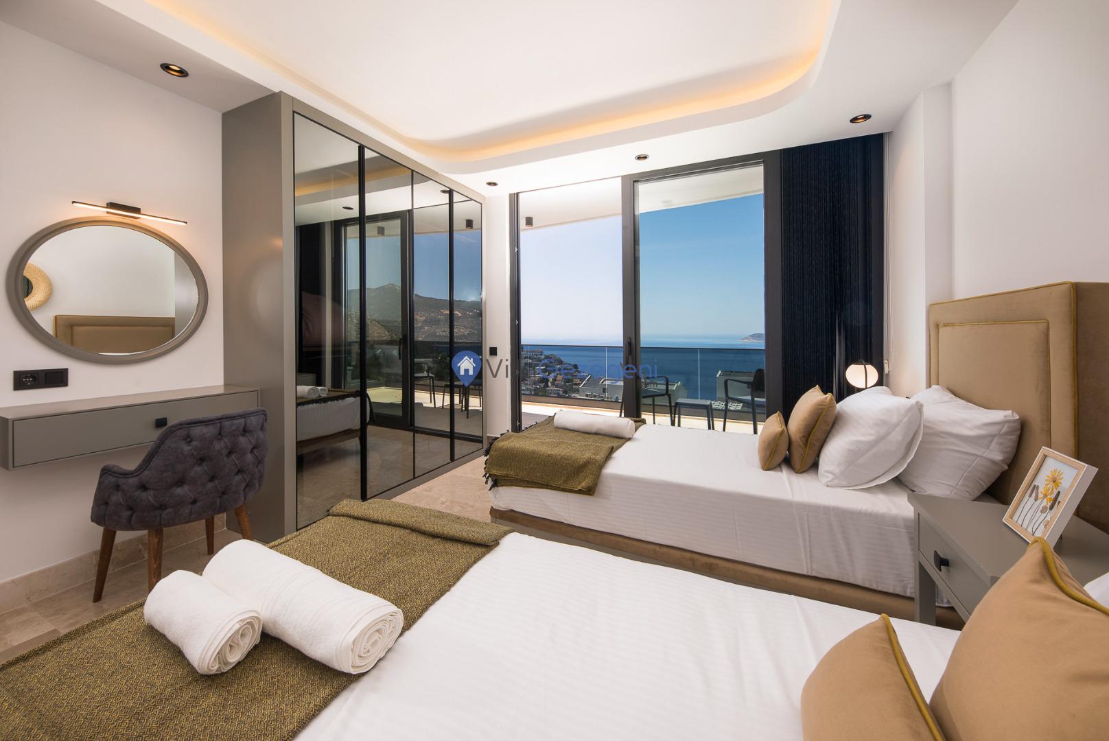 Kaş/Kalkan/Kalamar Bölgesinde yer alan 4 yatak odalı 8 kişi kapasiteli,şehir merkezine yakın deniz manzaralı jakuzili tatil villası.