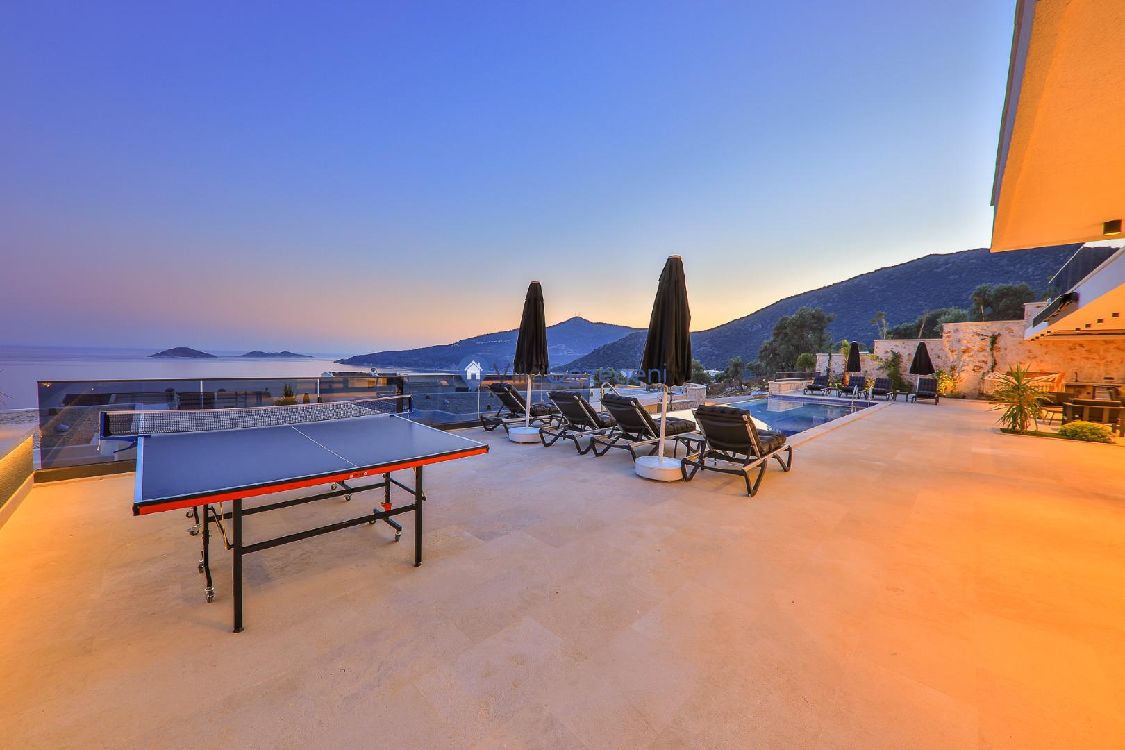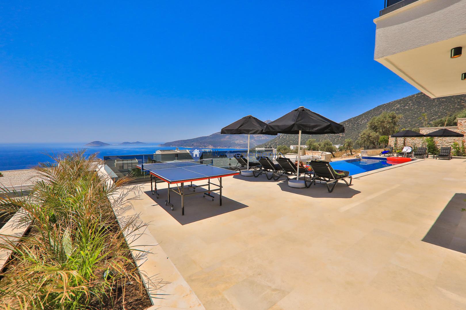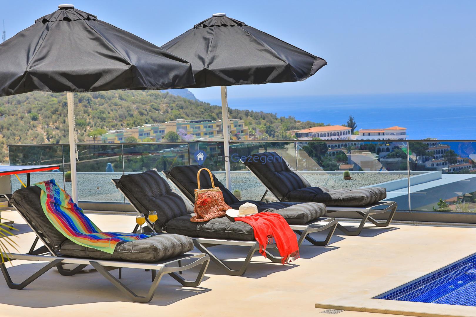 Kalkan'ın Kalamar mevkiisinde bulunan 3 odalı 6 kişilik lüks tasarıma sahip deniz manzaralı kiralık villa