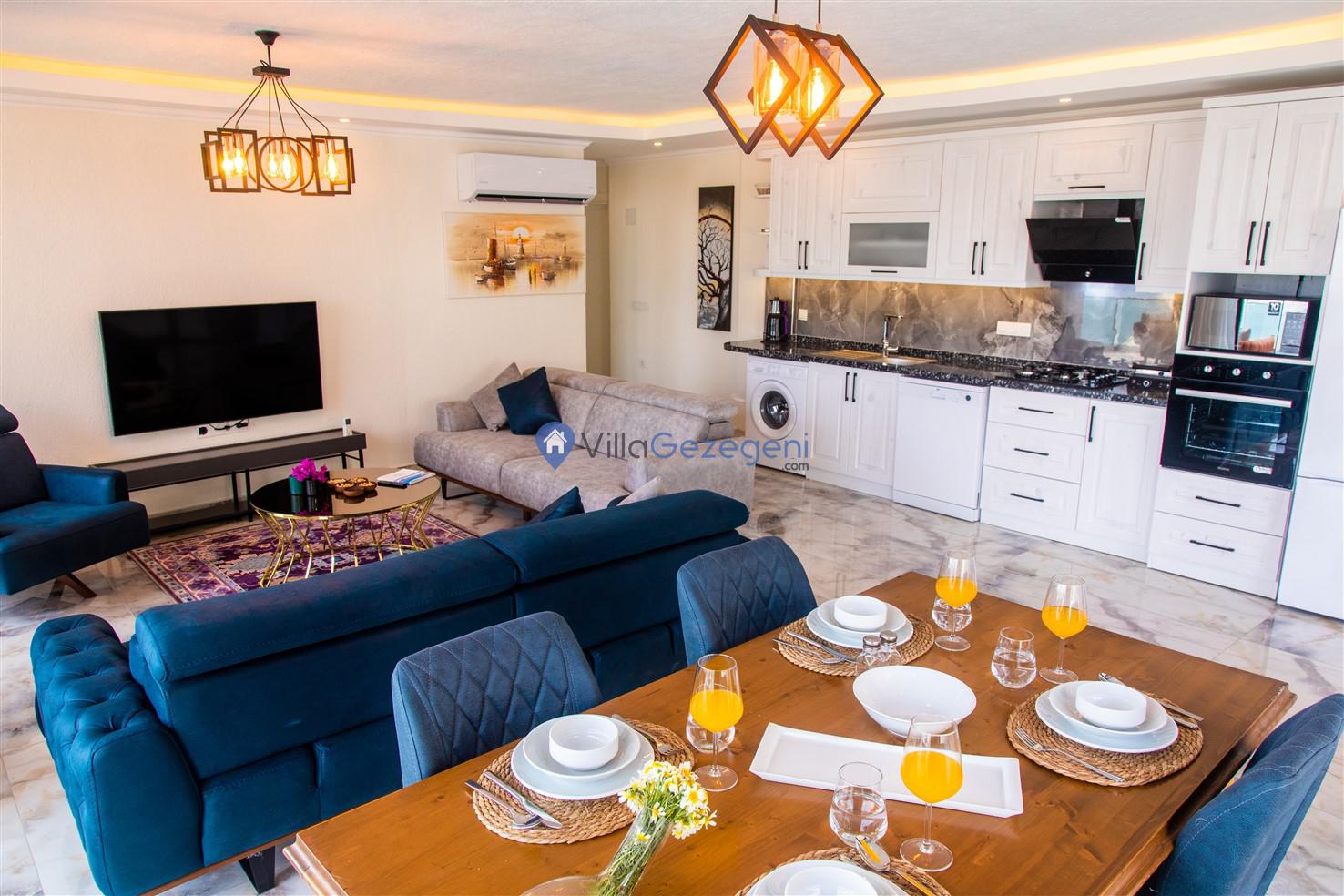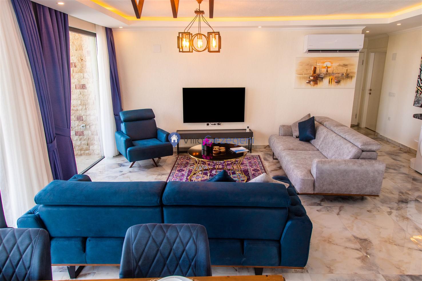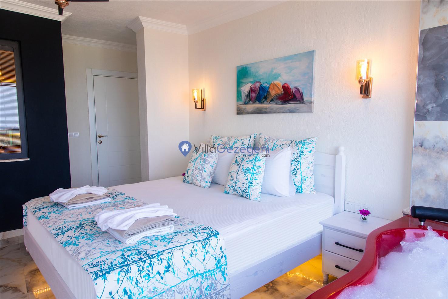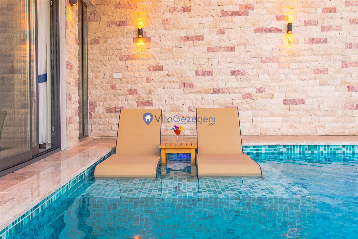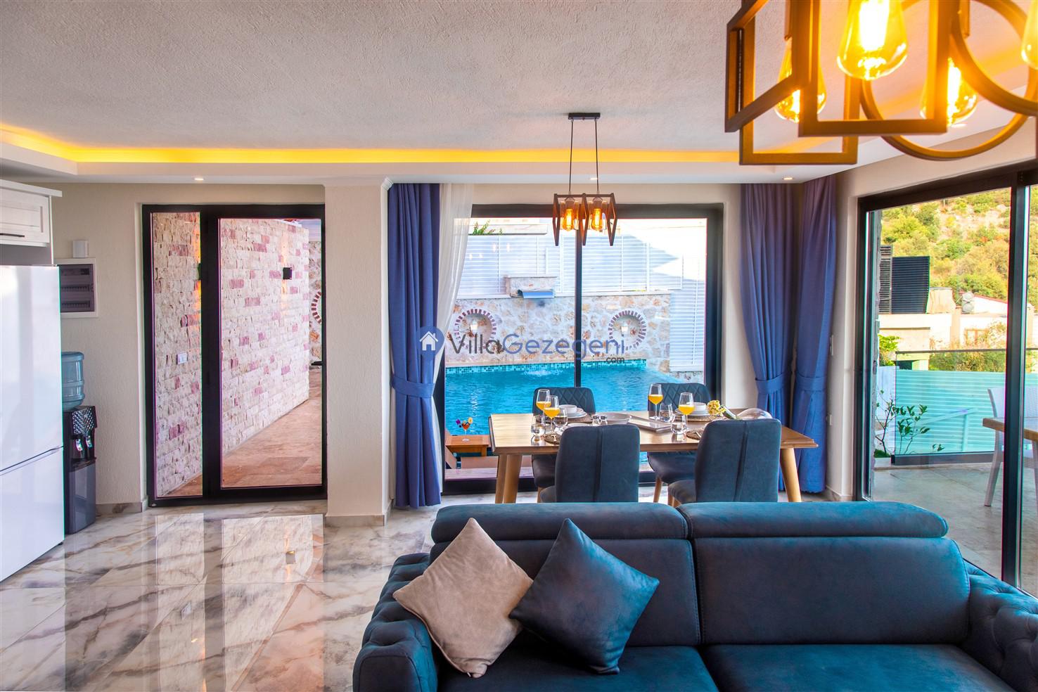 Villa Uçar 2, Kalkan Akbel mevkiinde 4 kişilik, doğa içinde, lüks tasarımlı, yeşil bahçe alanlı, merkeze yakın, jakuzili, balayına uygun kiralık villa.