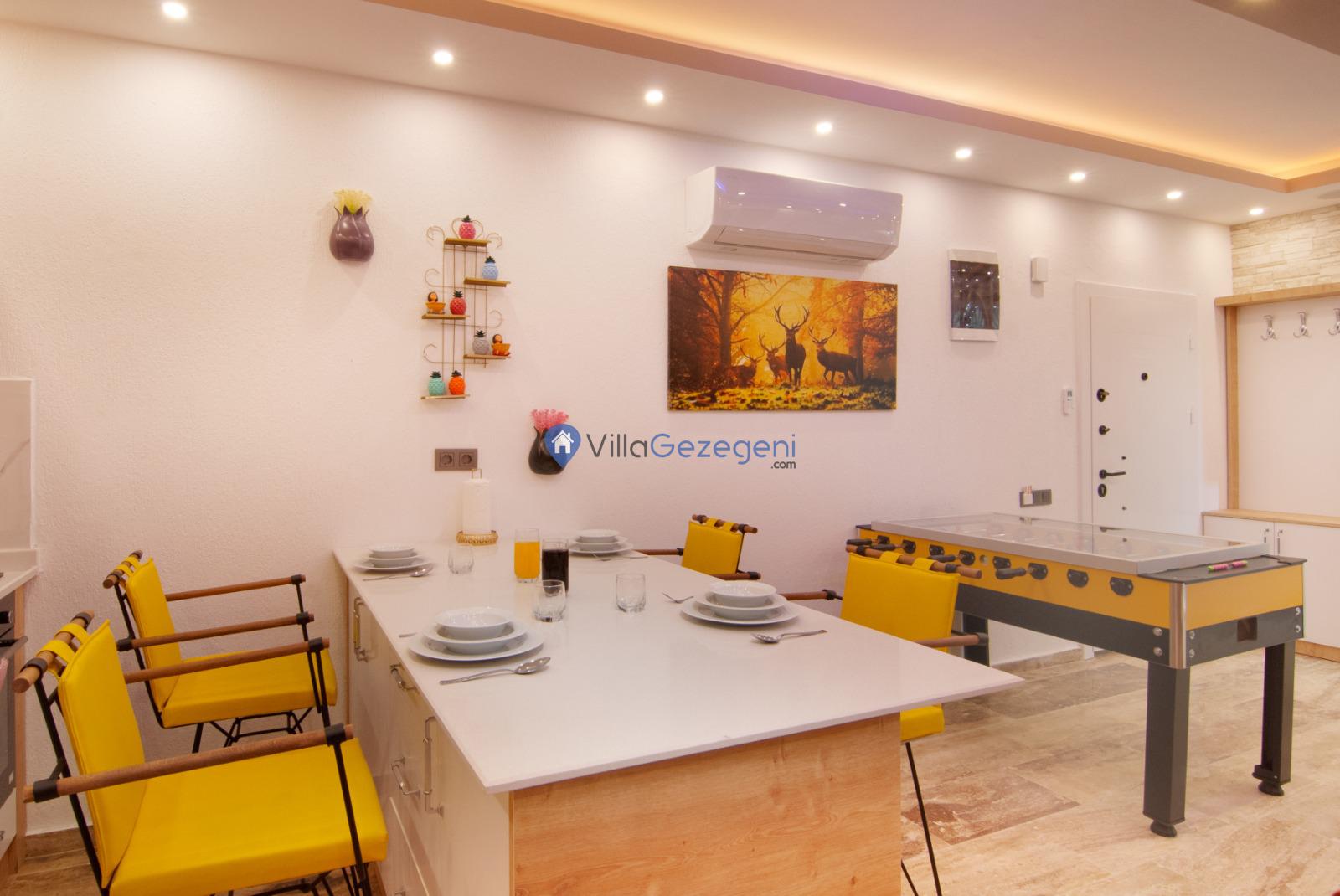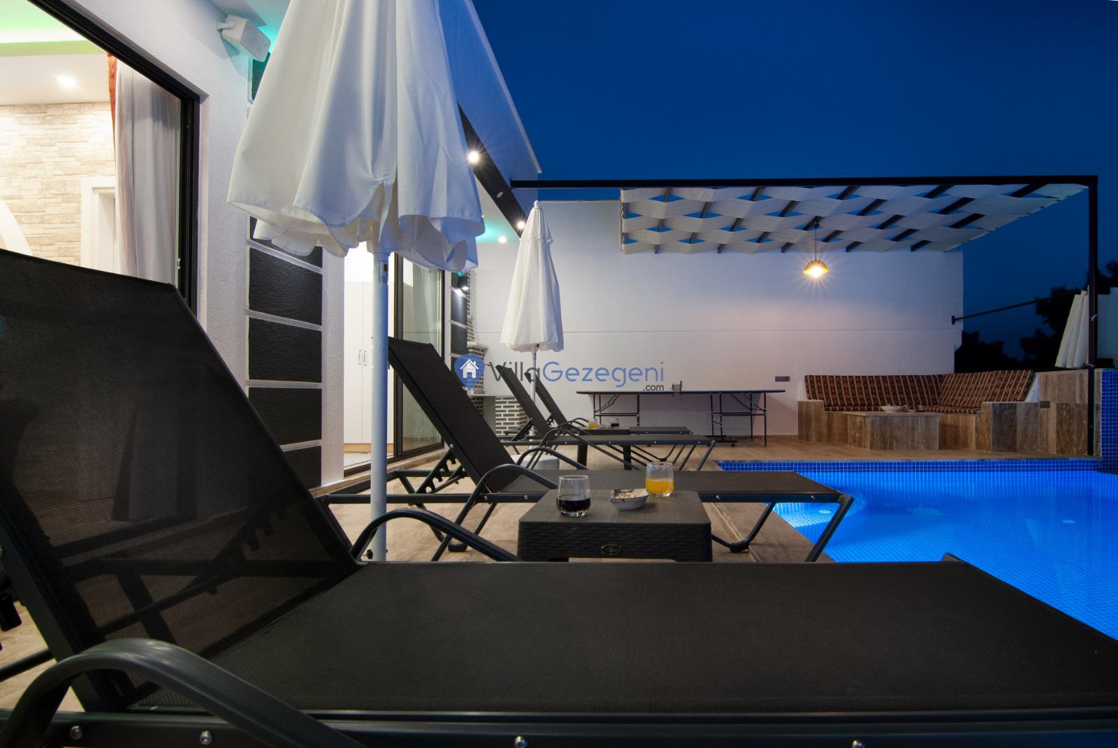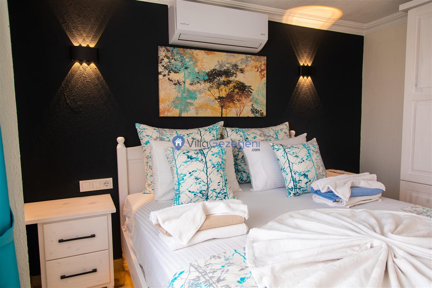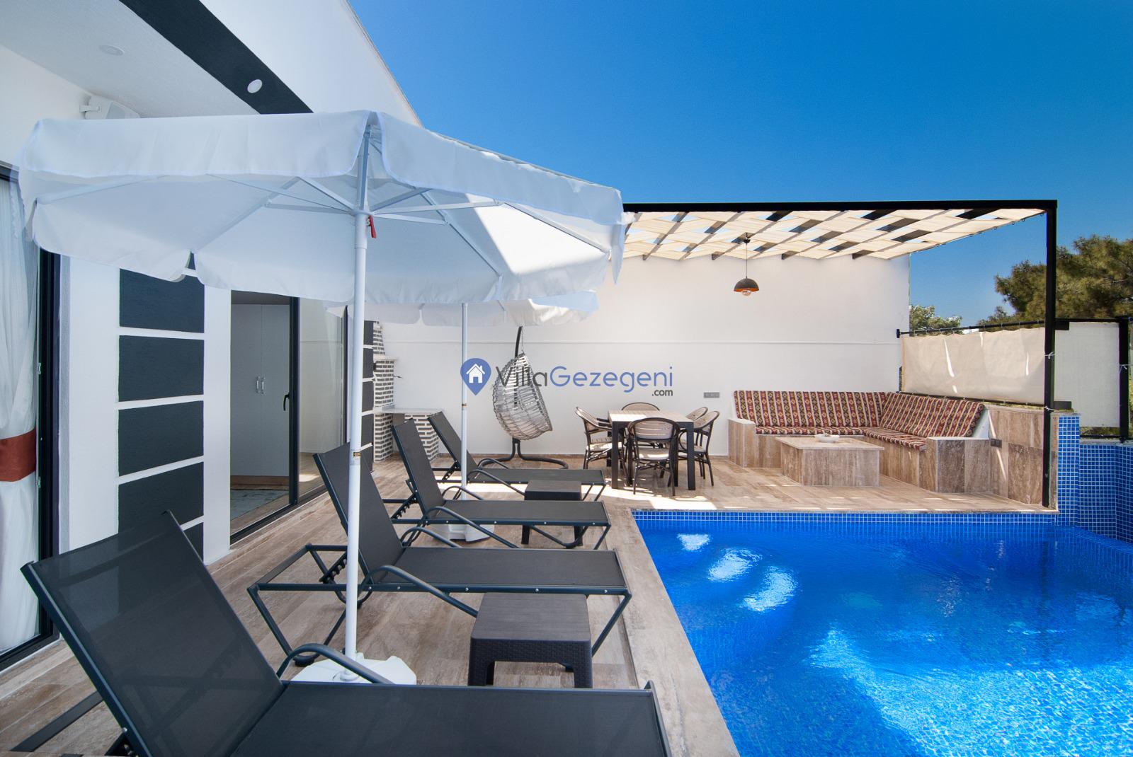 Villamızın genel konsept ve özelliklerinden tekrar bahsedecek olursak; villamızın 1 adet müstakil özel havuzu bulunmaktadır. Ferah bir bahçeye sahip olan villamız rahatlığı ön planda tutan 2 adet yatak odası, 3 yatak, 2 banyo, hareket alanı geniş bir mutfak ve 4 kişinin geniş aralıklarla rahatlıkla oturabileceği koltuklara sahip salonu bulunmaktadır.