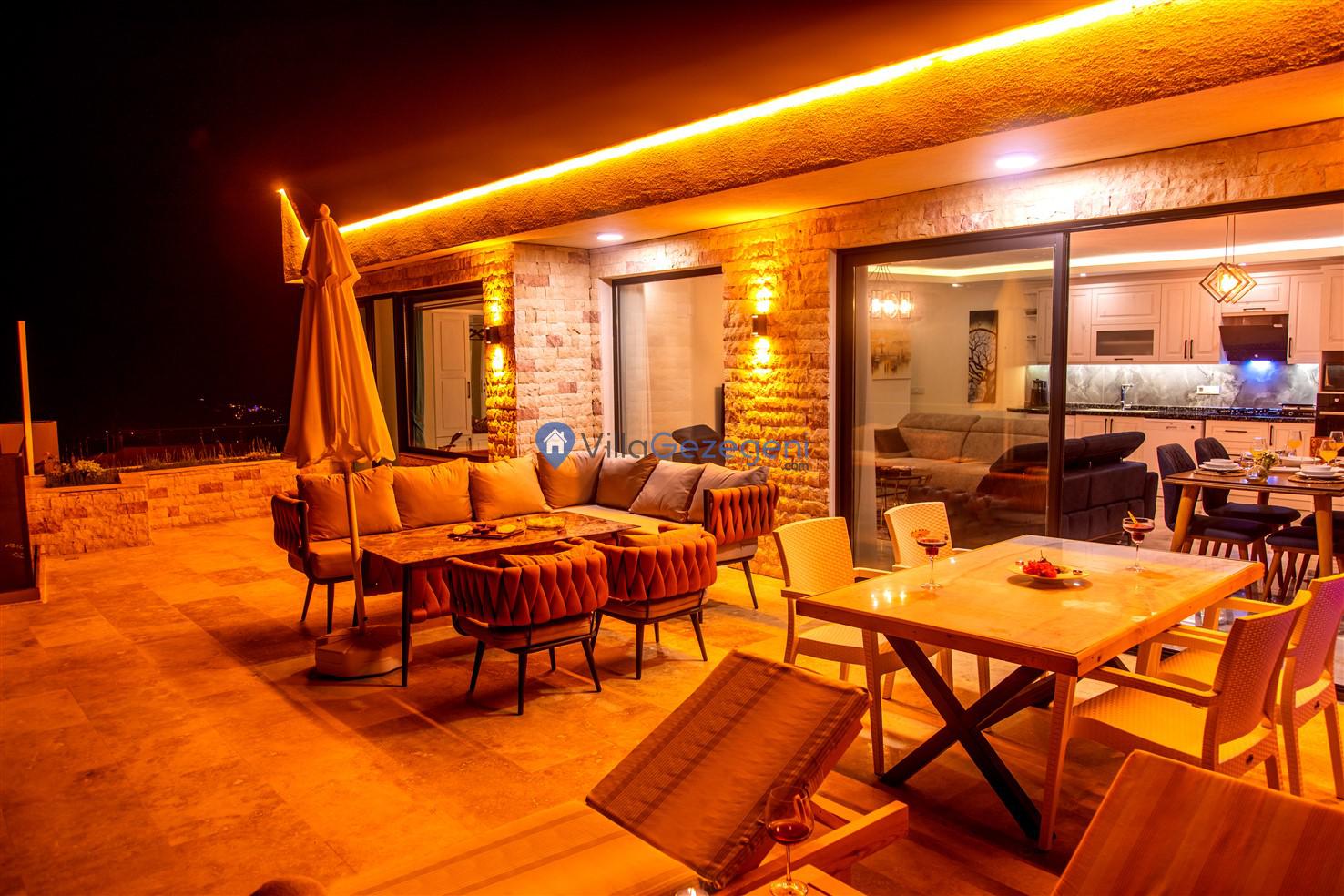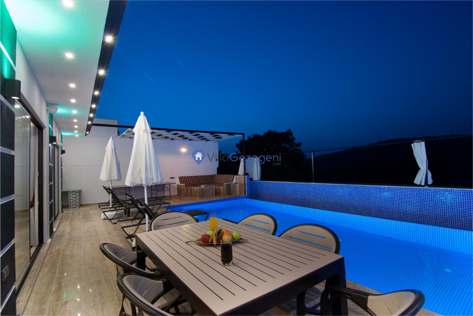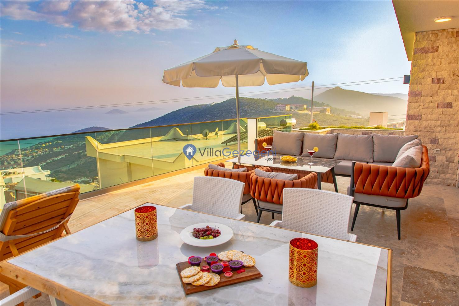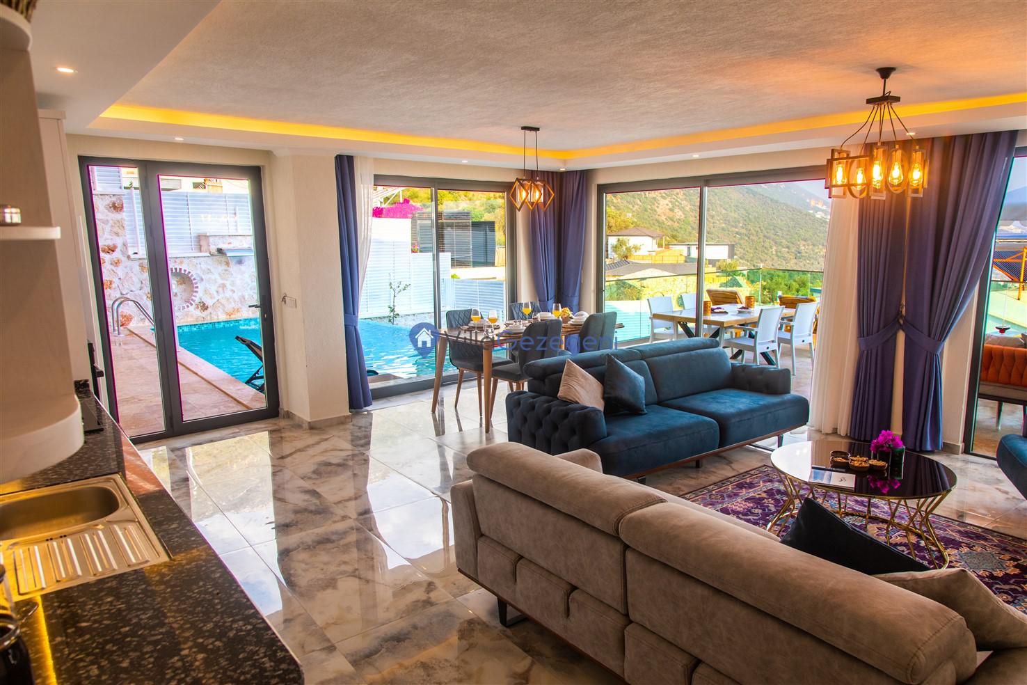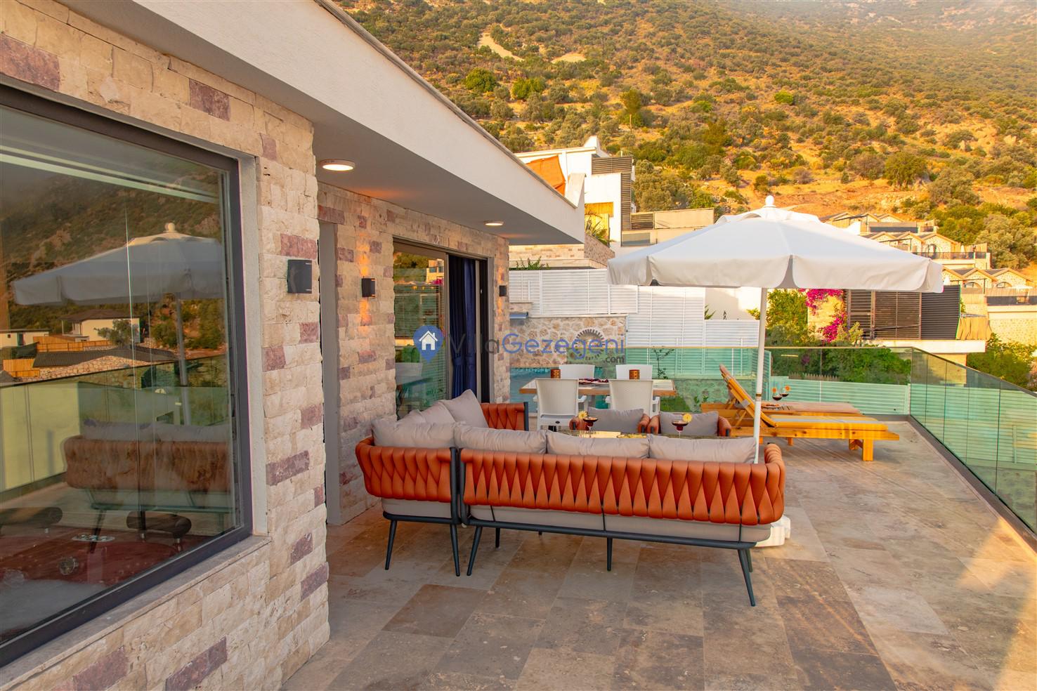 Villa Hills Nature, Kalkan Akbel'de 8 kişilik, deniz manzaralı, lüks tasarıma sahip, merkeze yakın, muhafazakar, kalabalık gruplara uygun kiralık villa.
