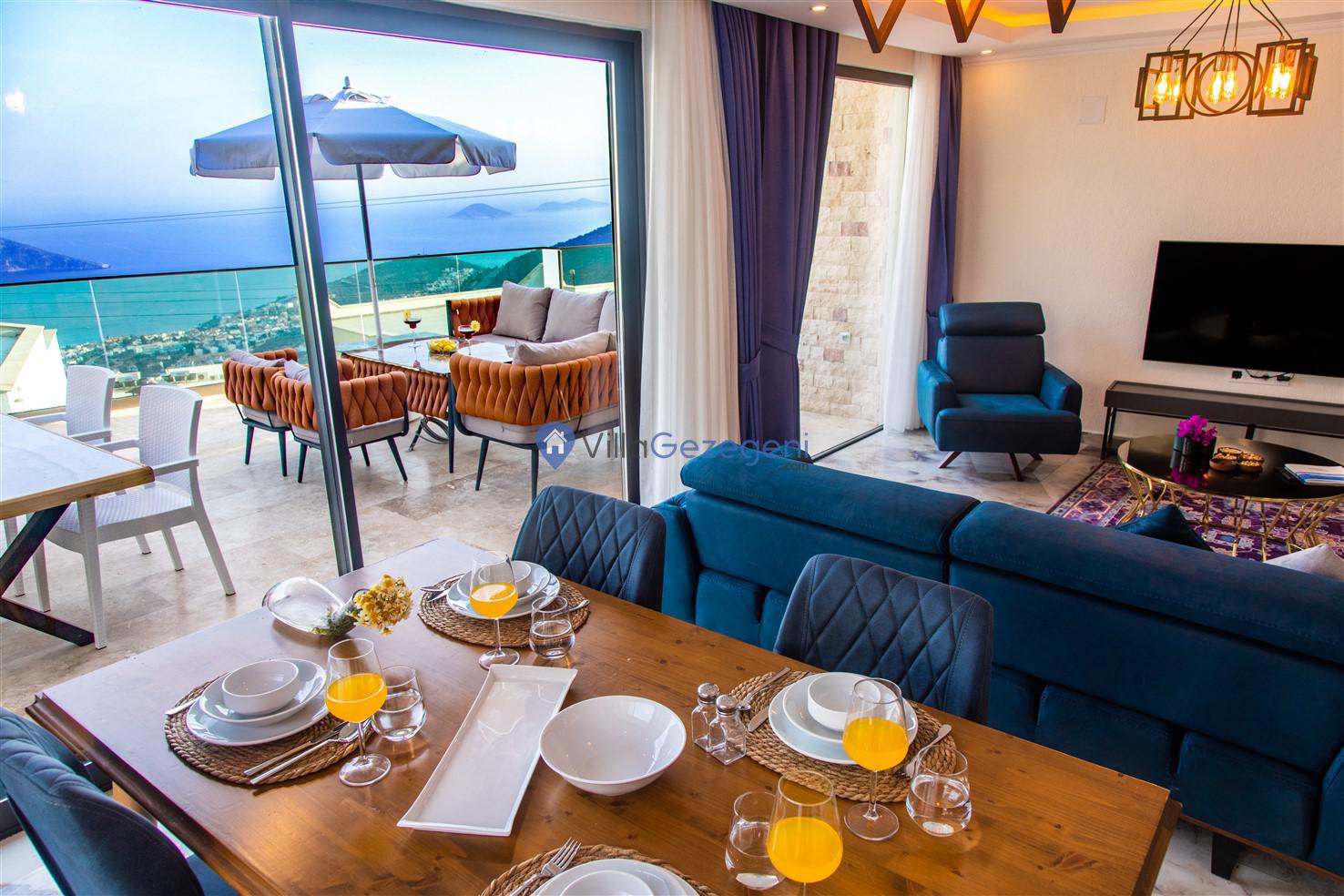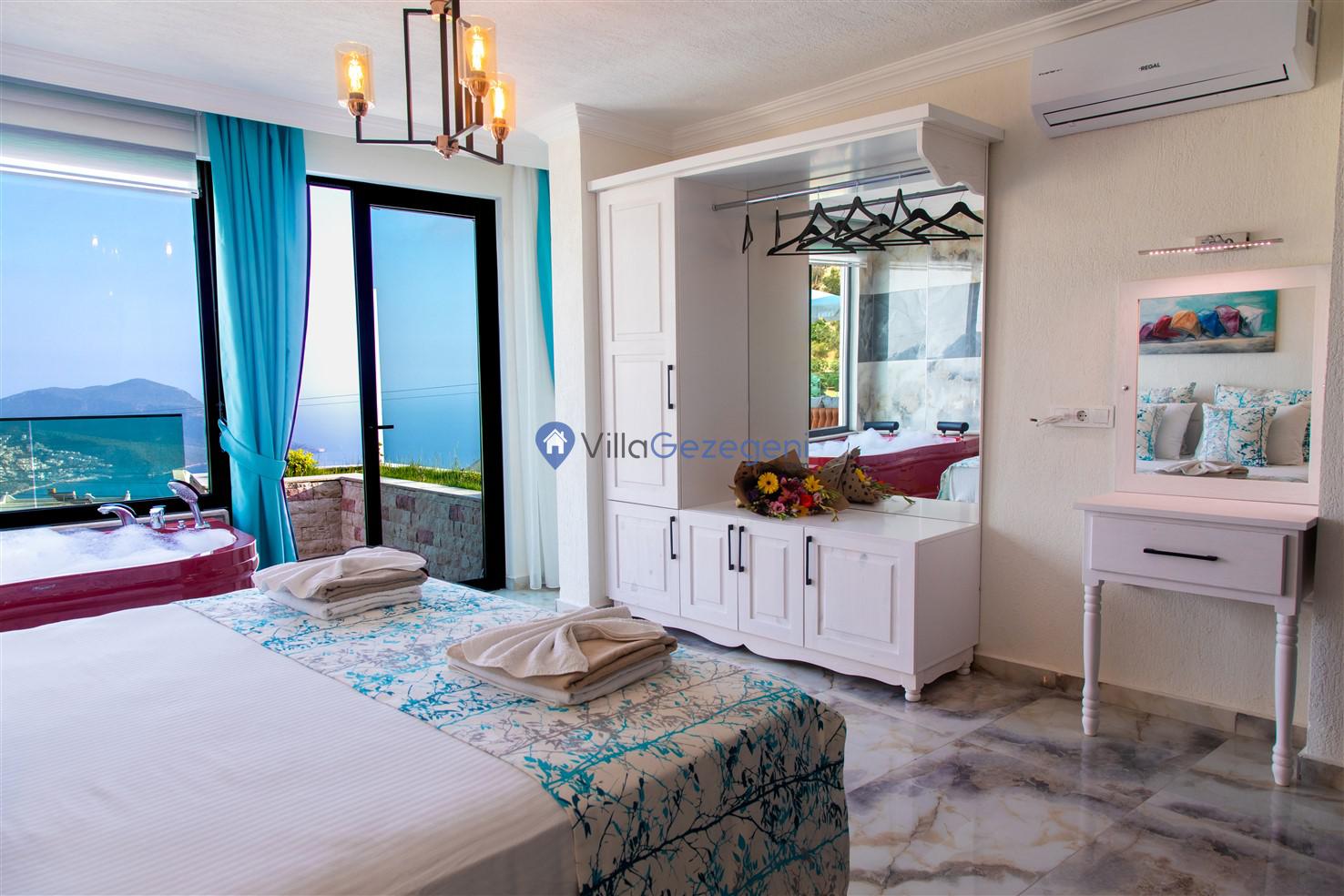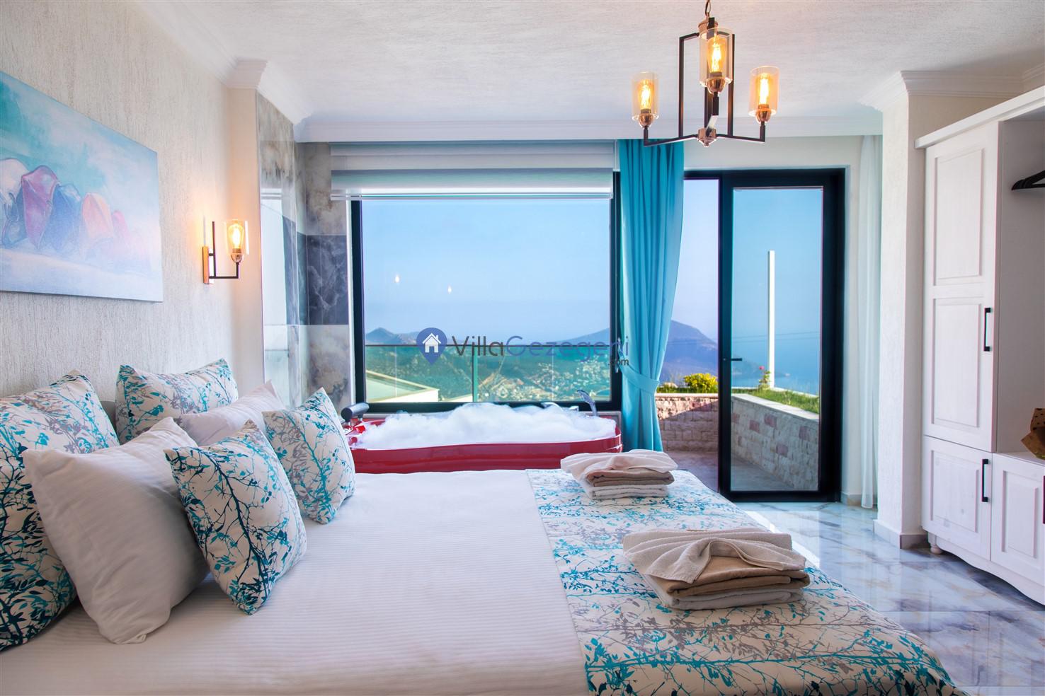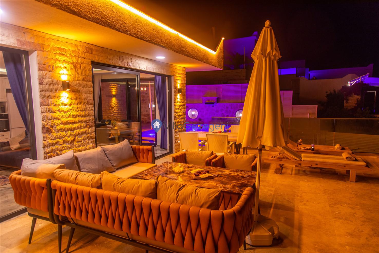 Villa Likya, Kalkan Akbel bölgesinde 8 kişilik, deniz manzaralı, jakuzili, salıncaklı, merkeze yakın, kalabalık gruplara uygun kiralık villa.