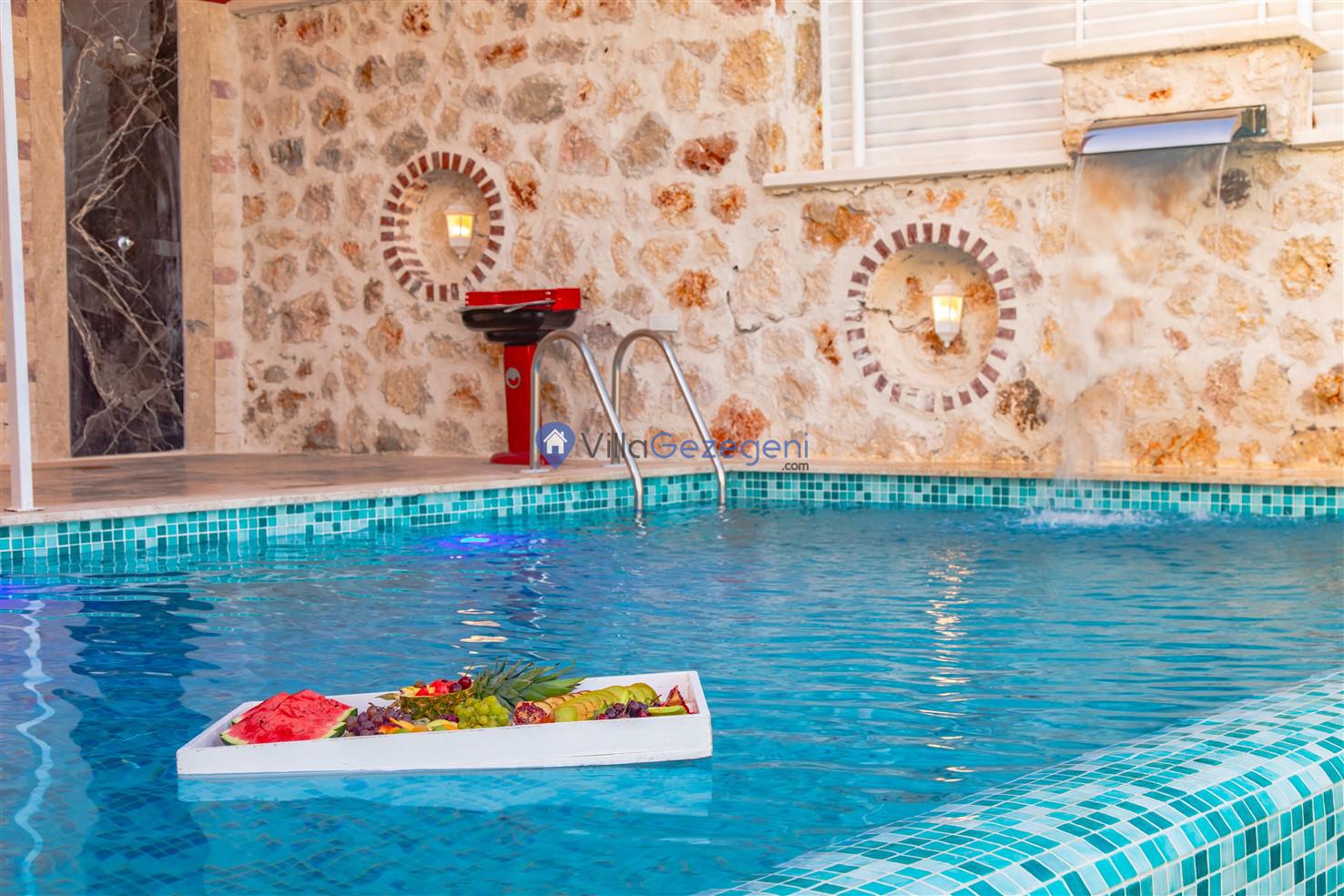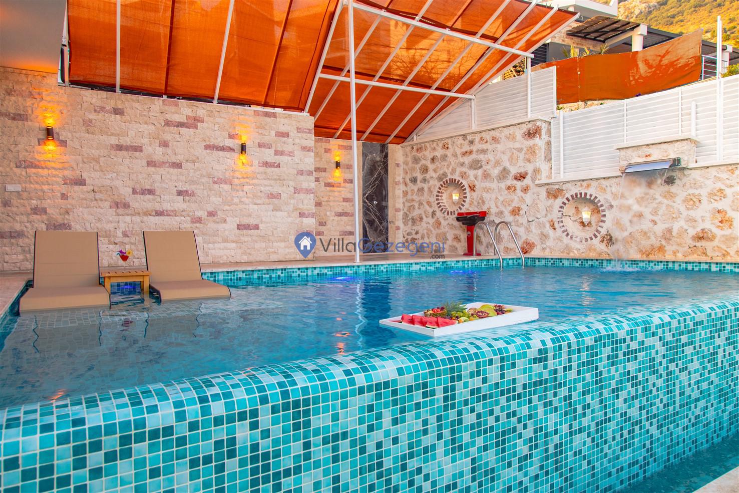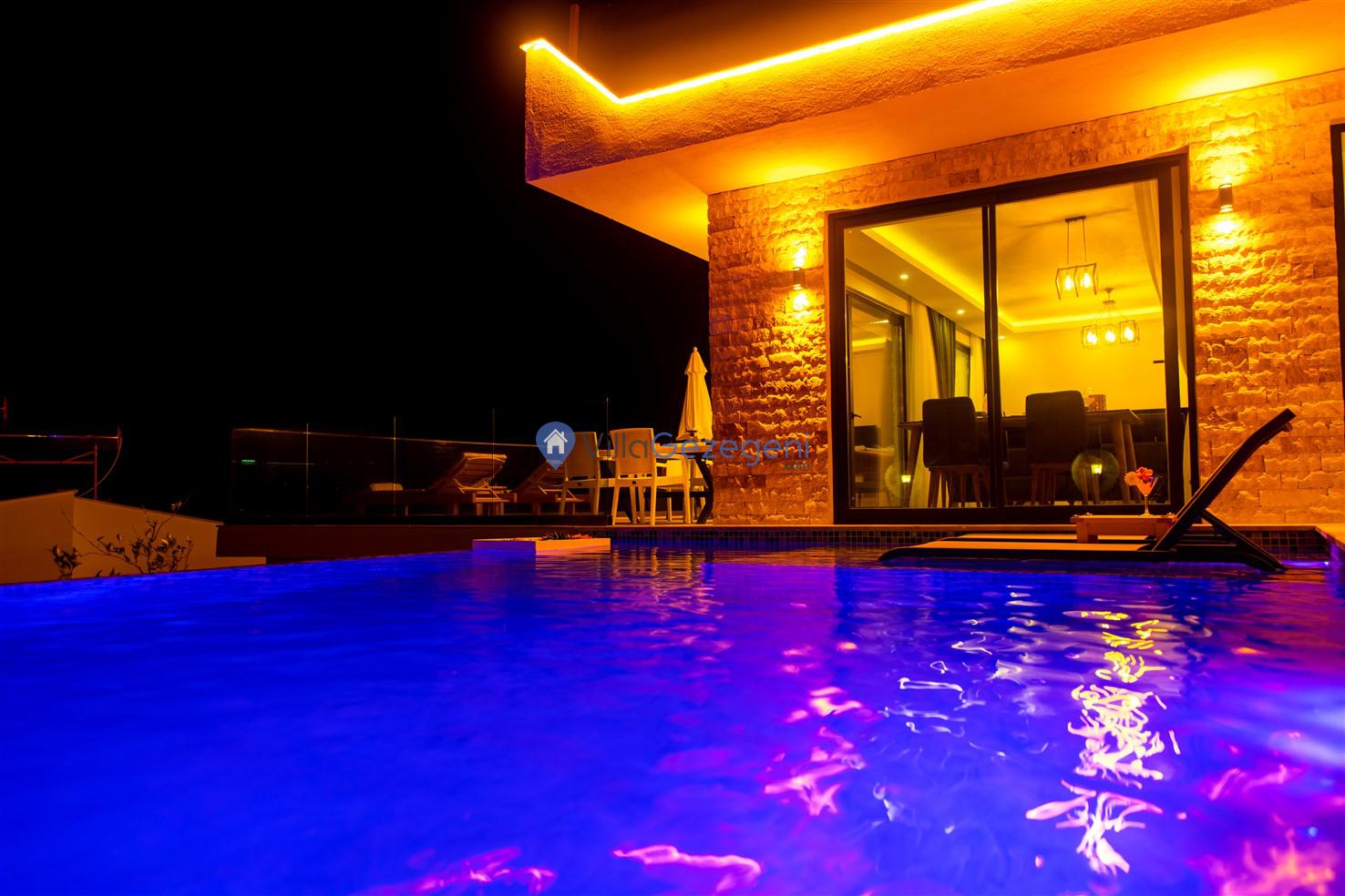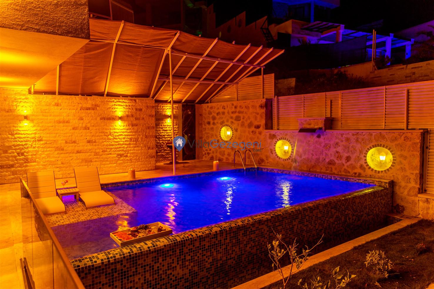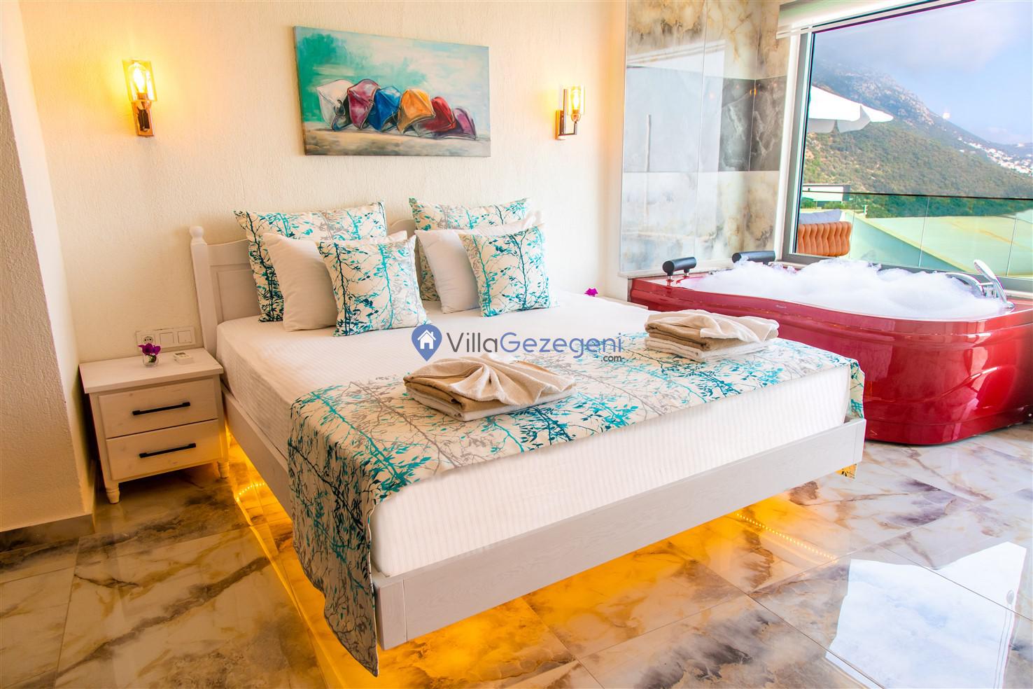 Villa Likya, Kalkan Akbel bölgesinde 8 kişilik, deniz manzaralı, jakuzili, salıncaklı, merkeze yakın, kalabalık gruplara uygun kiralık villa.