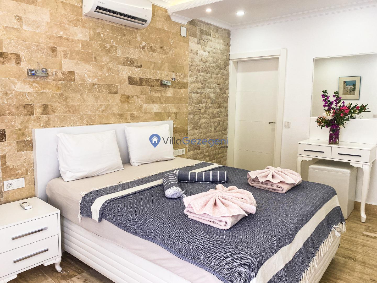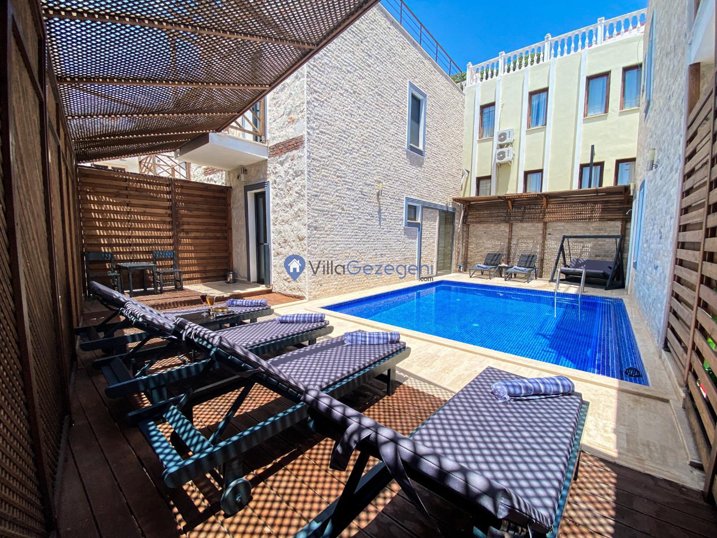 Kiralık VillaAquamarine bahçesindeki çift kademeli yüzme havuzu,lüks ve konforlu dizaynı özellikle de deniz manzarası ile misafirlerine unutulmaz bir tatilin kapılarını aralıyor... Toplam 4 yatak odası bulunan villamız da 8 misafirimiz rahatlıkla konaklayabilmektedir.Tüm yatak odaları En-Suite olarak dizayn edilmiştir.