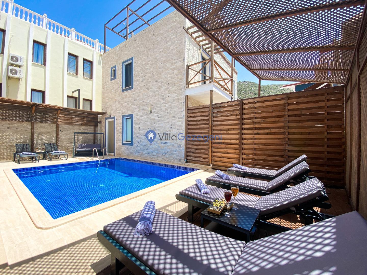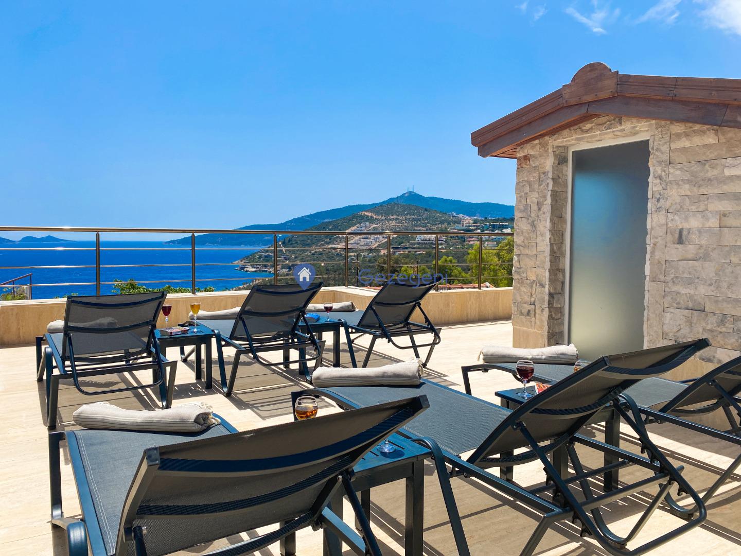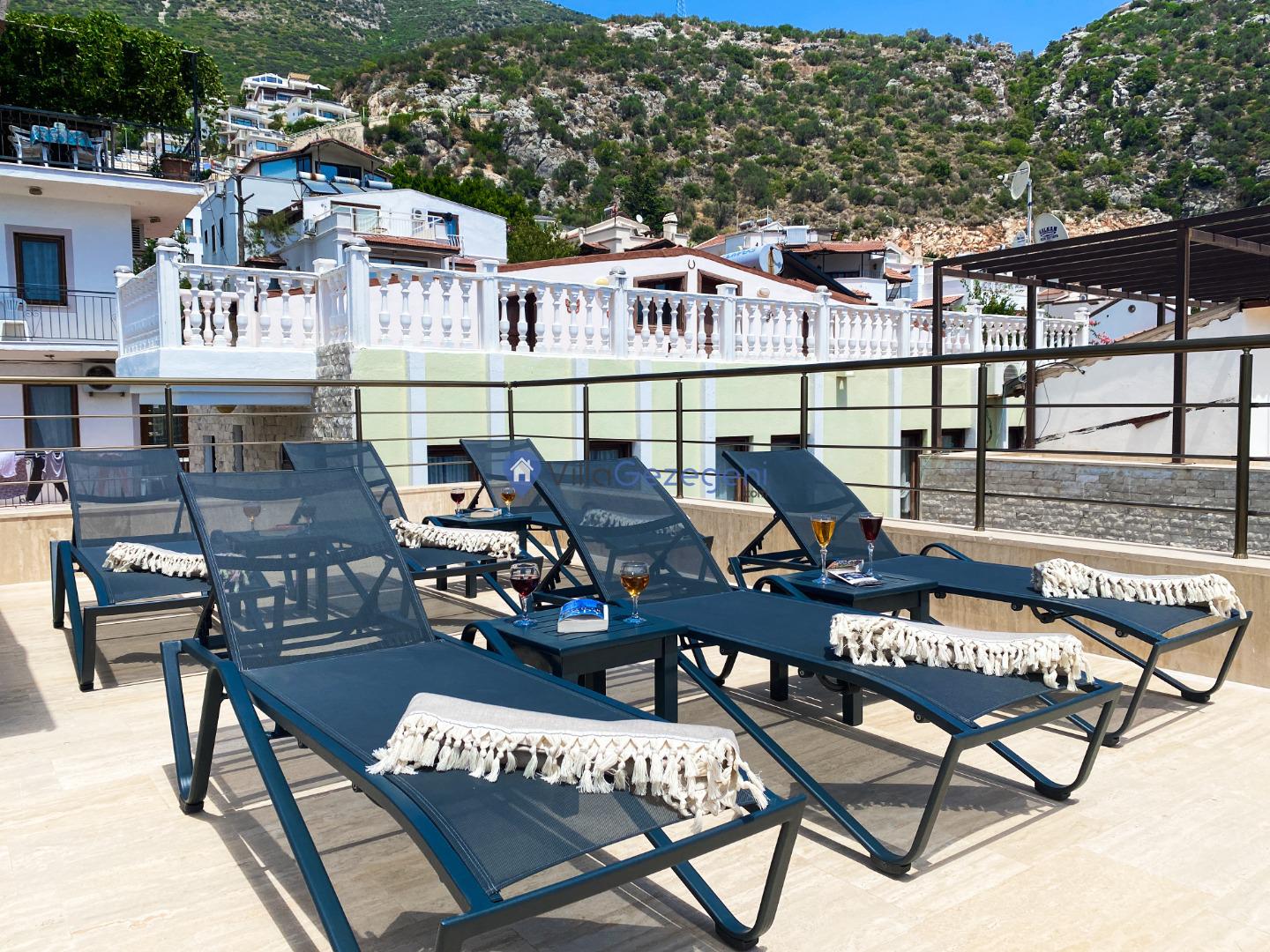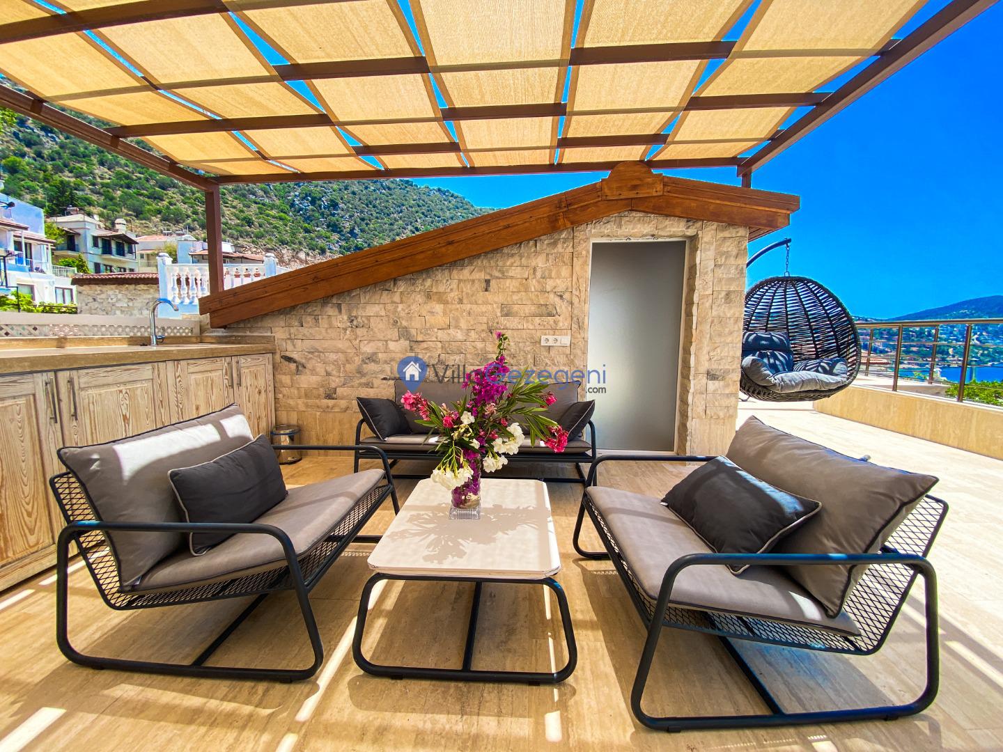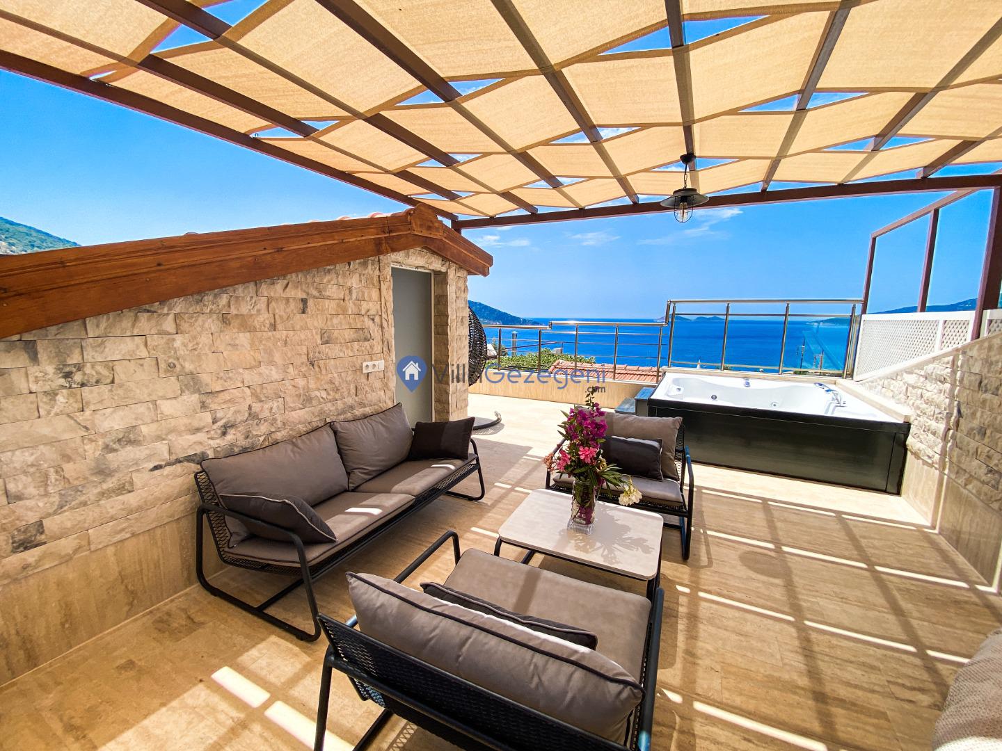 Kaş/Kalkan/Ortaalan Bölgesinde yer alan 6 yatak odalı 12 kişi kapasiteli Şehir Merkezine Yakın Deniz Manzaralı Lüks Tatil Villasıdır.
