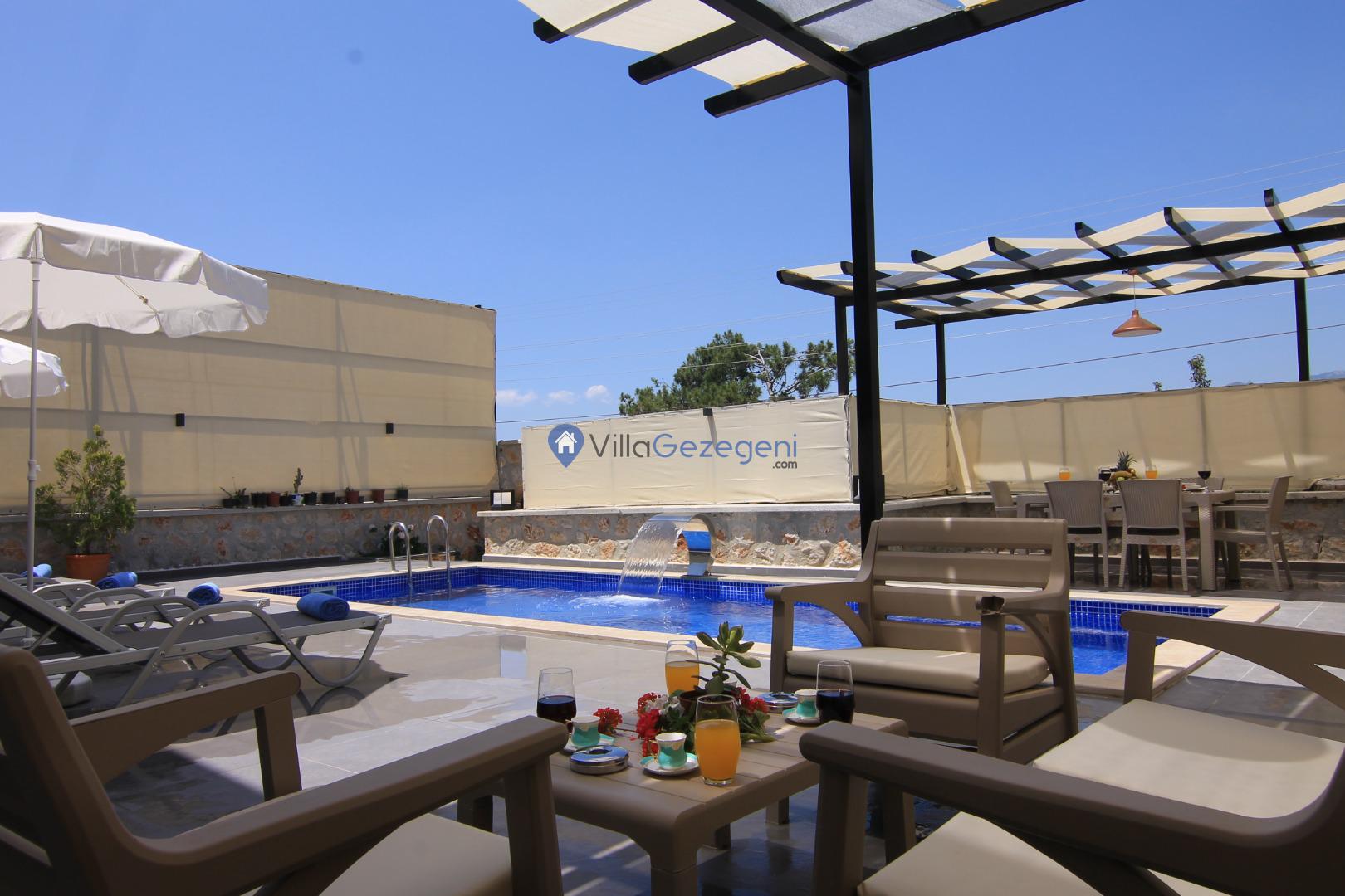 Kalkan Akbel mevkiinde bulunan deniz manzaralı ve sonsuzluk havuzlu muhafazakar balayı villası