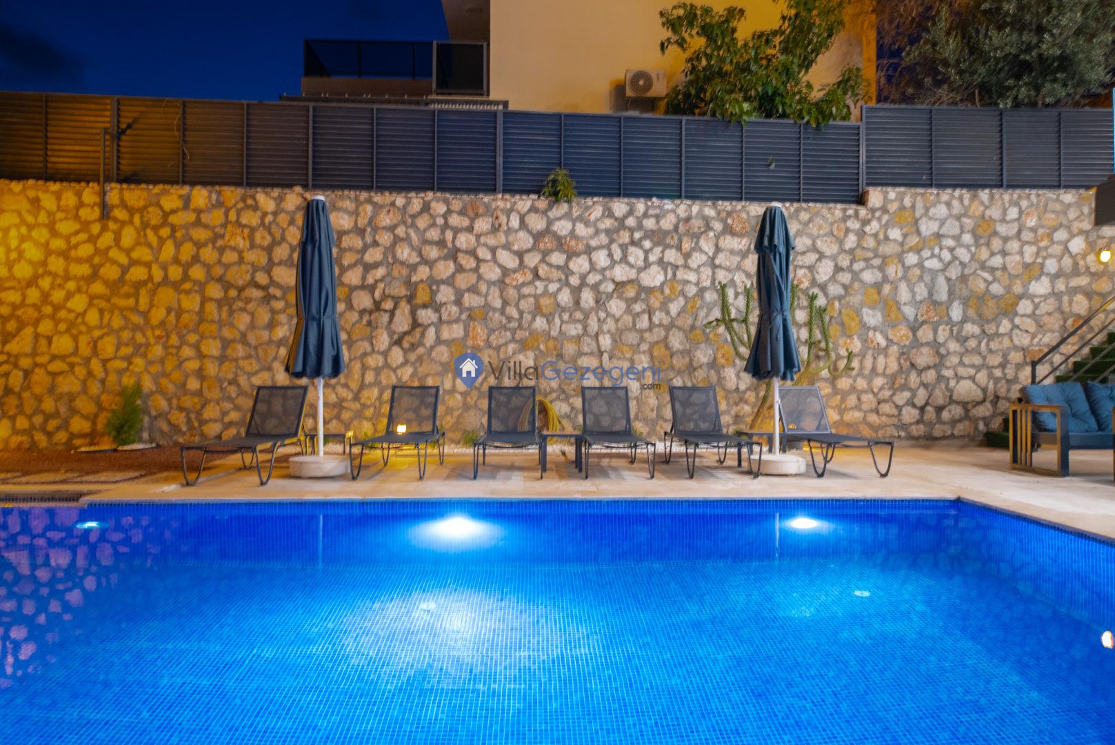 Kaş/Kalkan/Kızıltaş Bölgesinde yer alan 5 yatak odalı 10 kişi kapasiteli geniş aile ve arkadaş grupları için uygun deniz manzaralı tatil villasıdır.